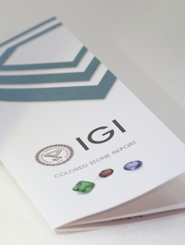 Every coloured gemstone weighing 2 carats or more is issued with an IGI coloured stone report.
