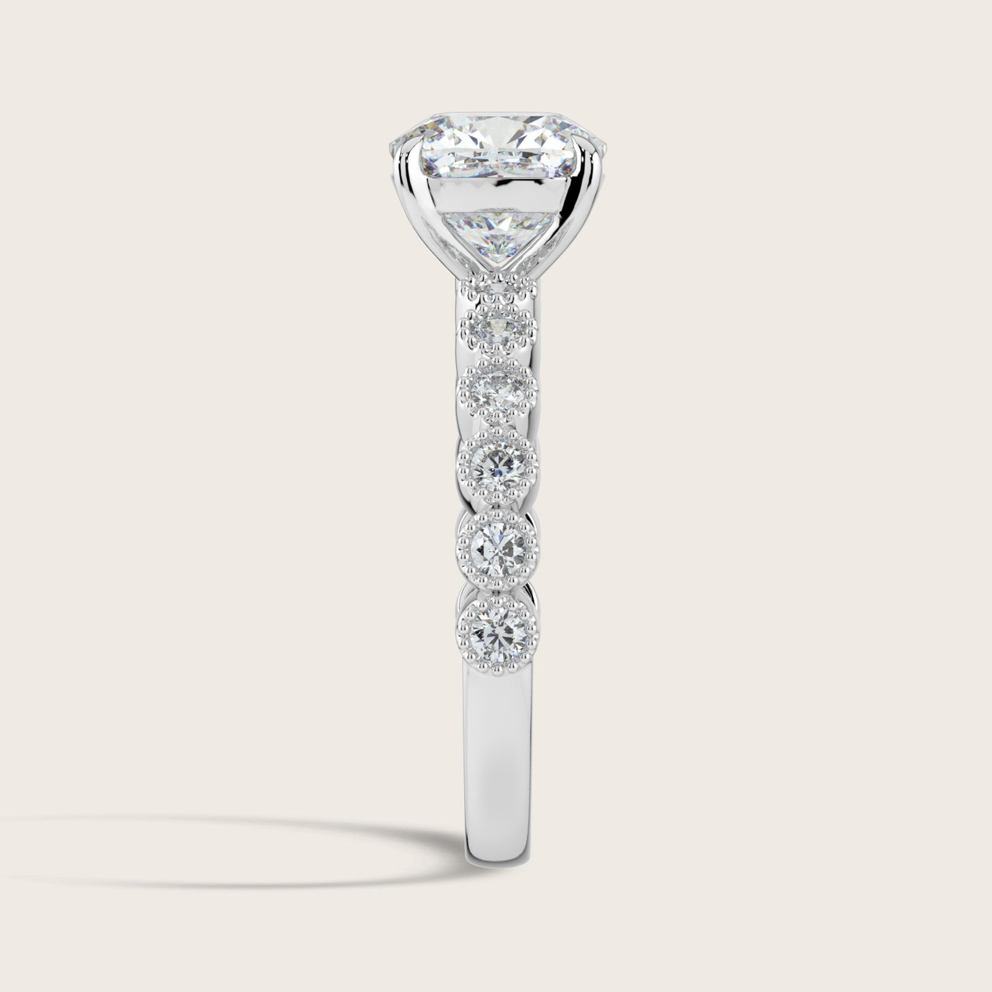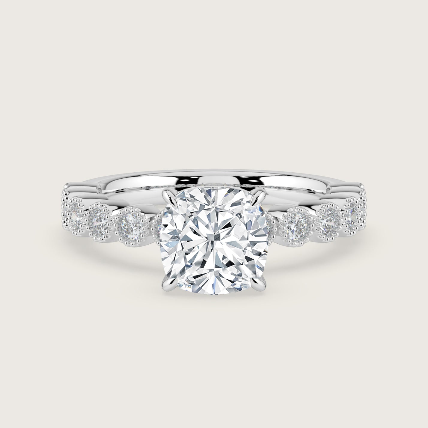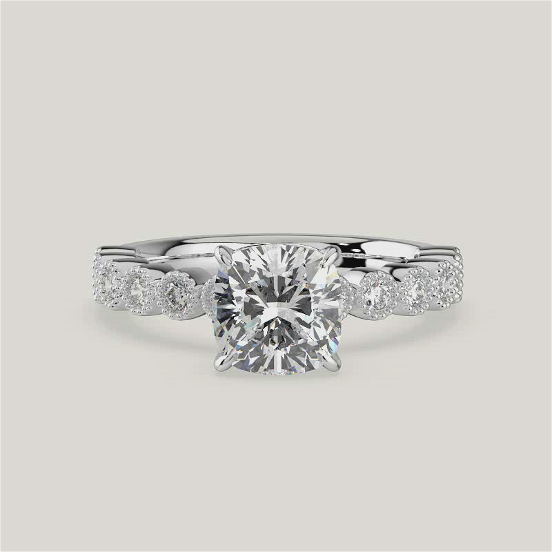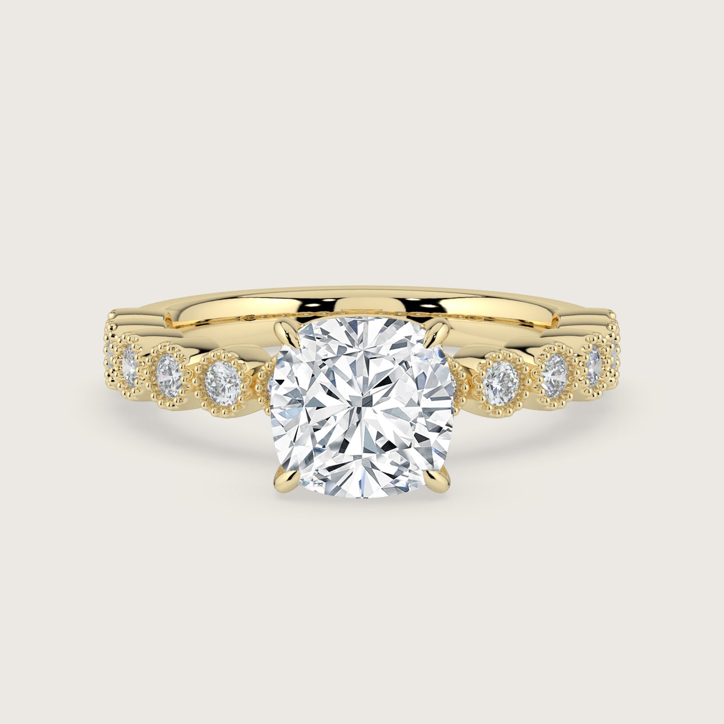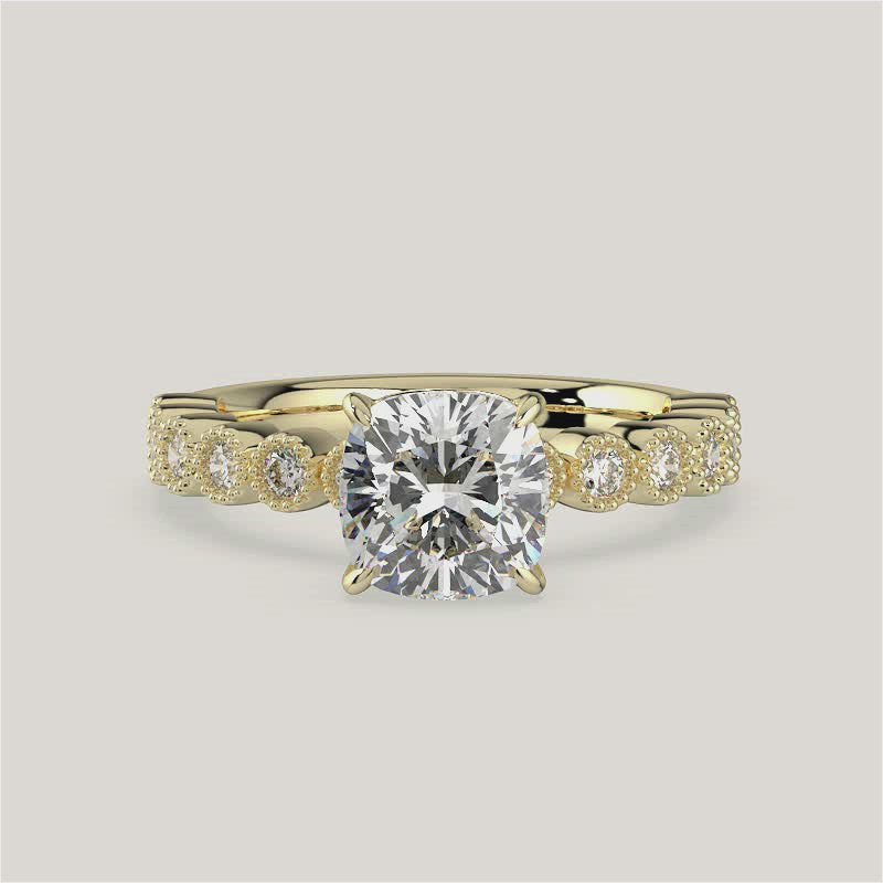 Amelia, Vintage Milgrain Cushion Cut Diamond Ring