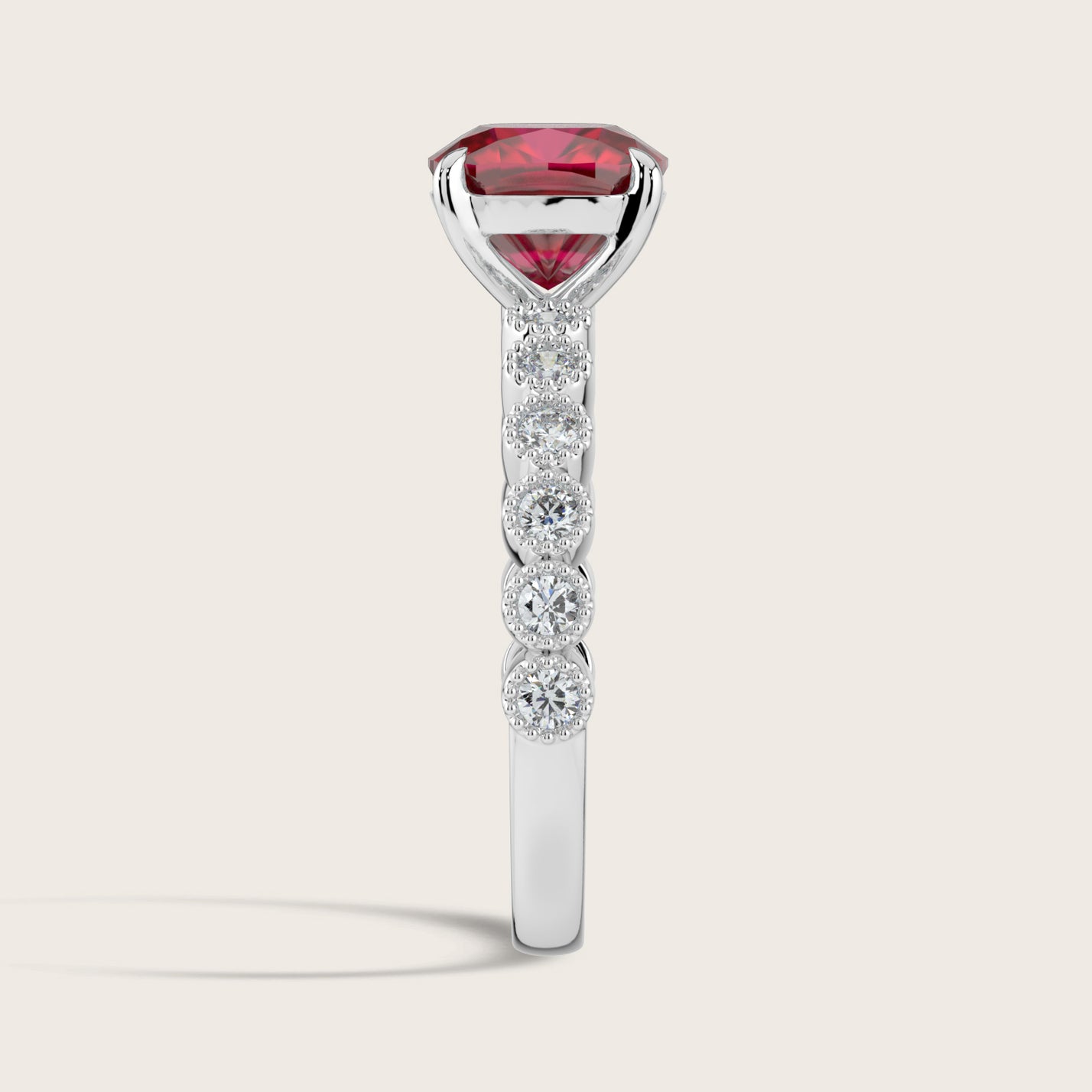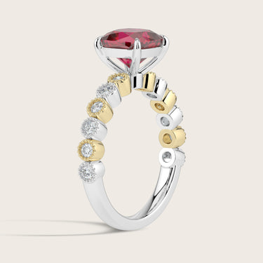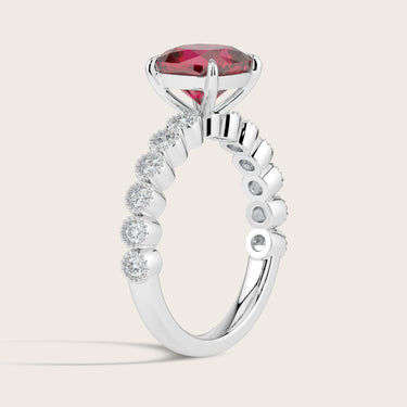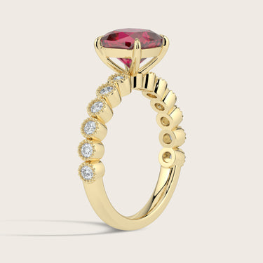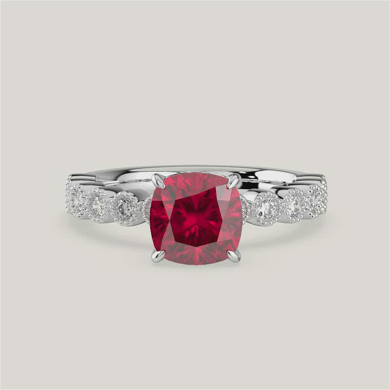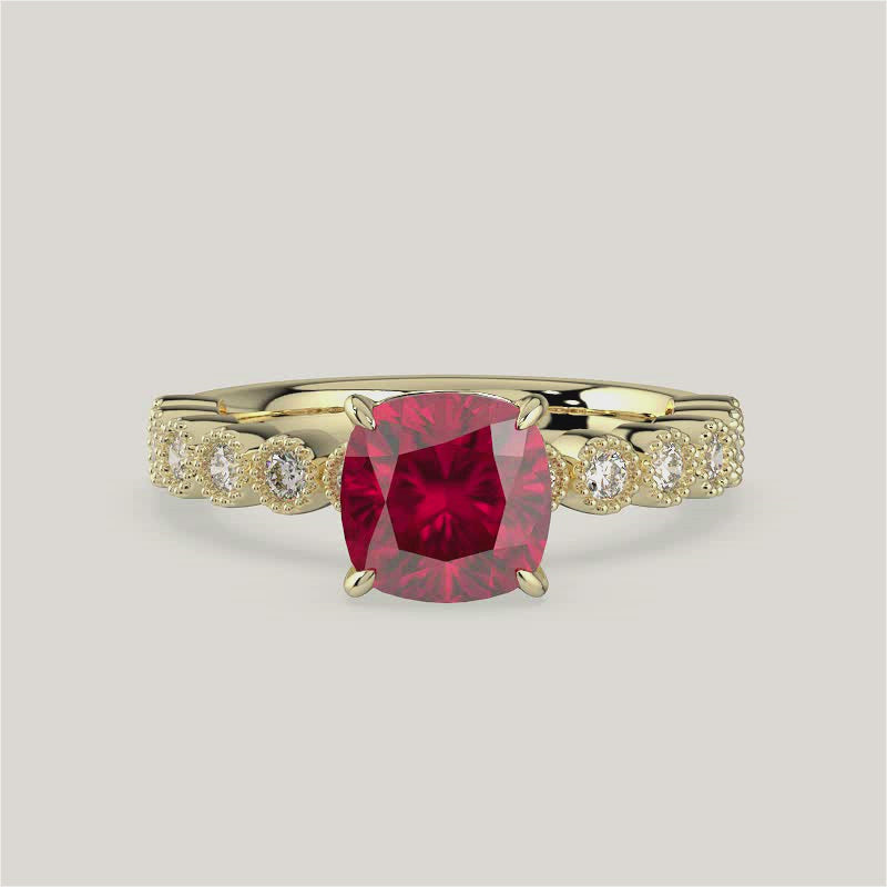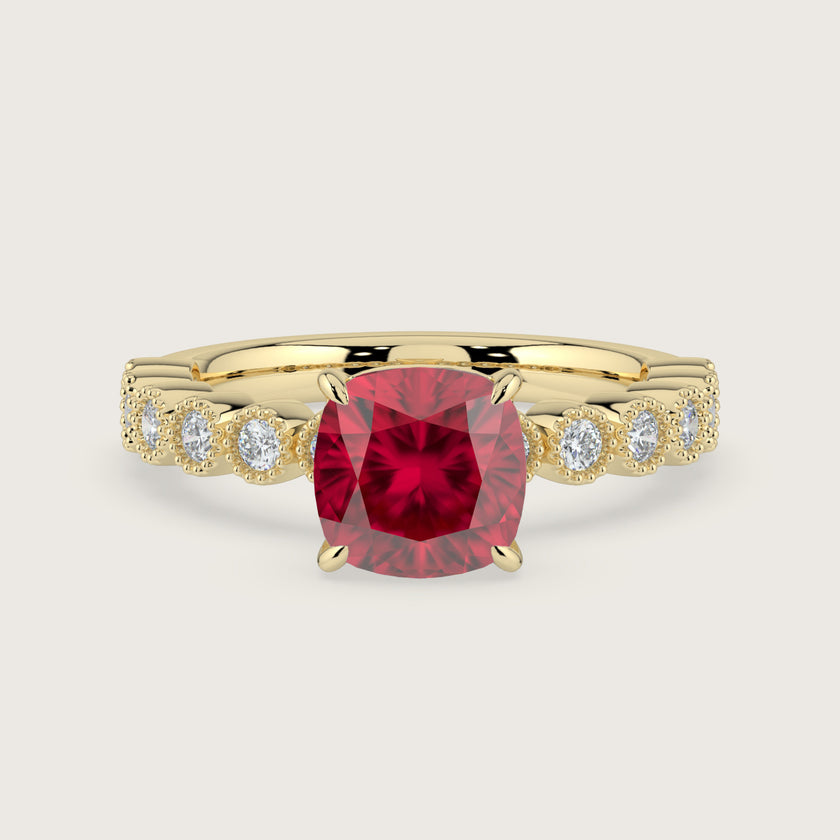 Amelia, Vintage Milgrain Cushion Cut Ruby Ring