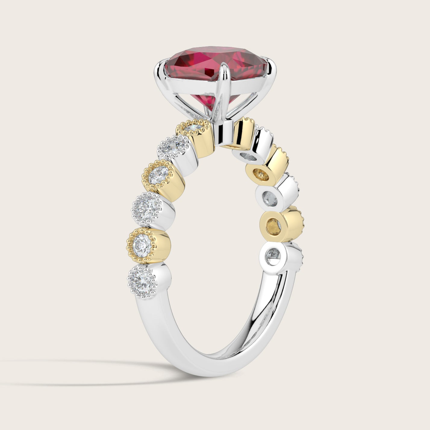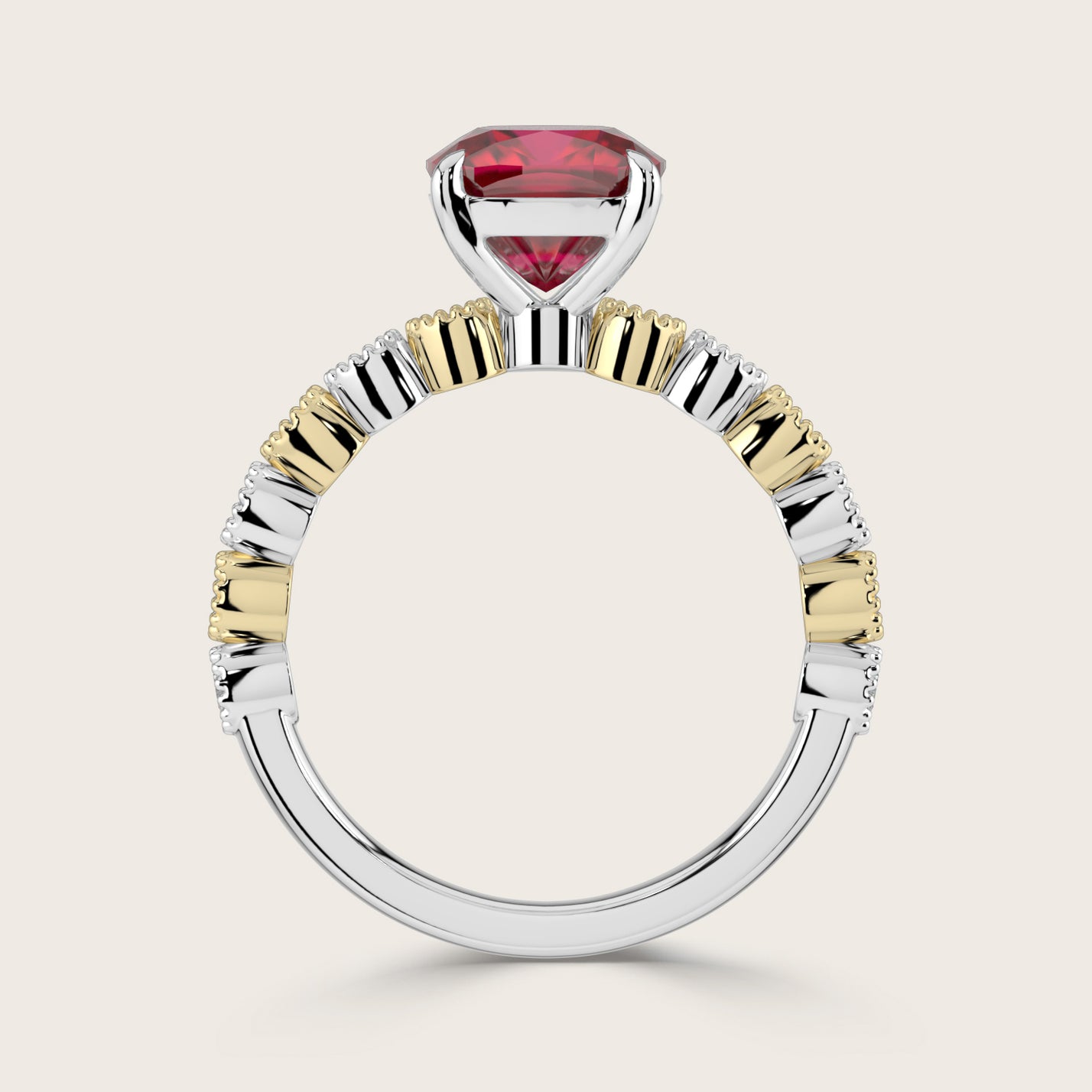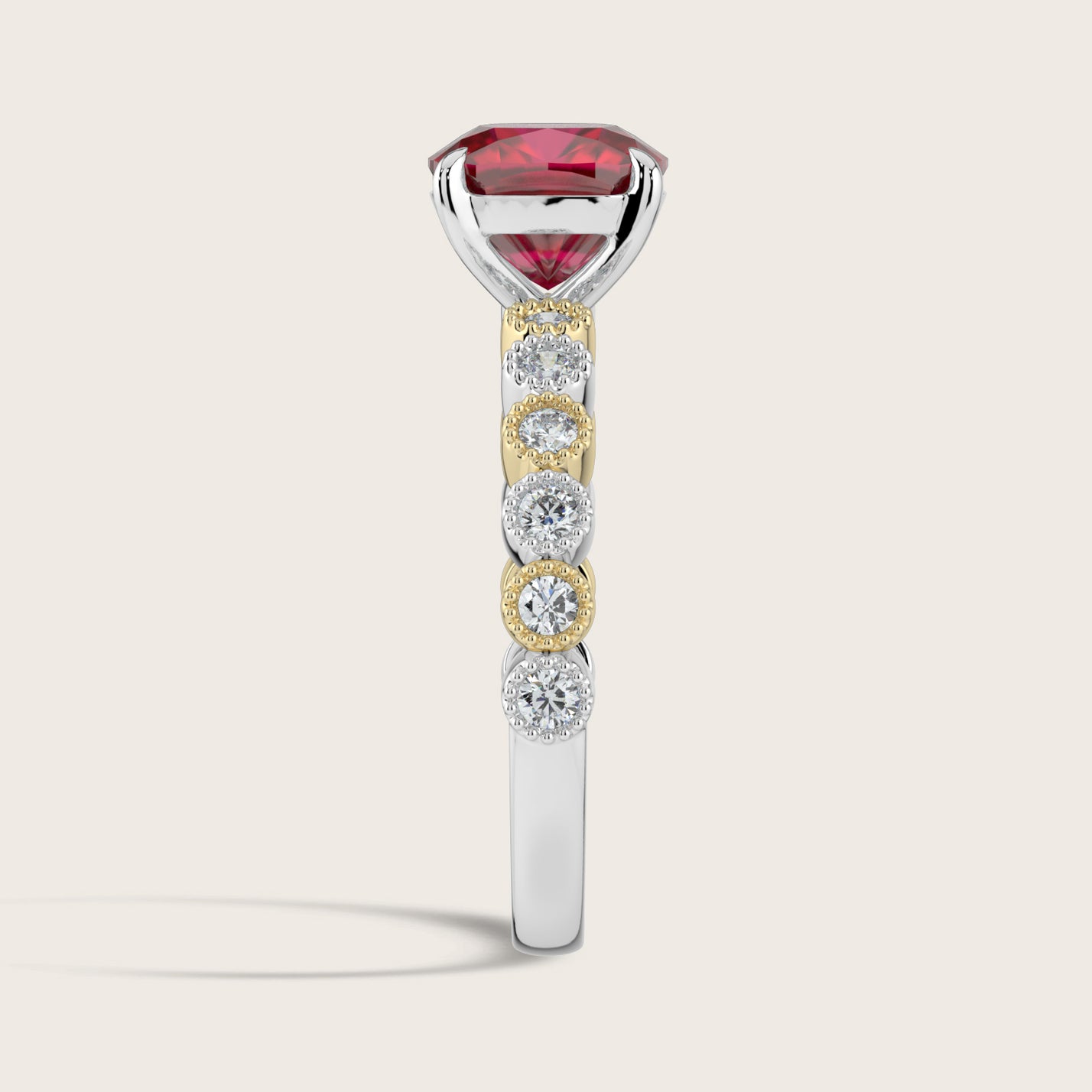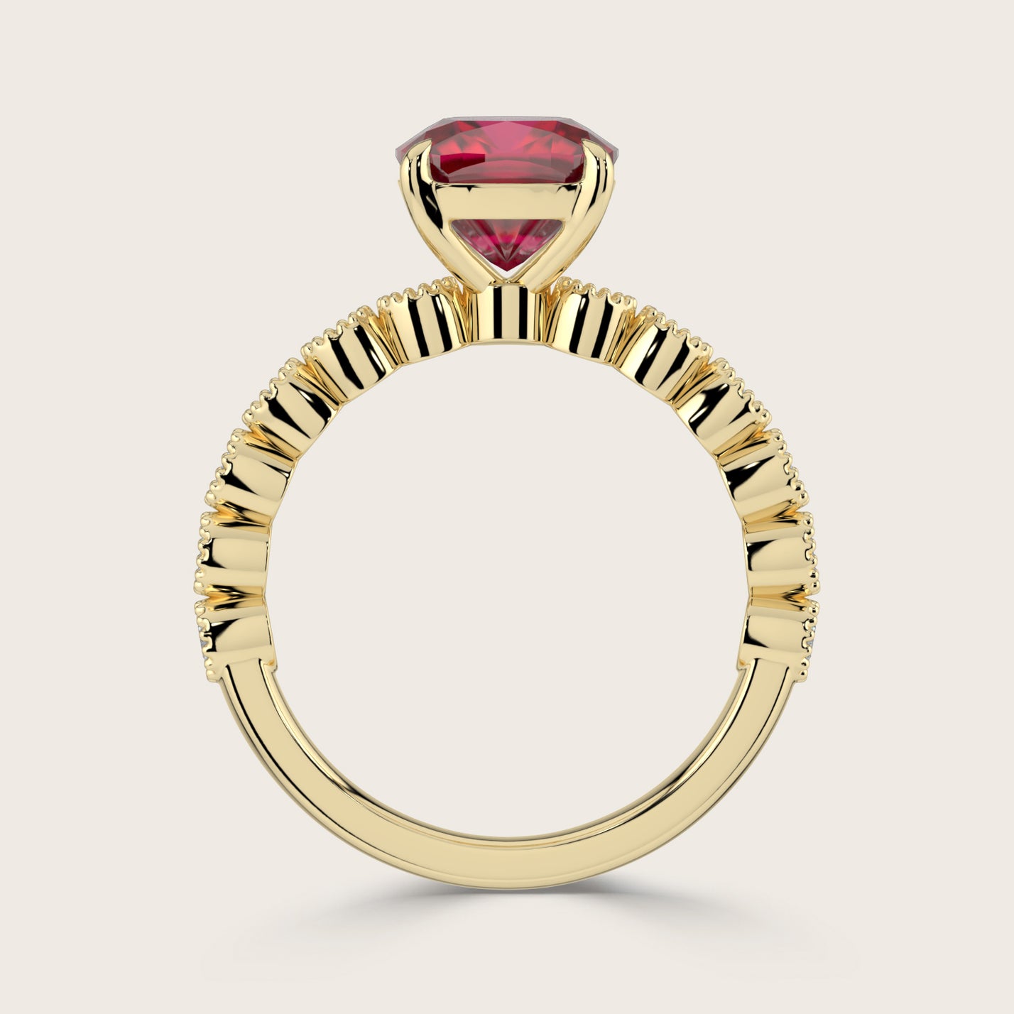 Amelia, Vintage Milgrain Cushion Cut Ruby Ring