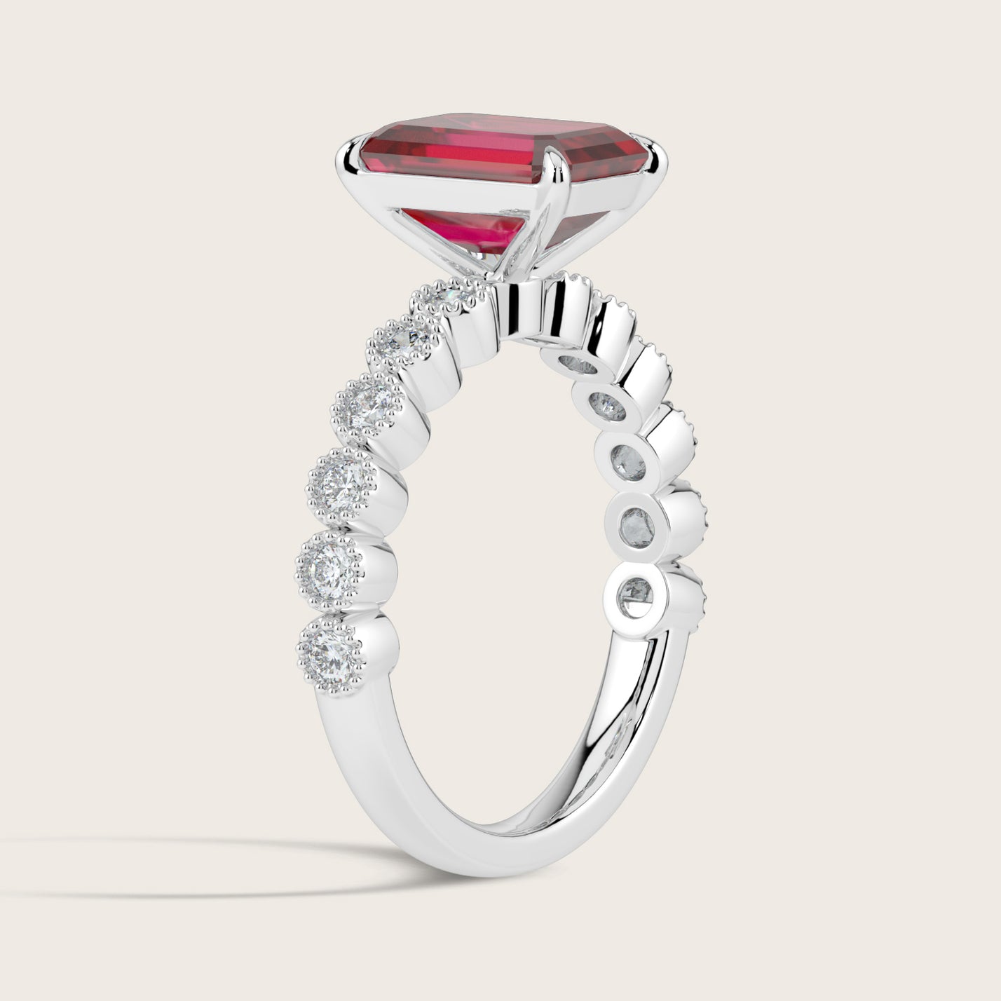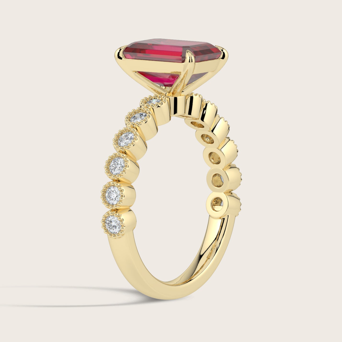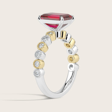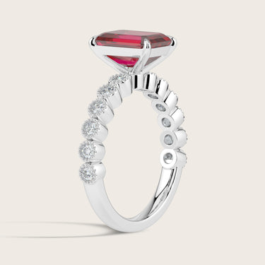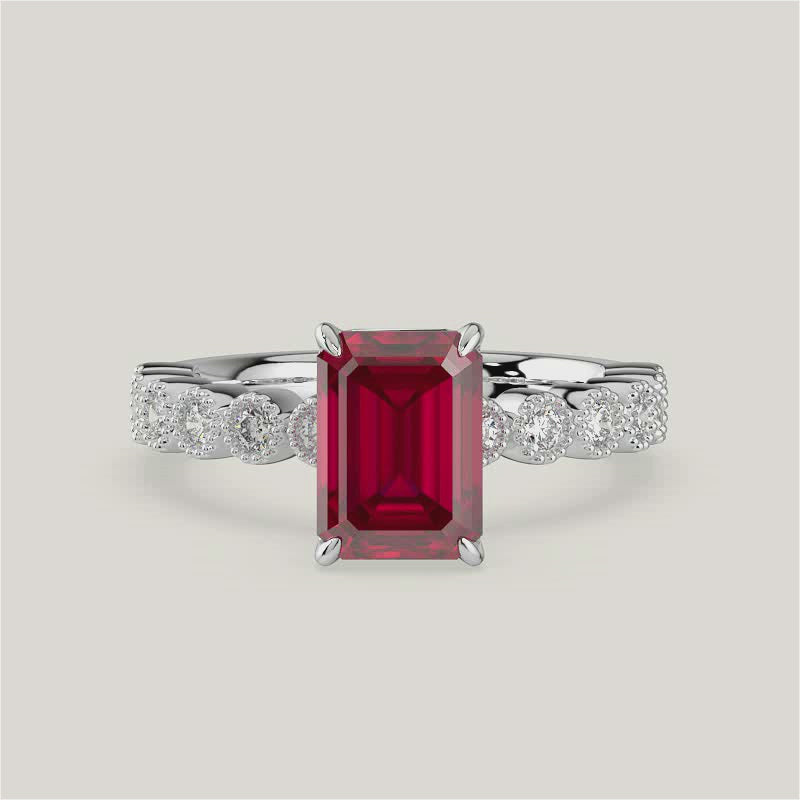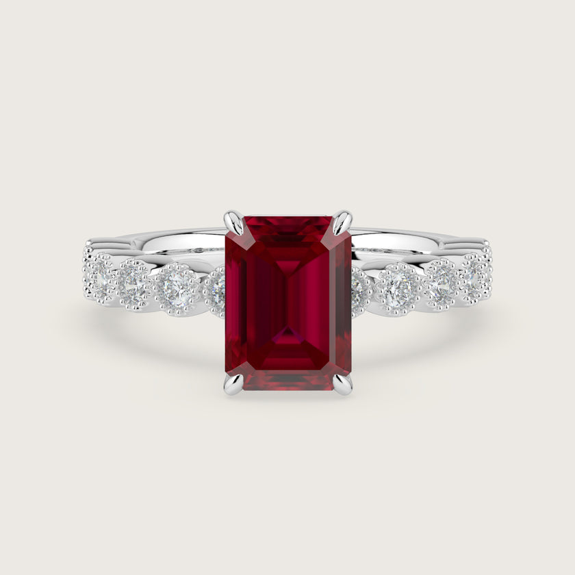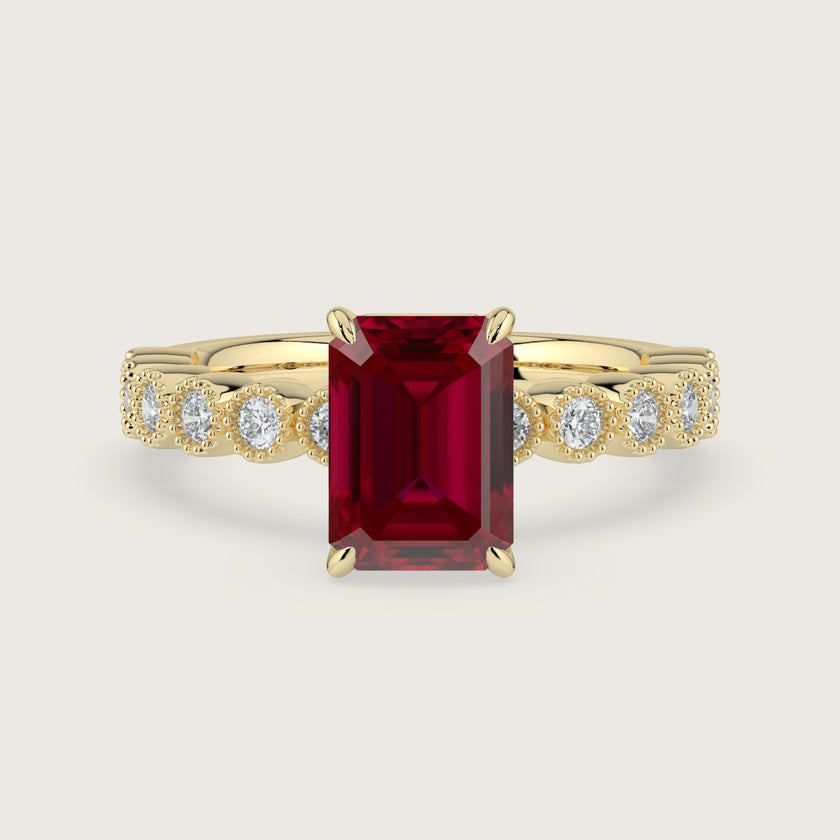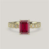 Amelia, Vintage Milgrain Emerald Cut Ruby Ring