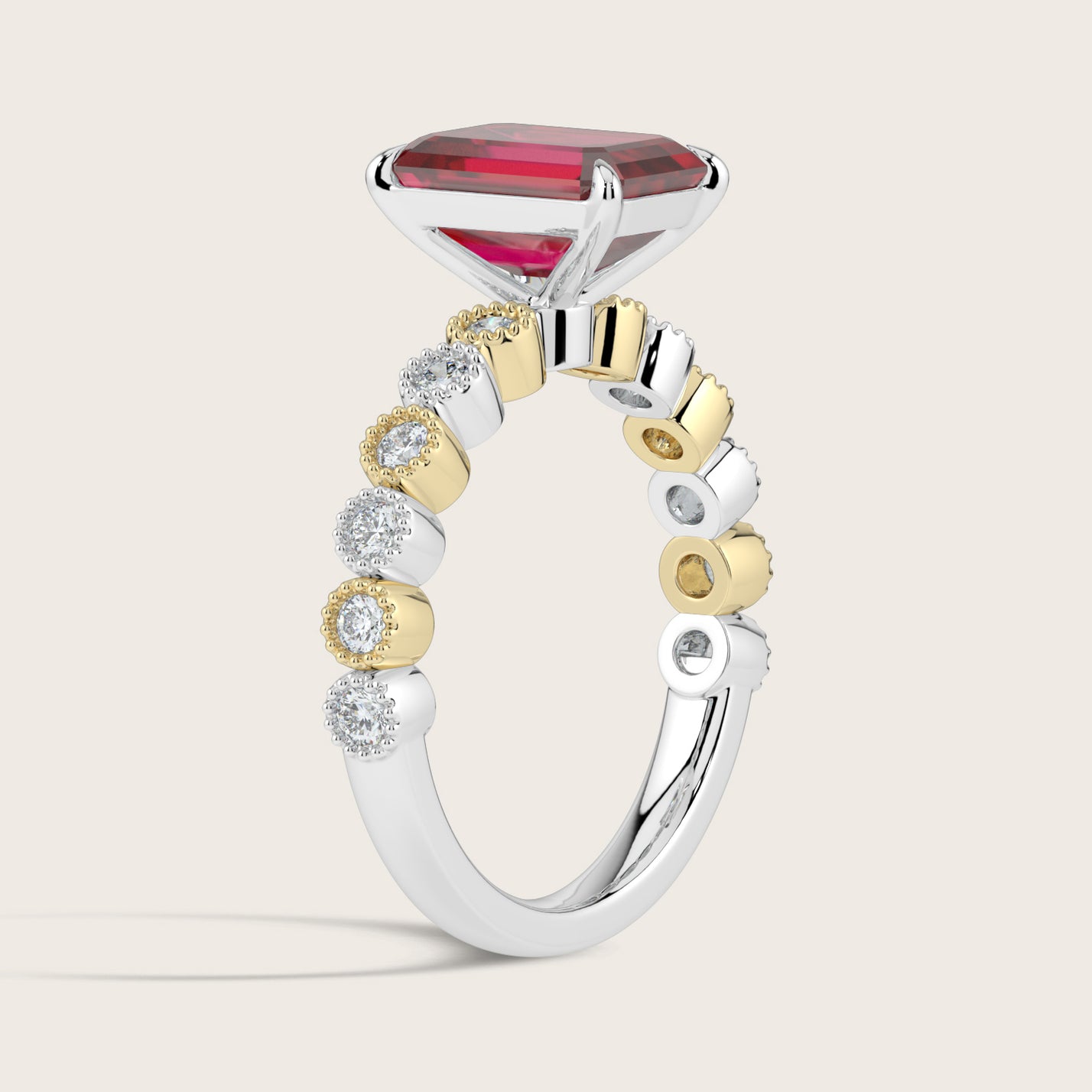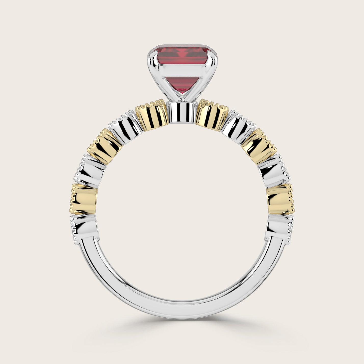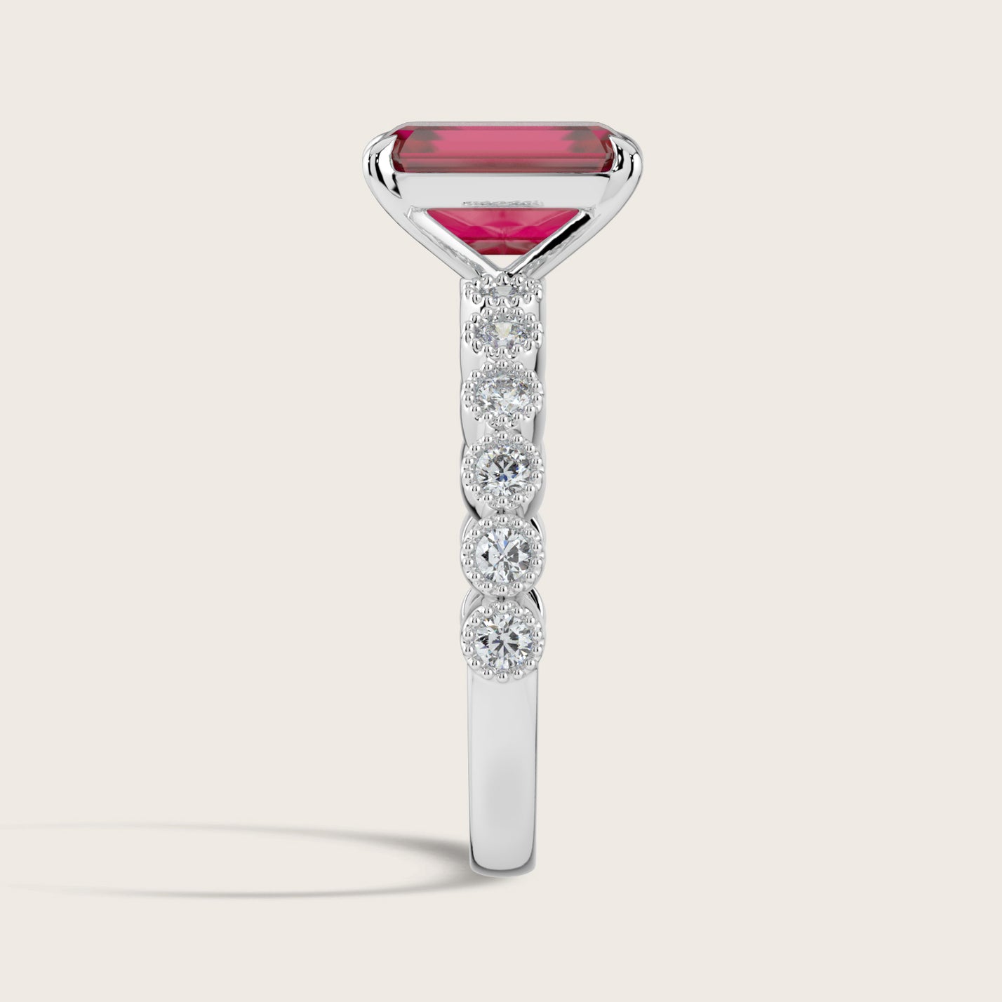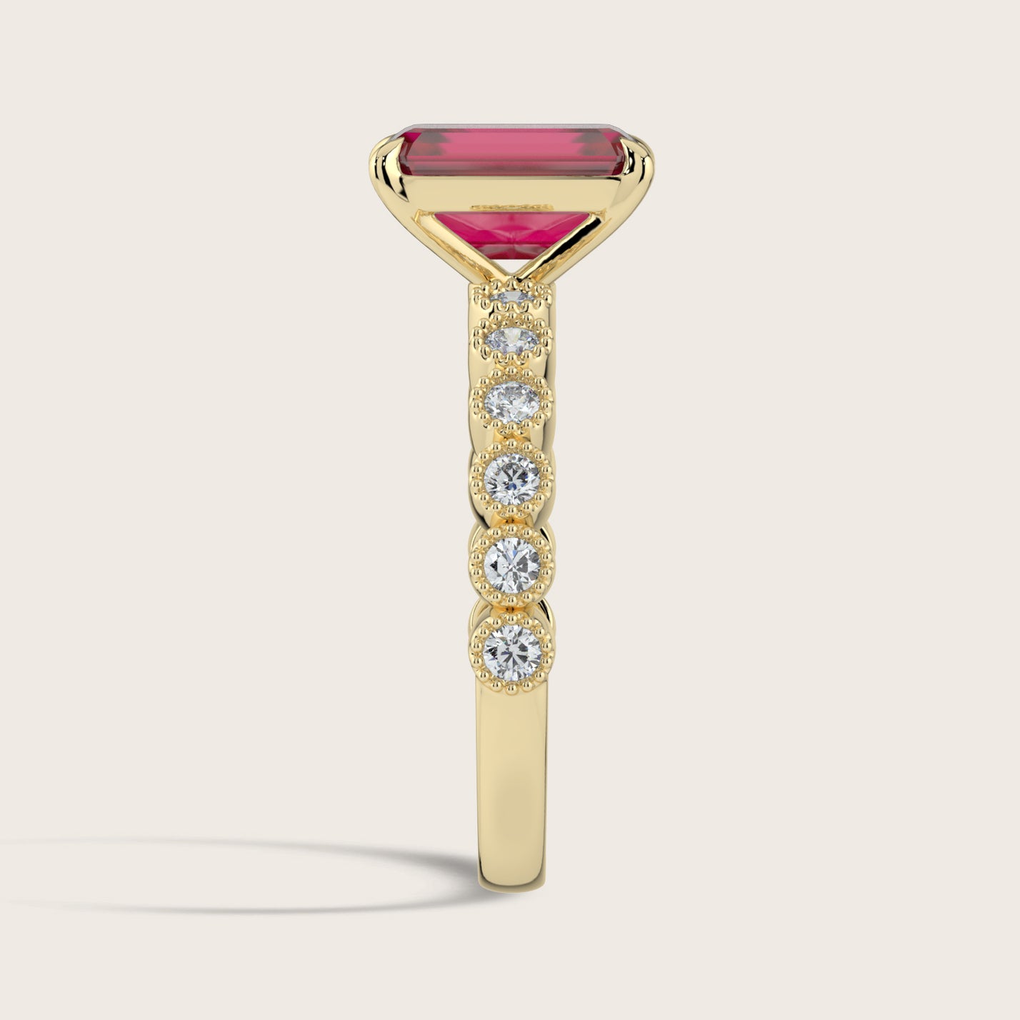 Amelia, Vintage Milgrain Emerald Cut Ruby Ring