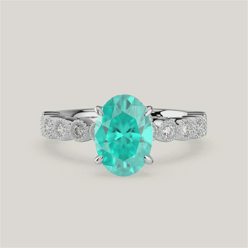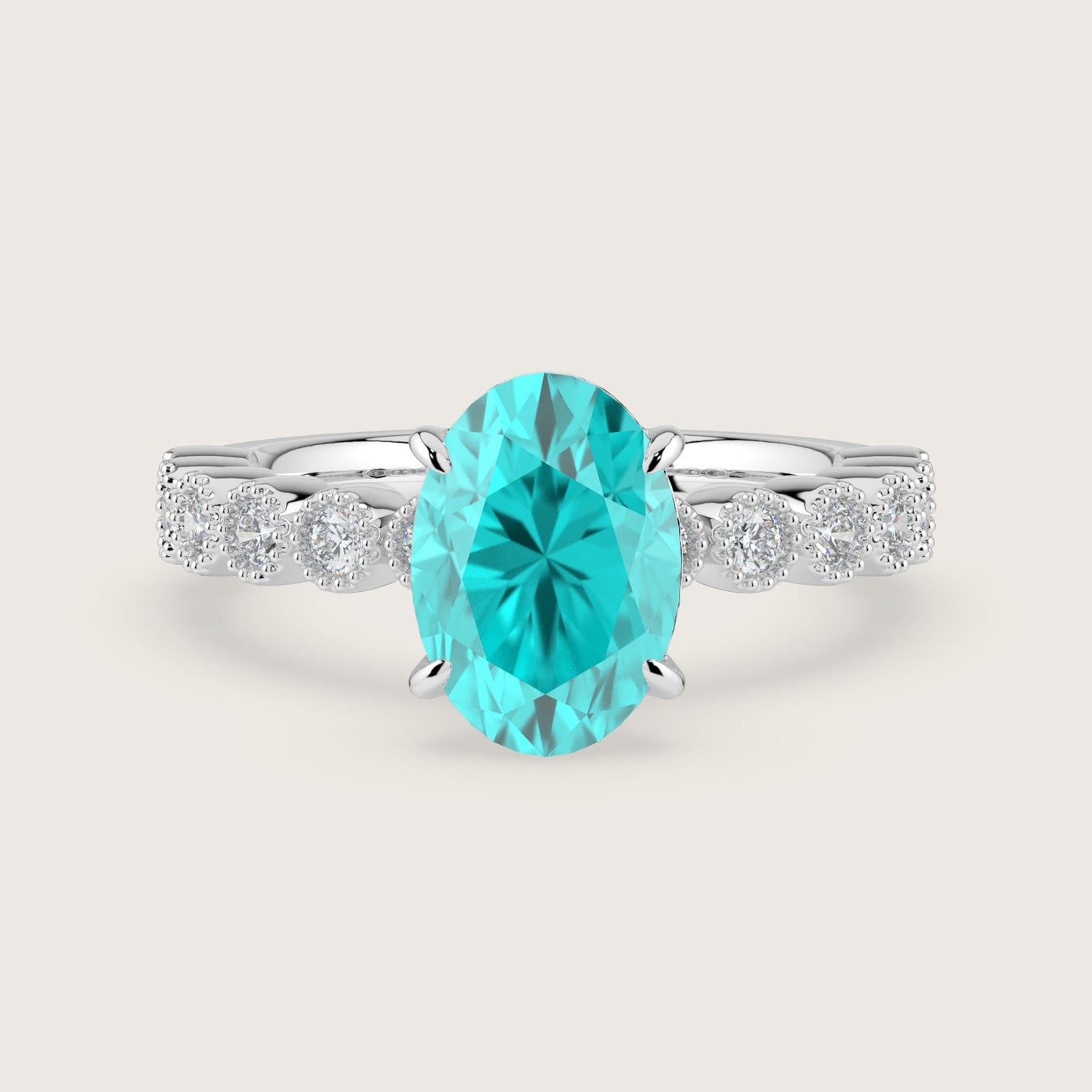 Amelia, Vintage Milgrain Oval Cut Paraiba Ring