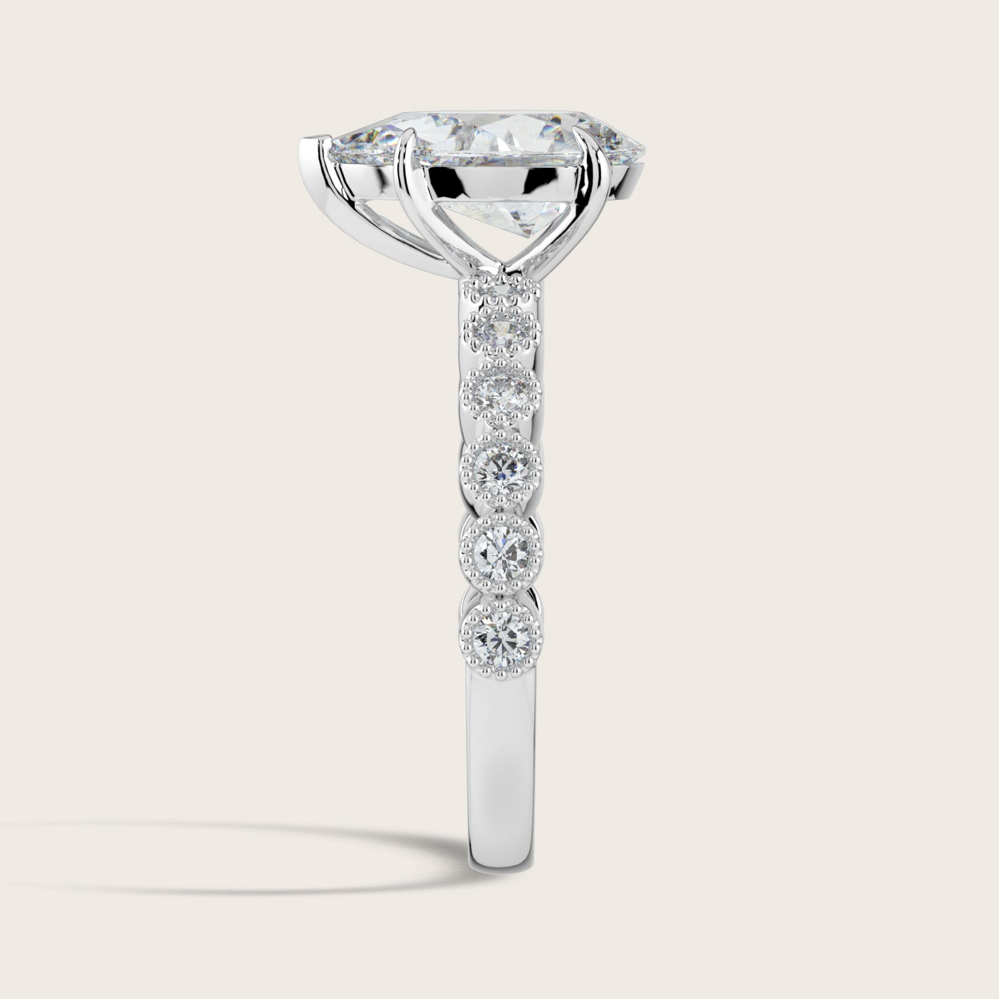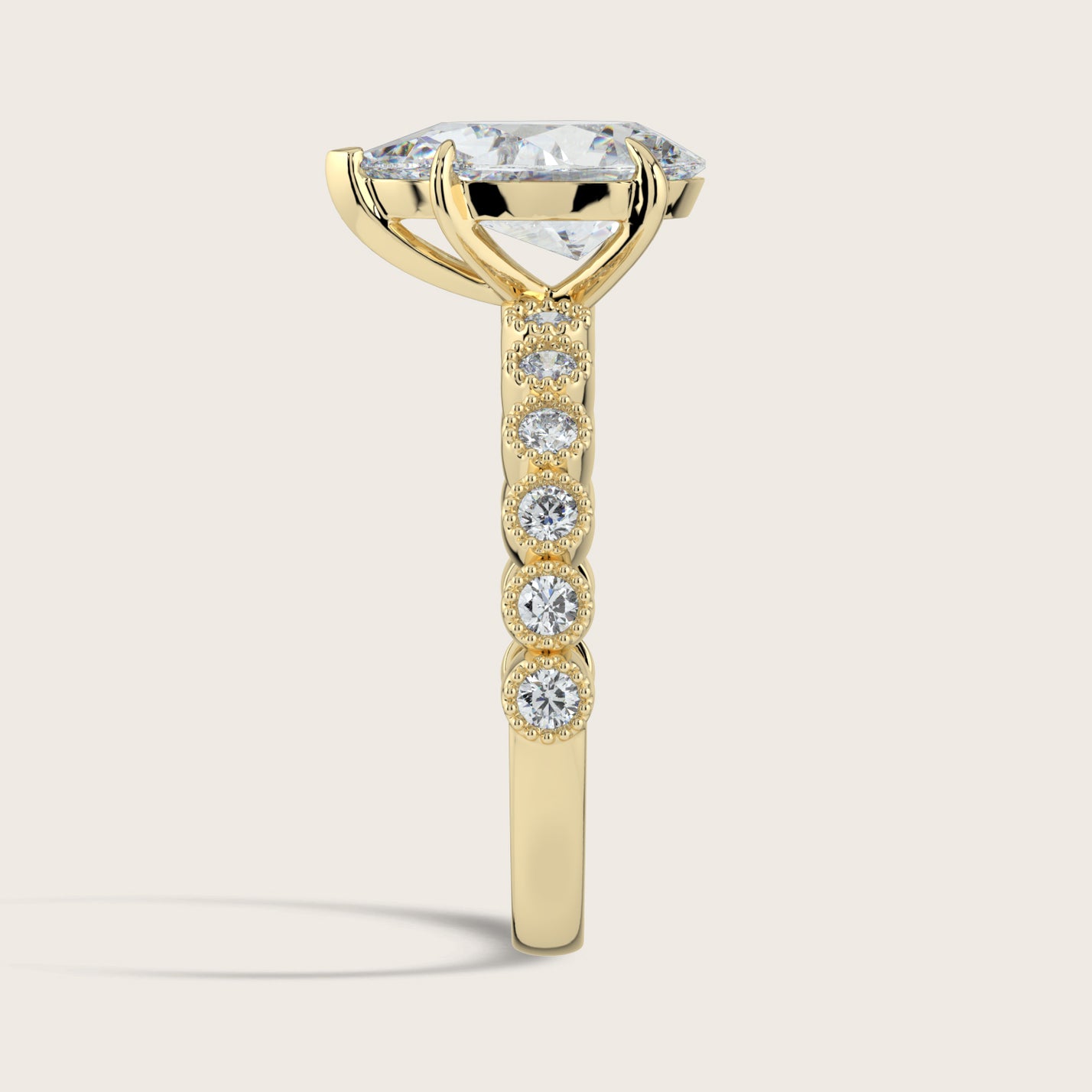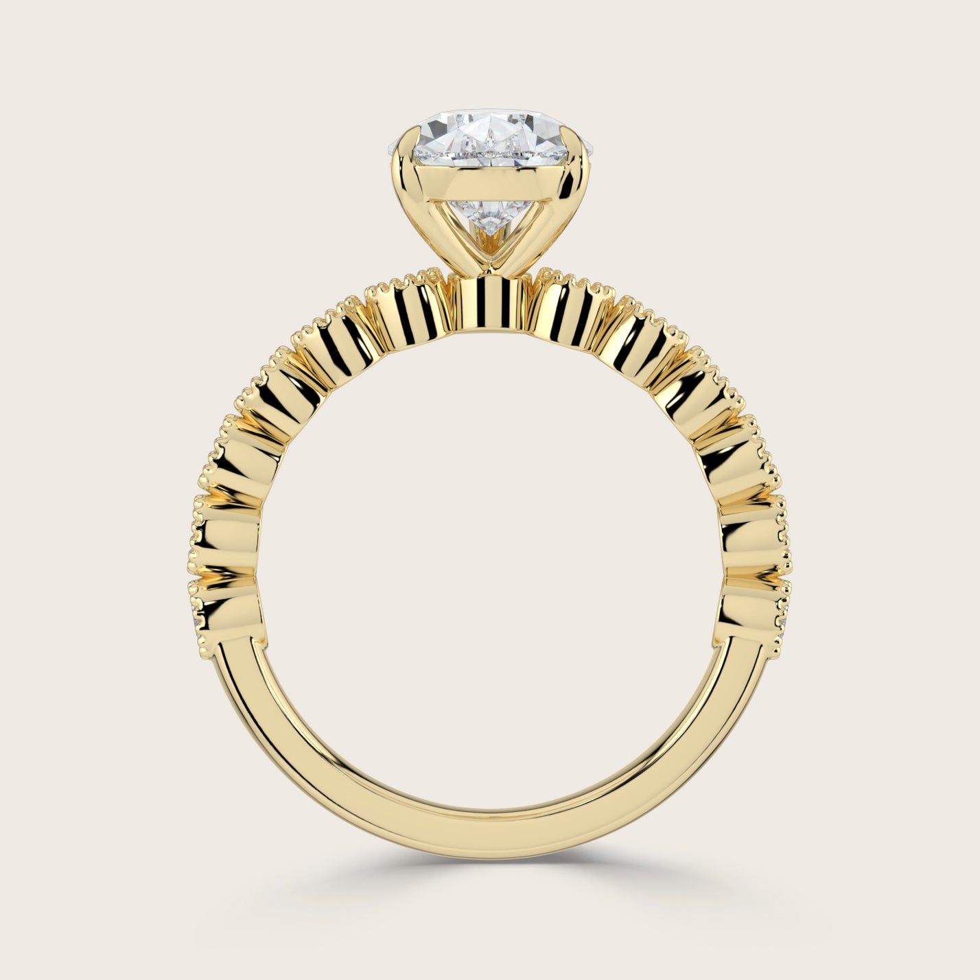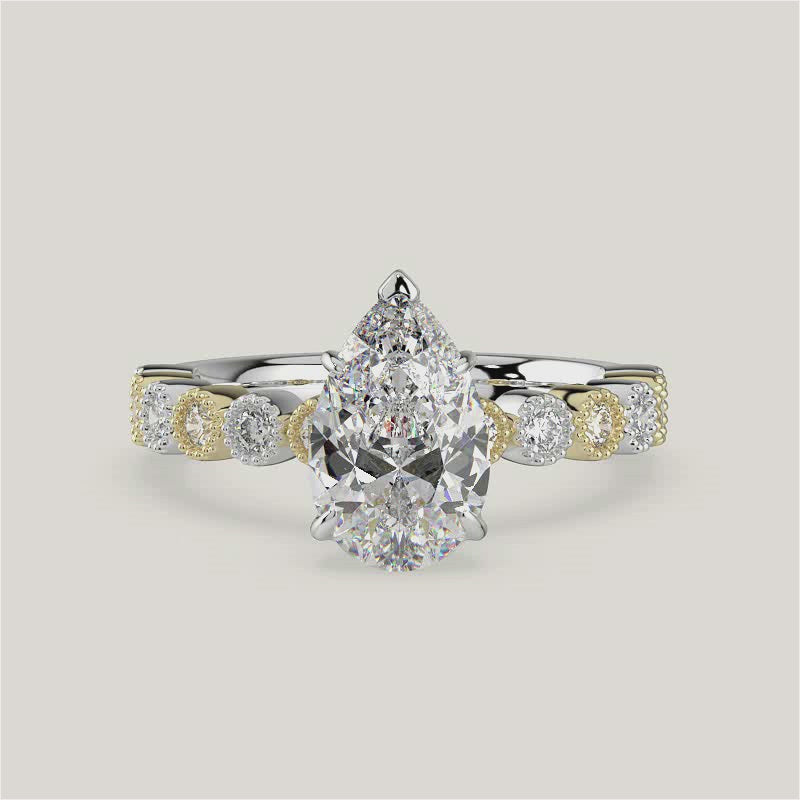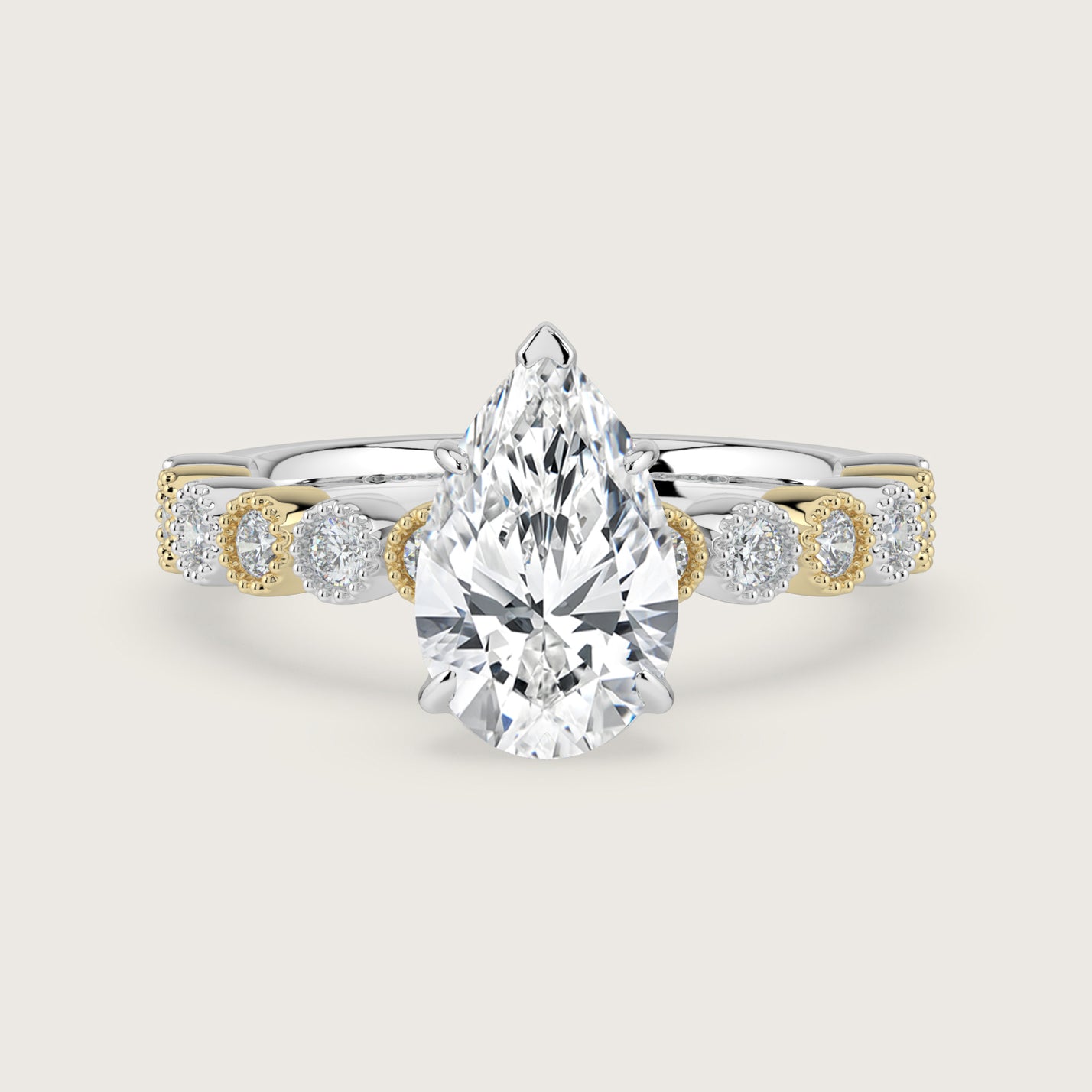 Amelia, Vintage Milgrain Pear Cut Diamond Ring