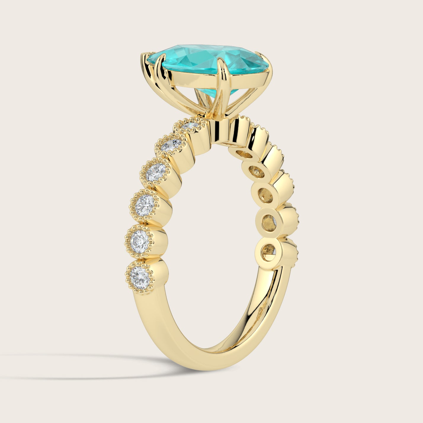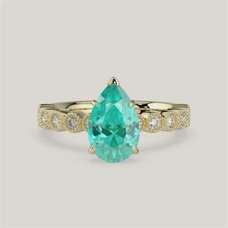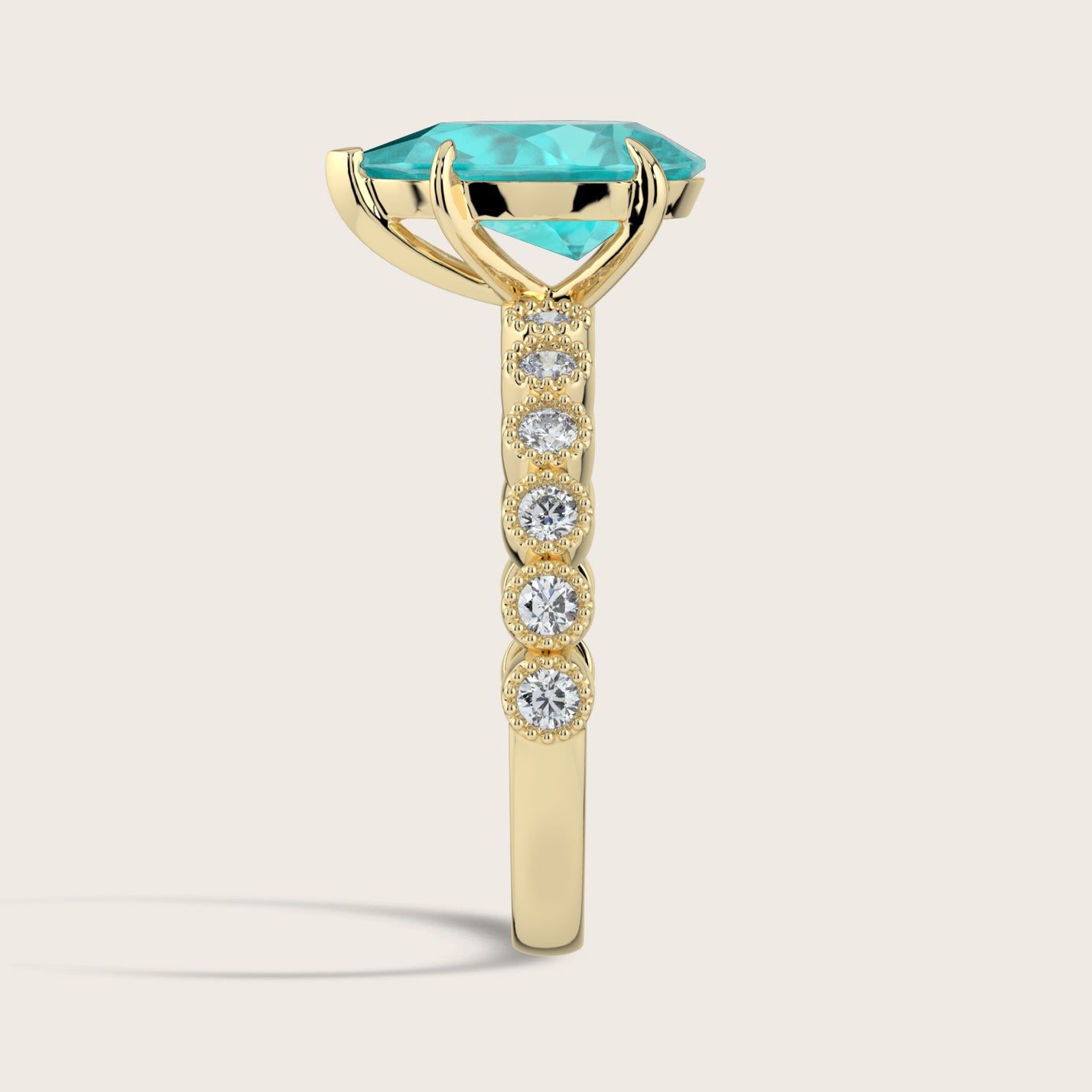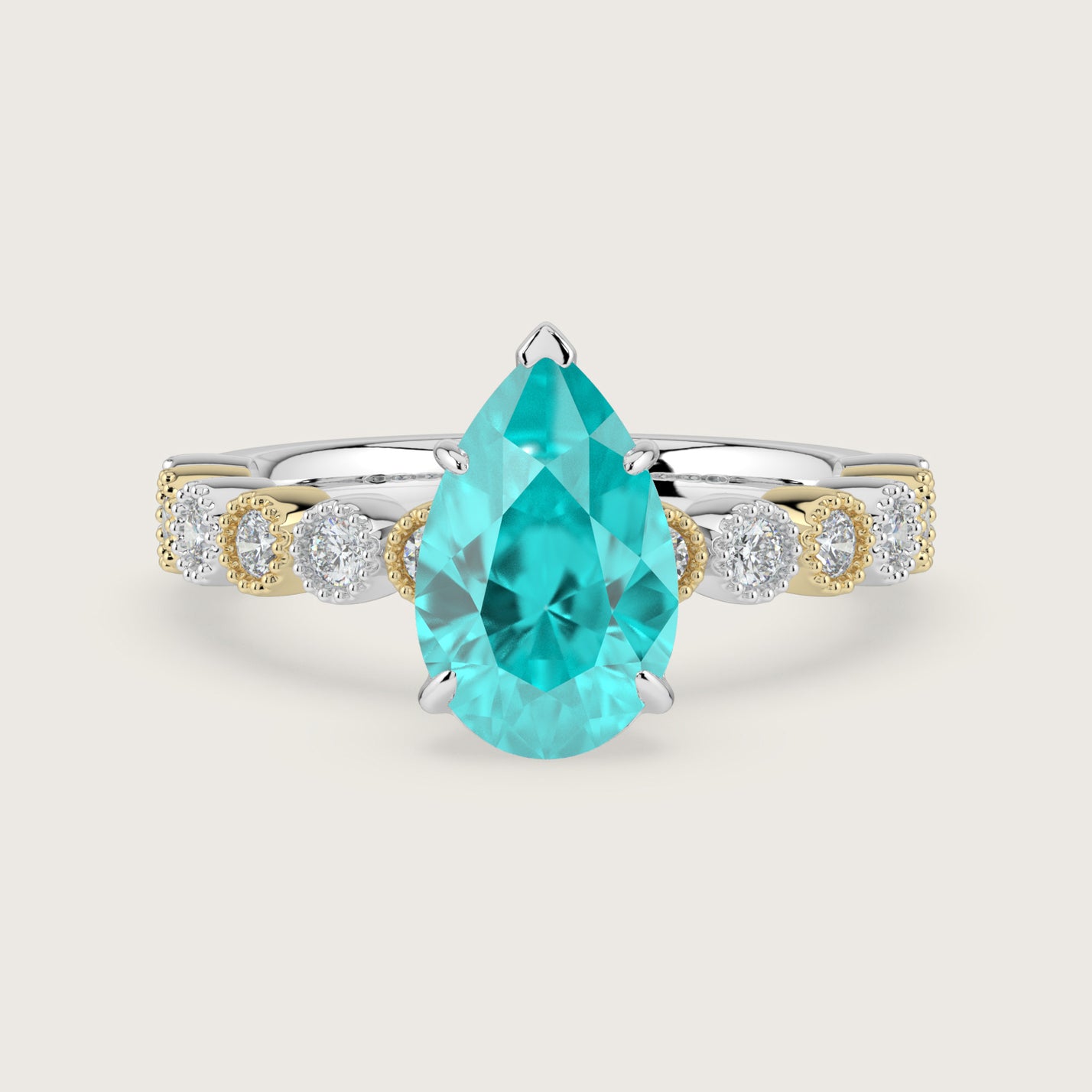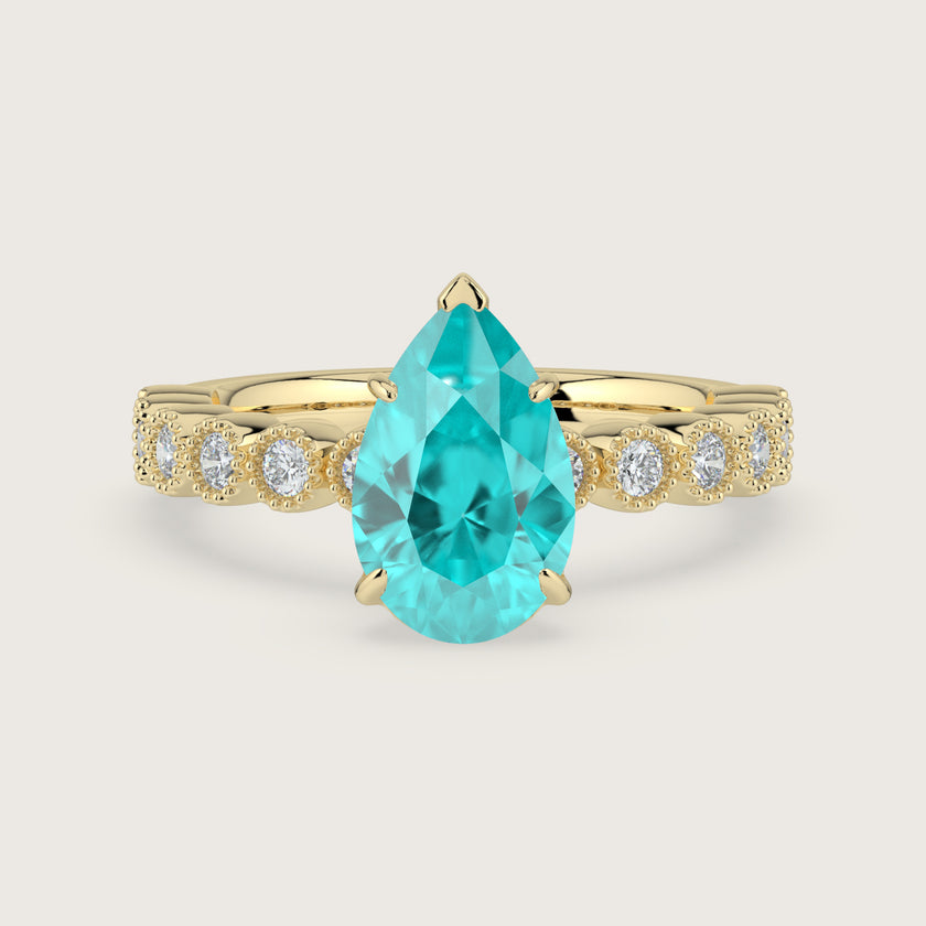 Amelia, Vintage Milgrain Pear Cut Paraiba Ring