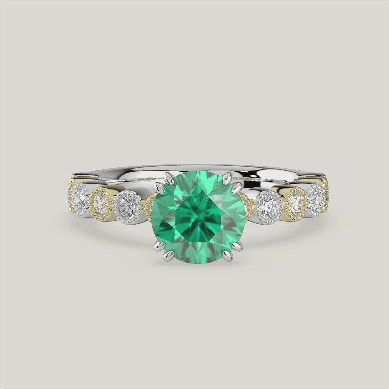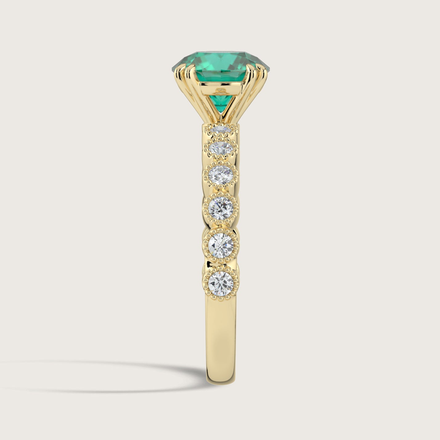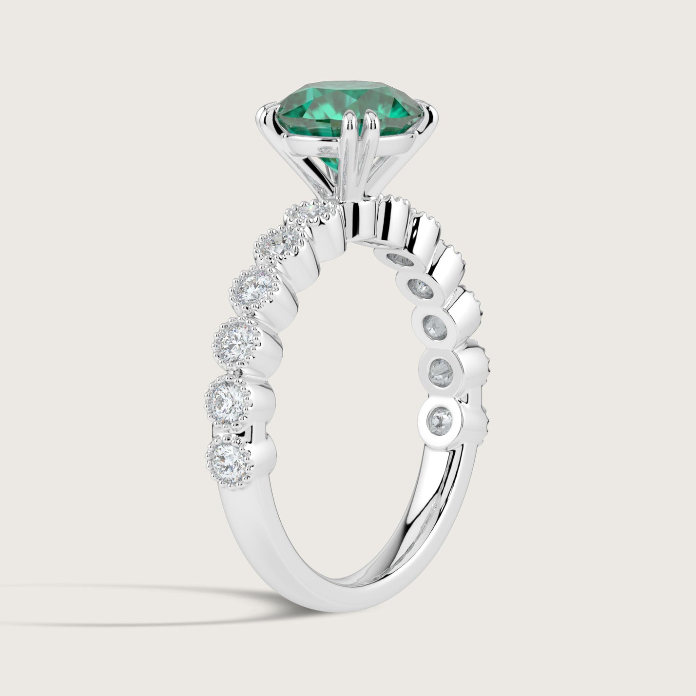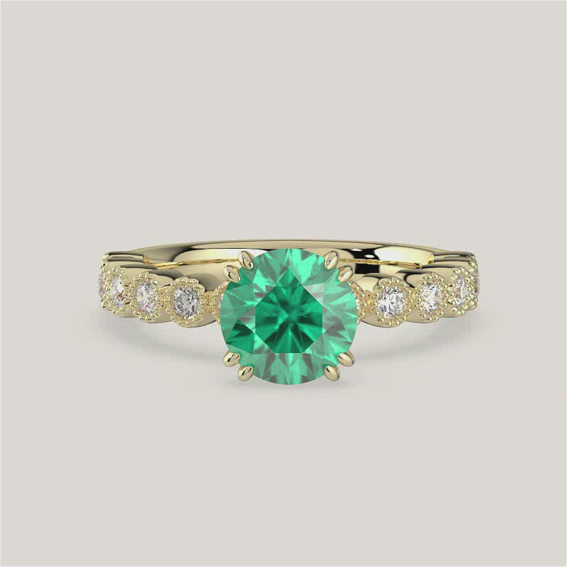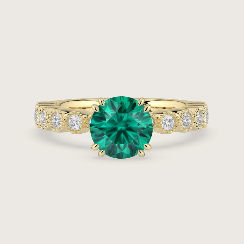 Amelia, Vintage Milgrain Round Brilliant Emerald Ring