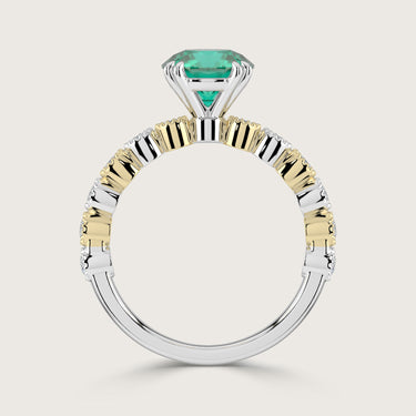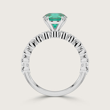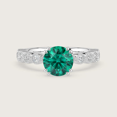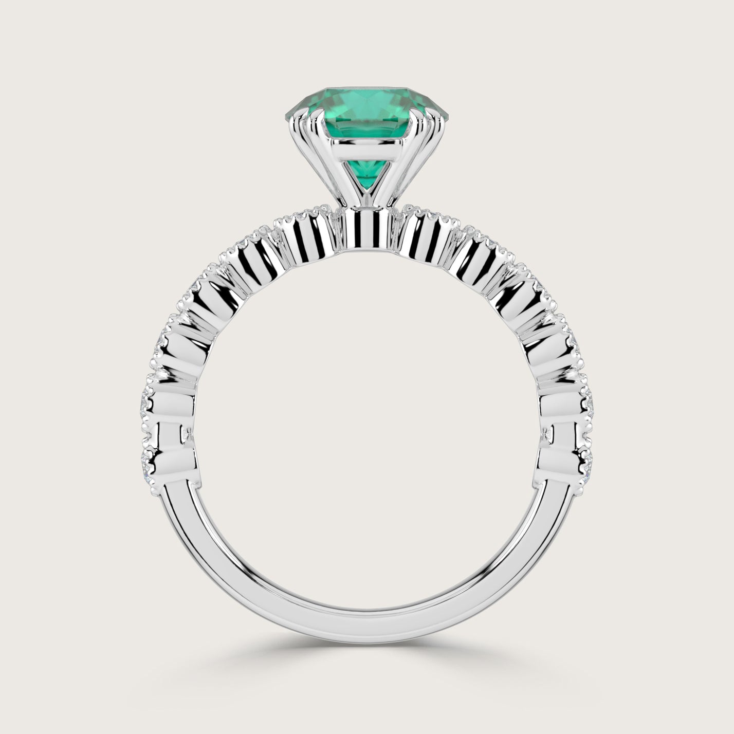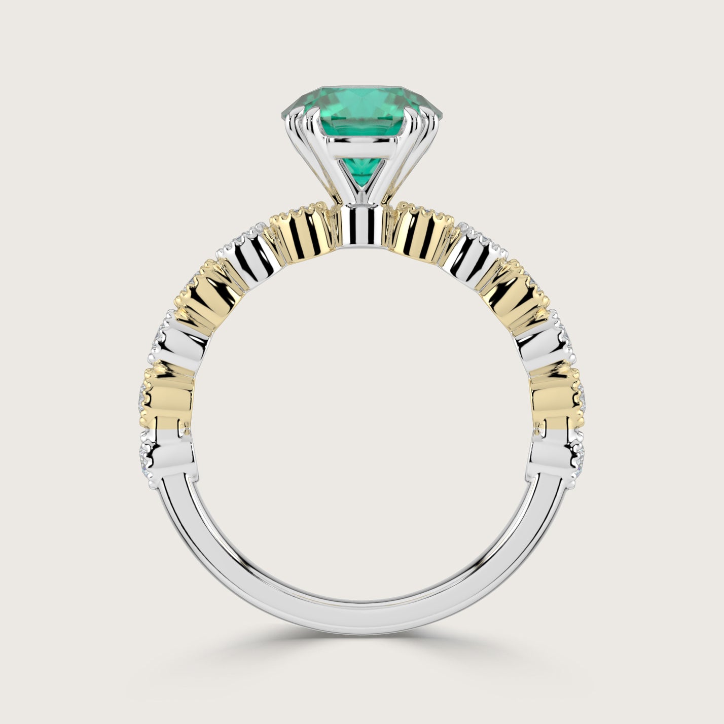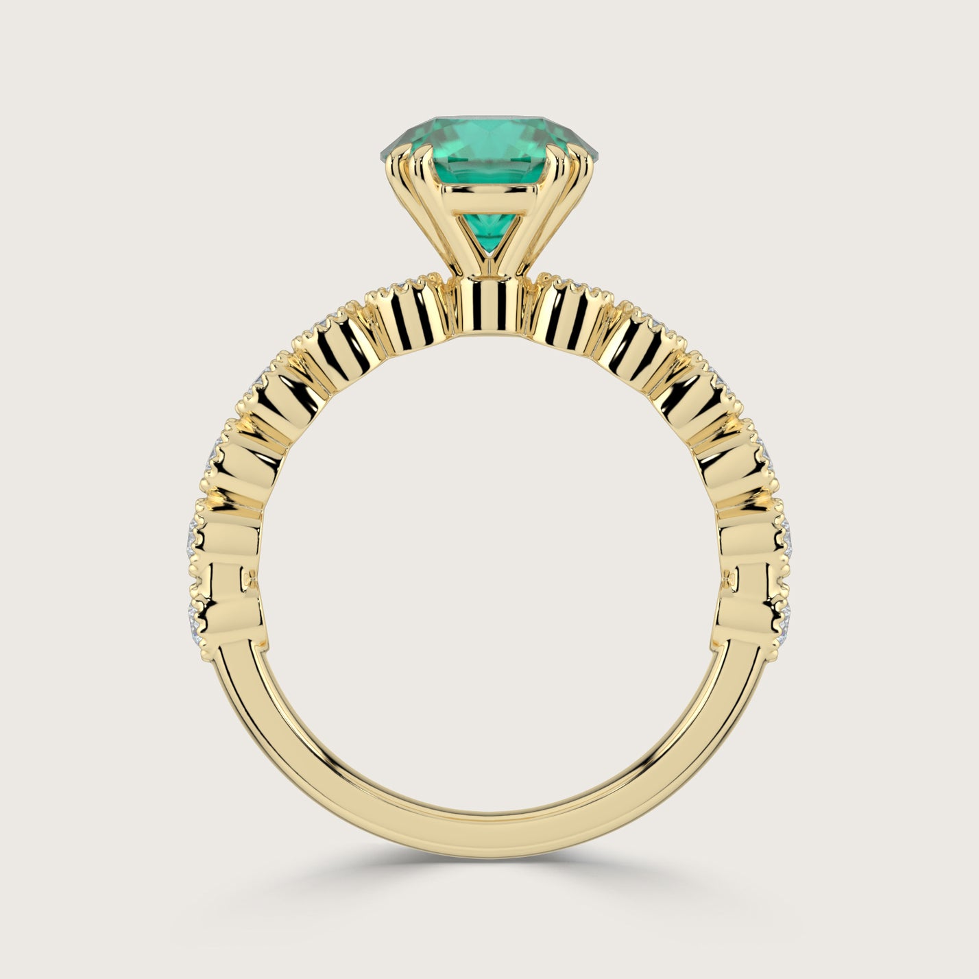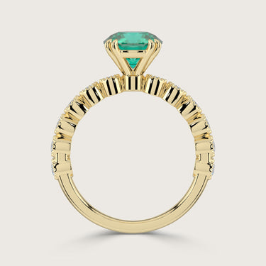 Amelia, Vintage Milgrain Round Brilliant Emerald Ring