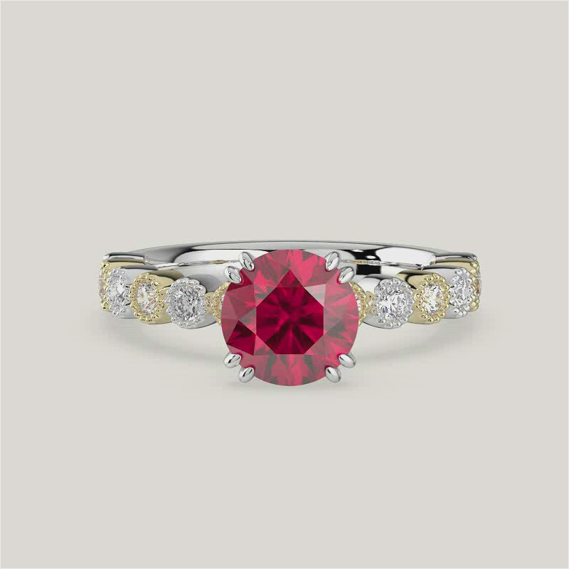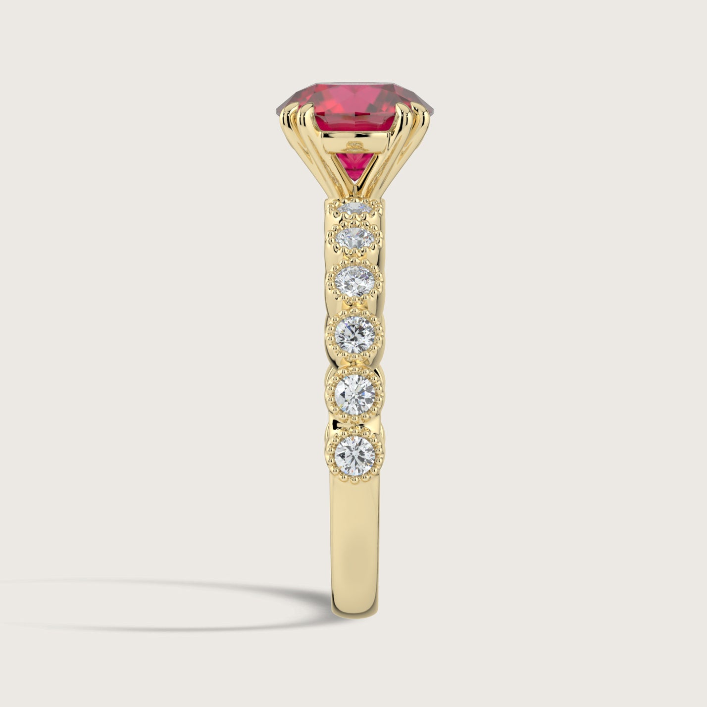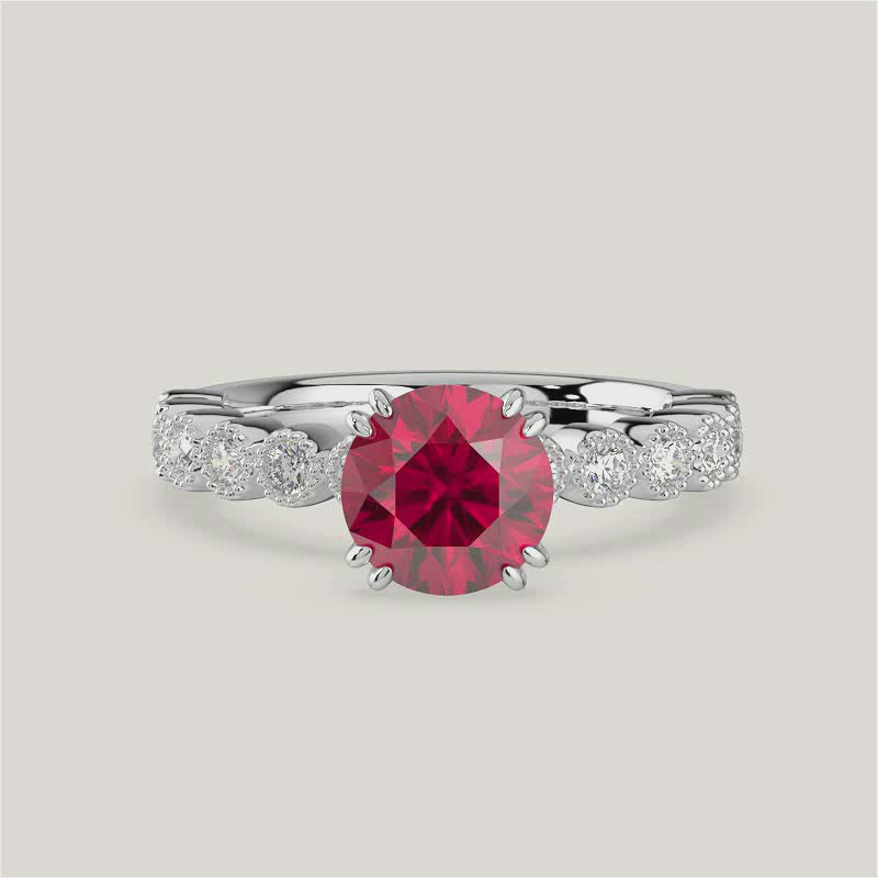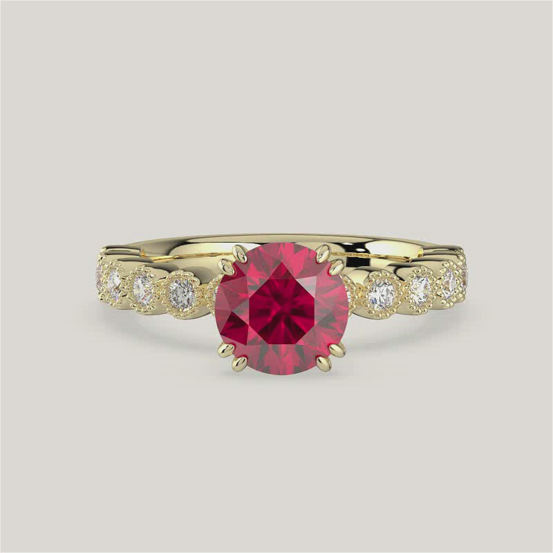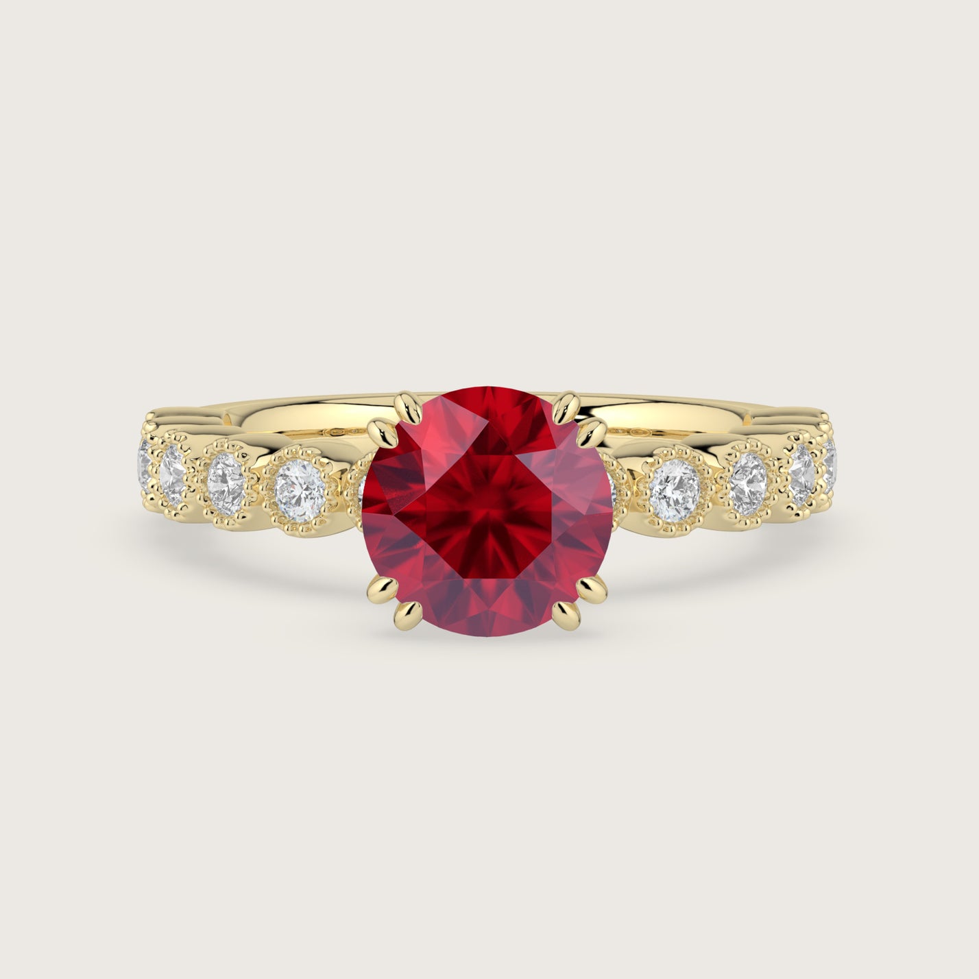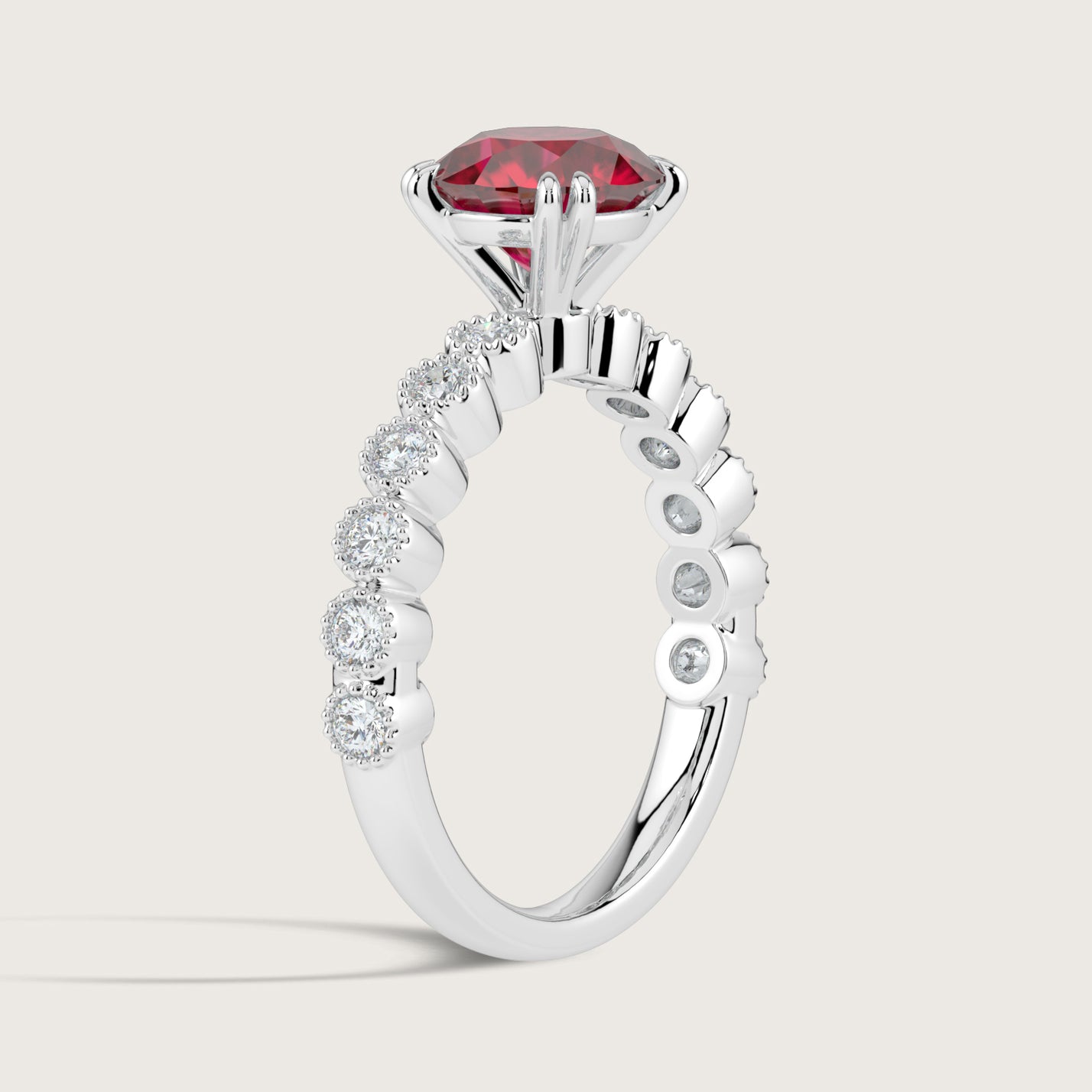 Amelia, Vintage Milgrain Round Brilliant Ruby Ring
