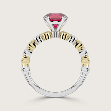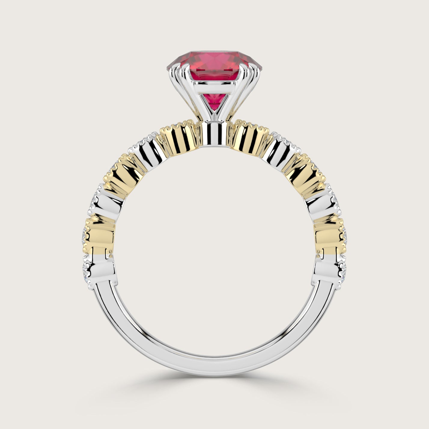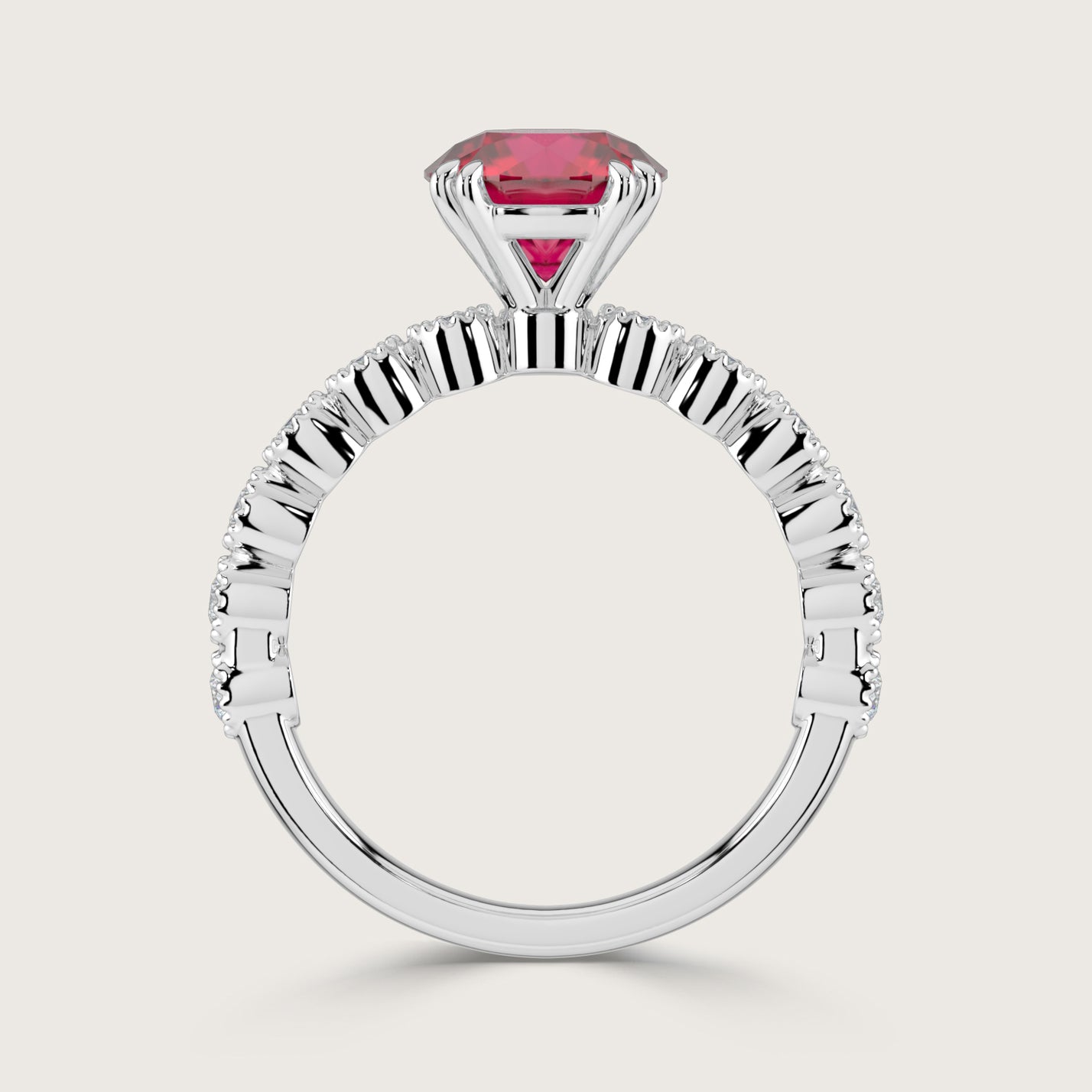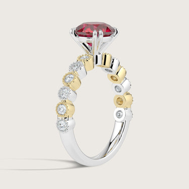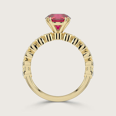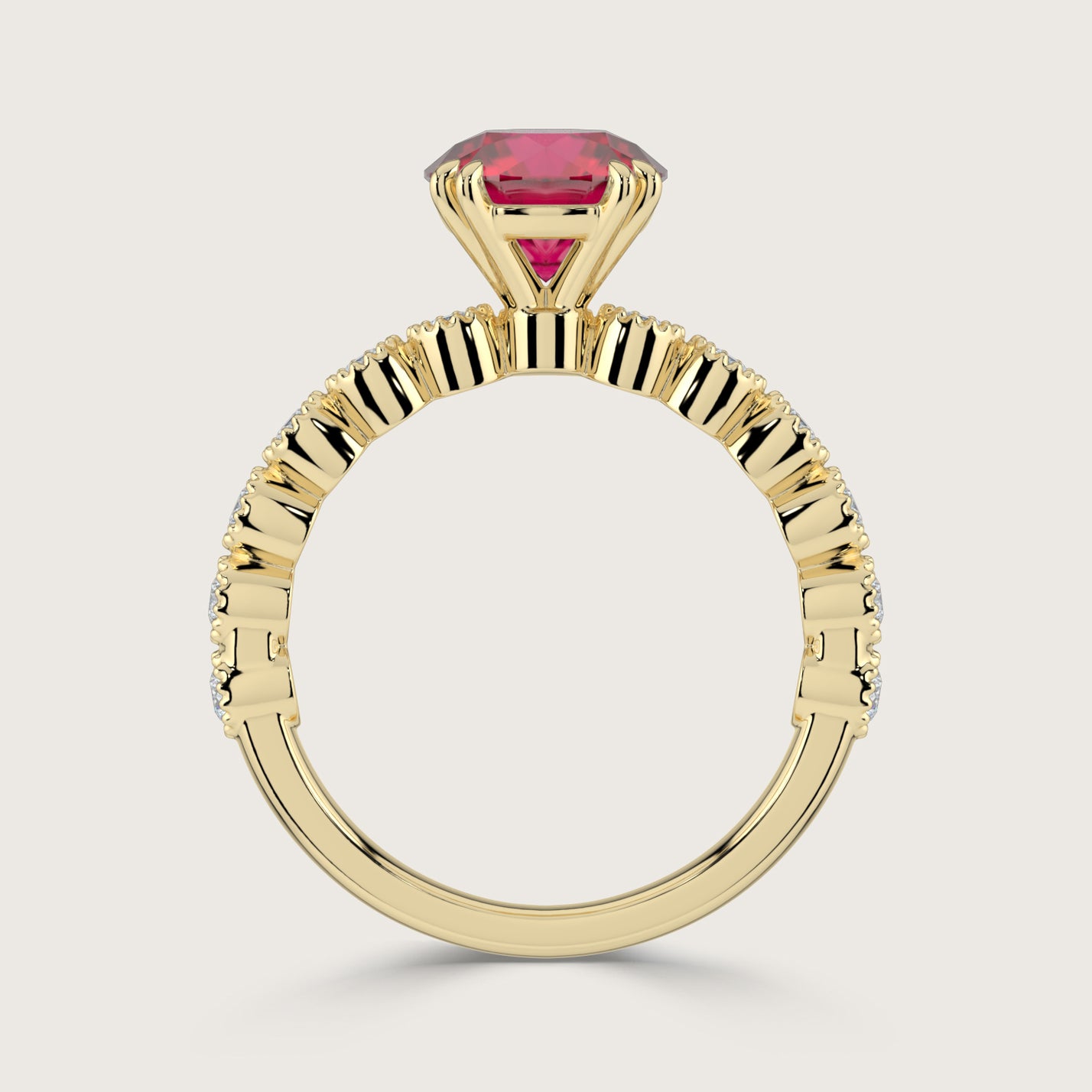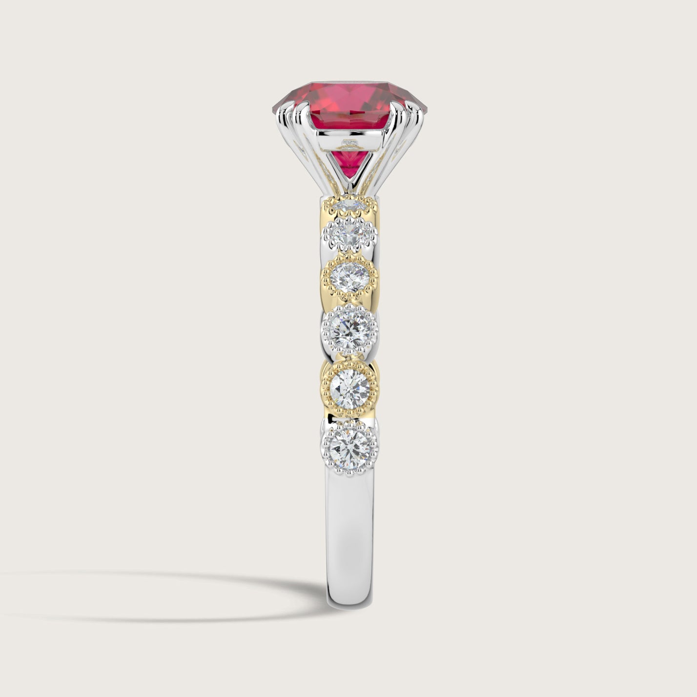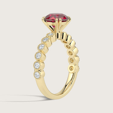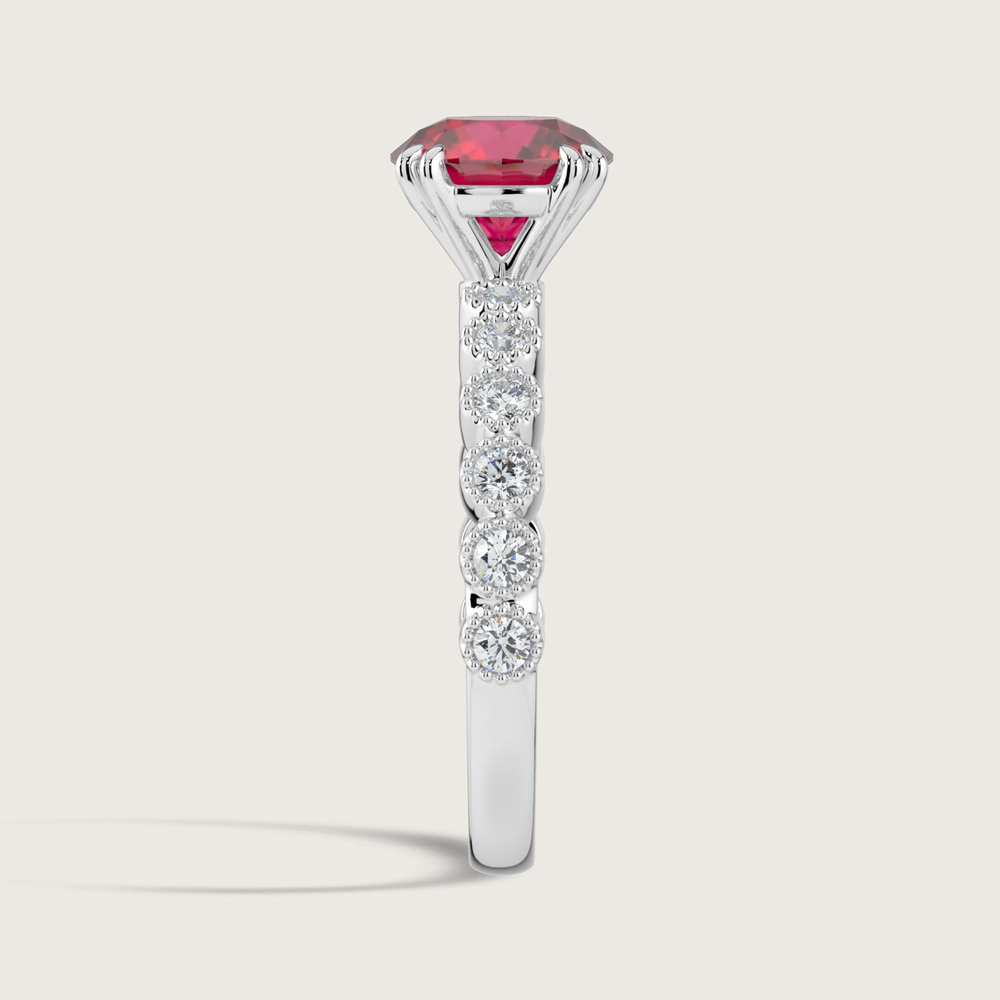 Amelia, Vintage Milgrain Round Brilliant Ruby Ring