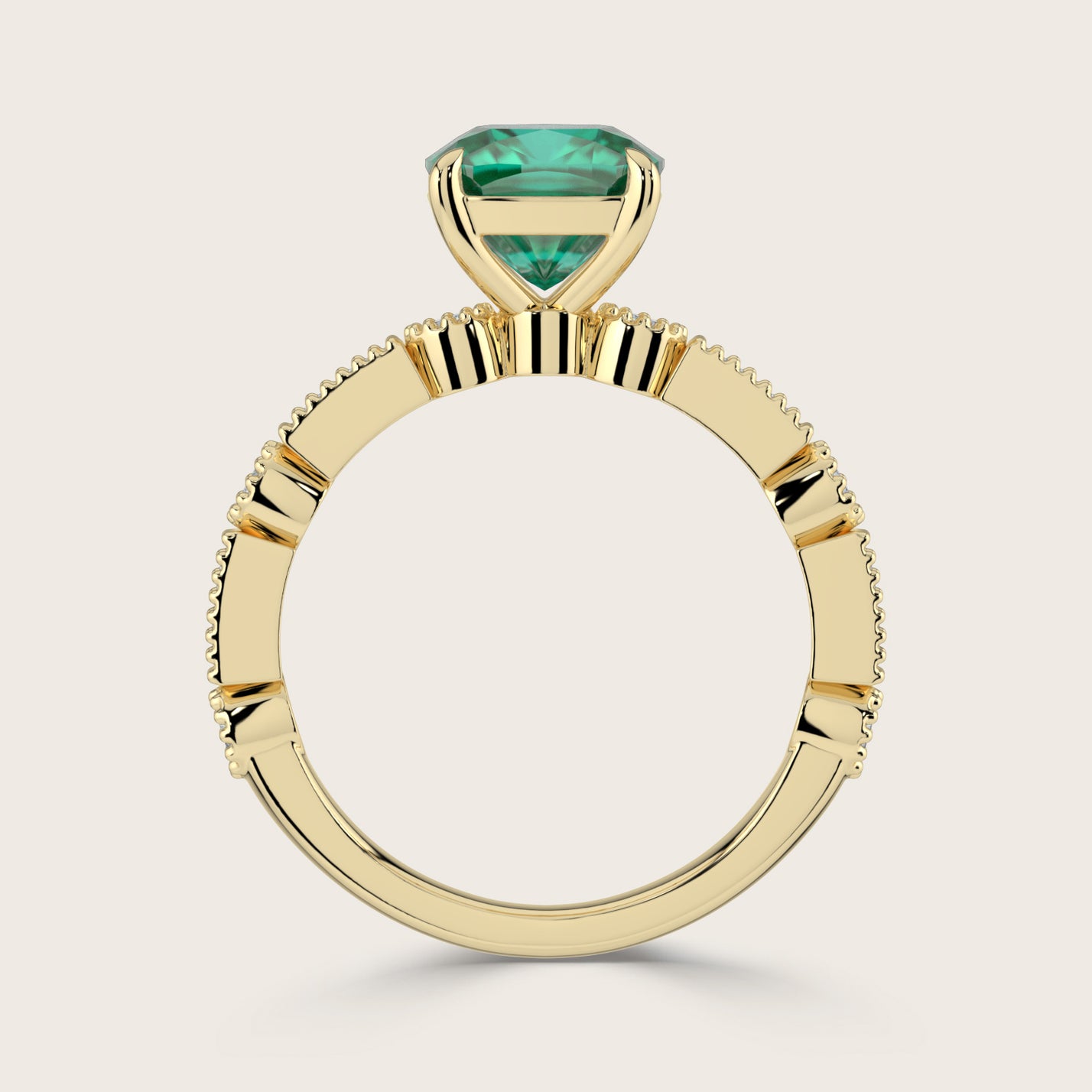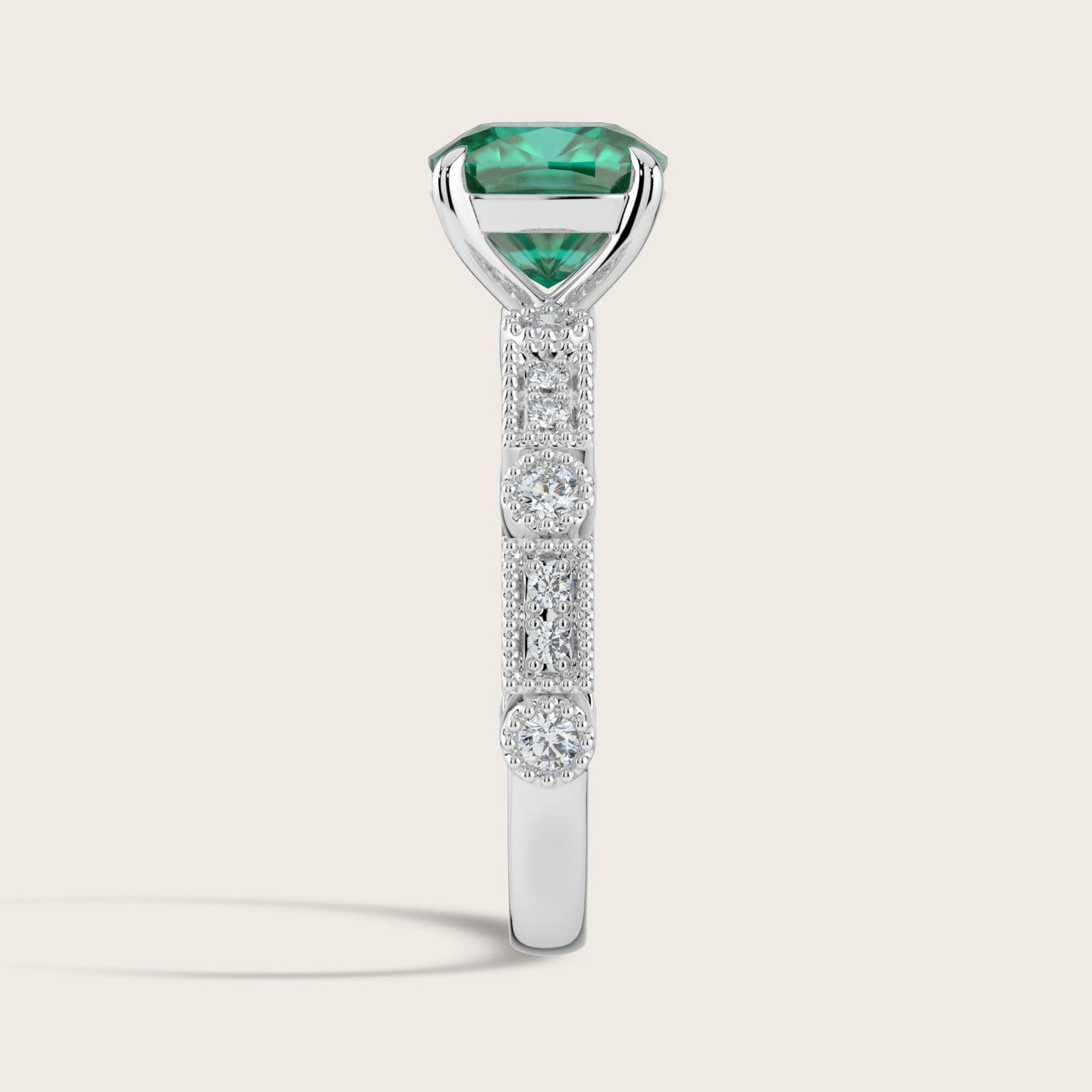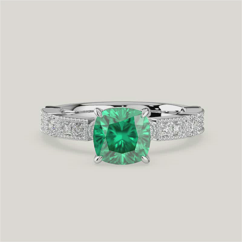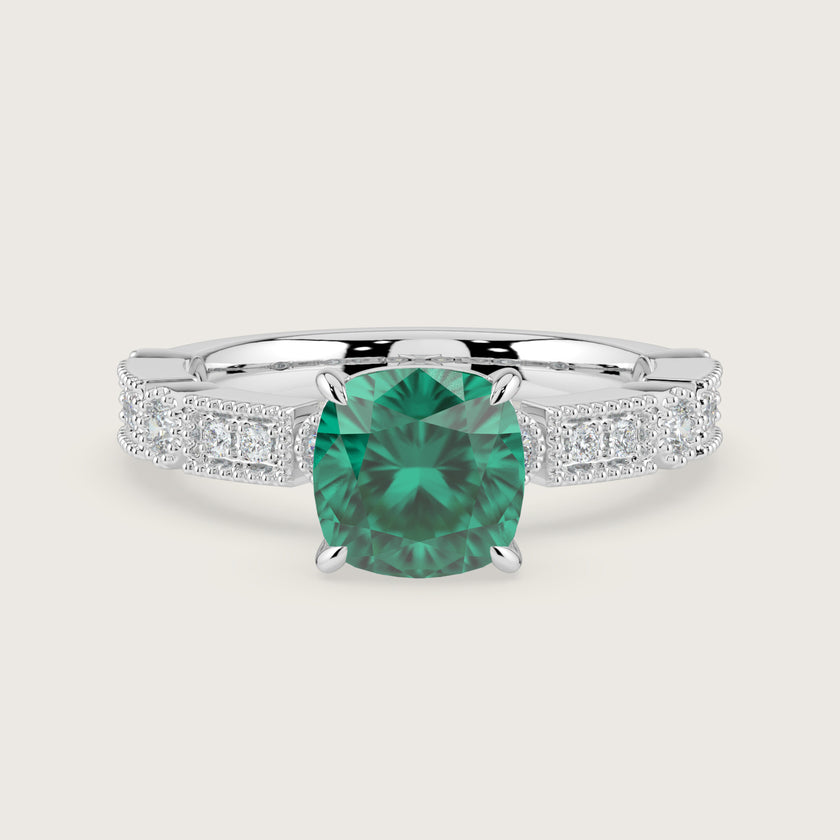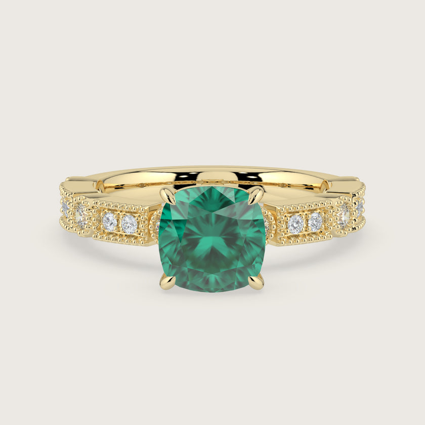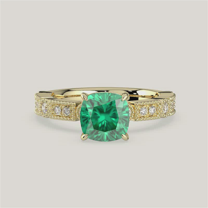 Aurelia, Vintage Milgrain Cushion Cut Emerald Ring