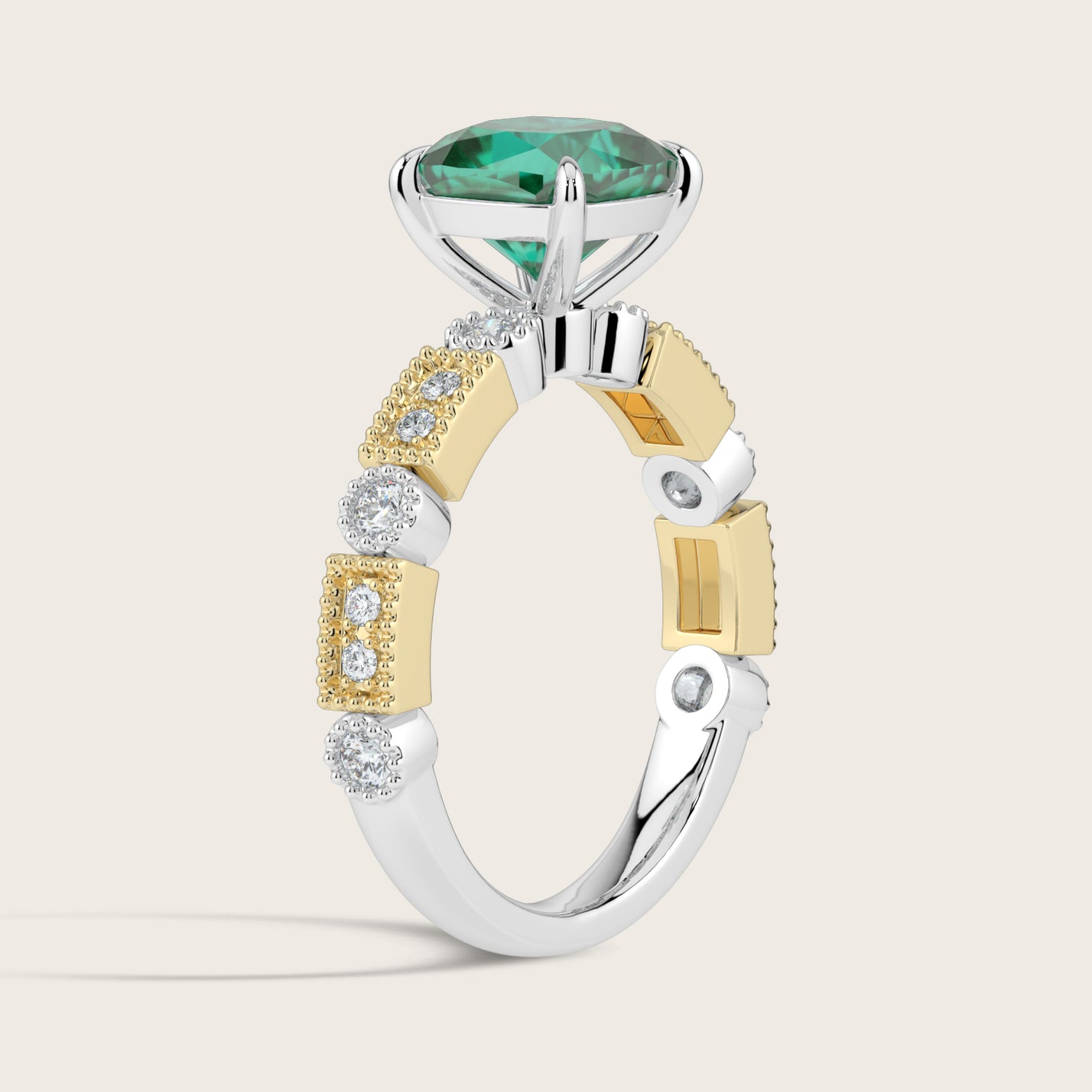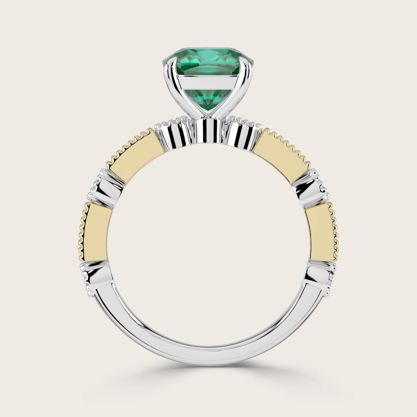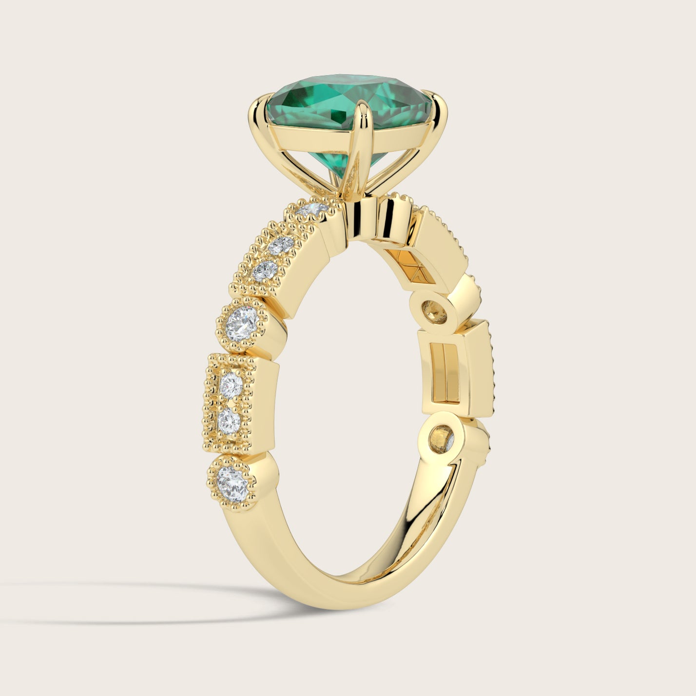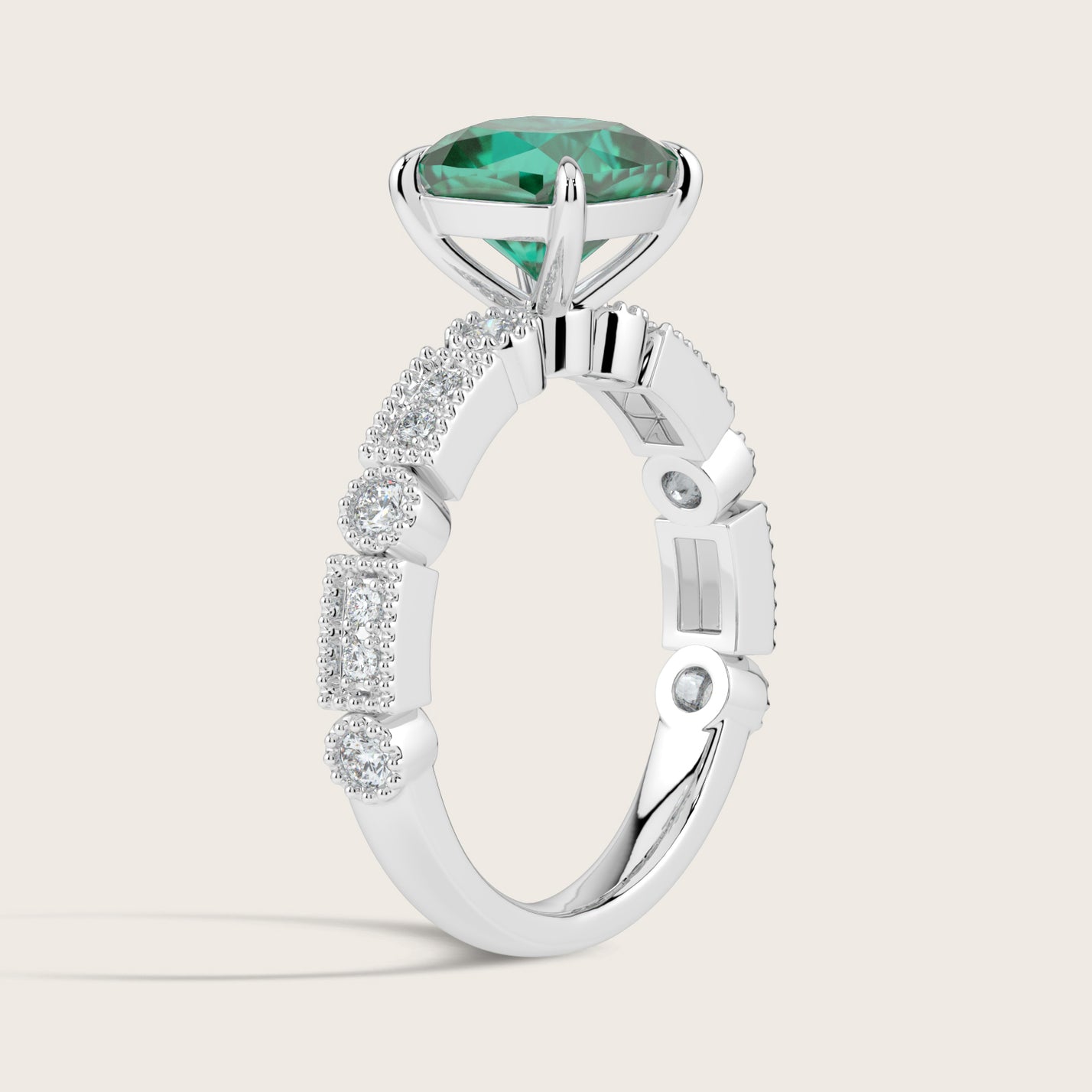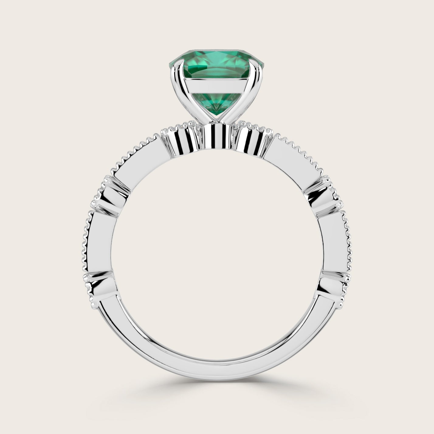 Aurelia, Vintage Milgrain Cushion Cut Emerald Ring