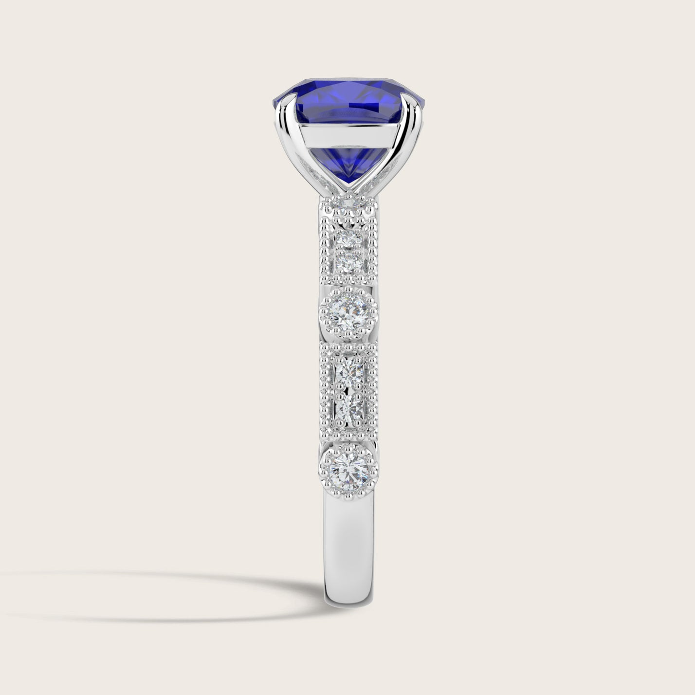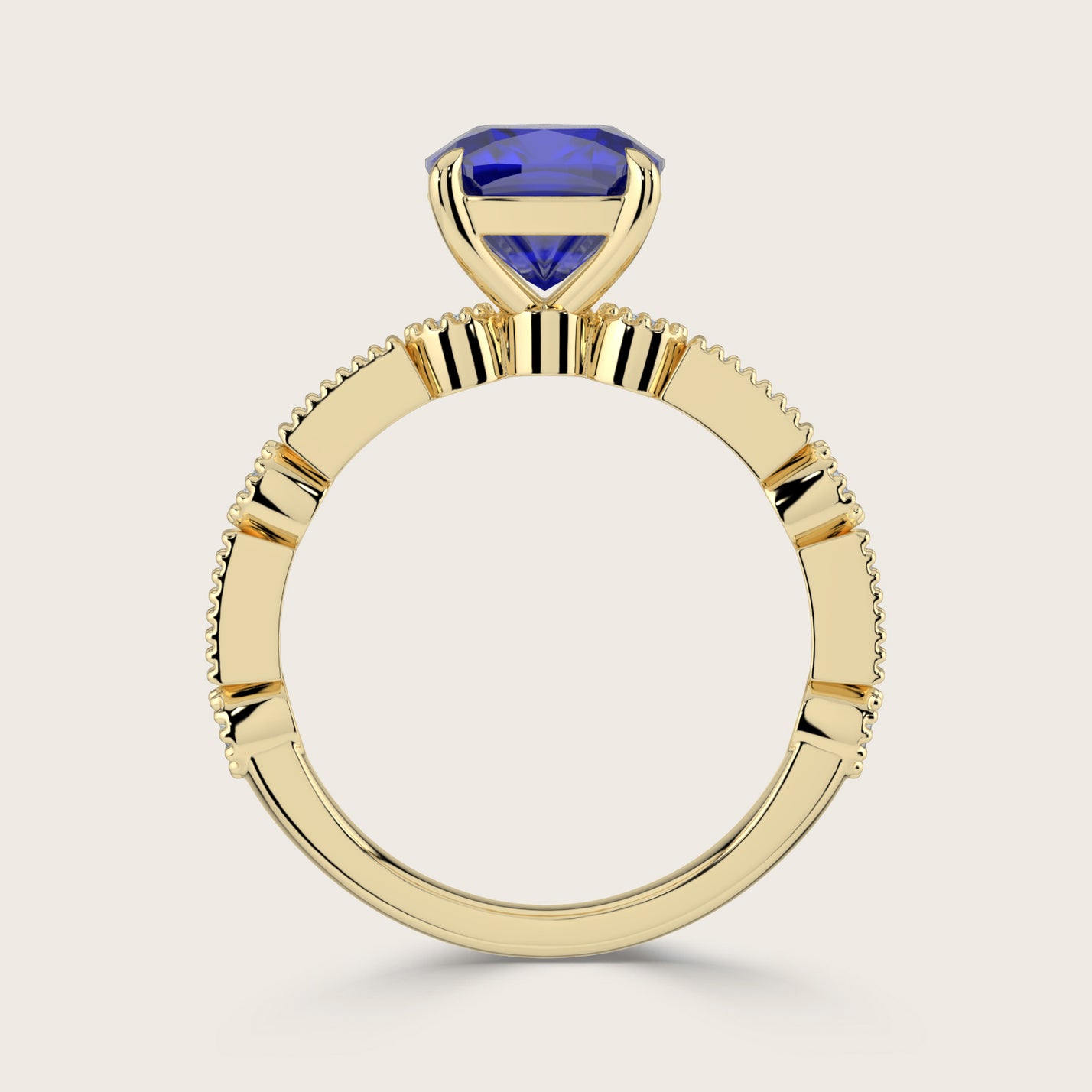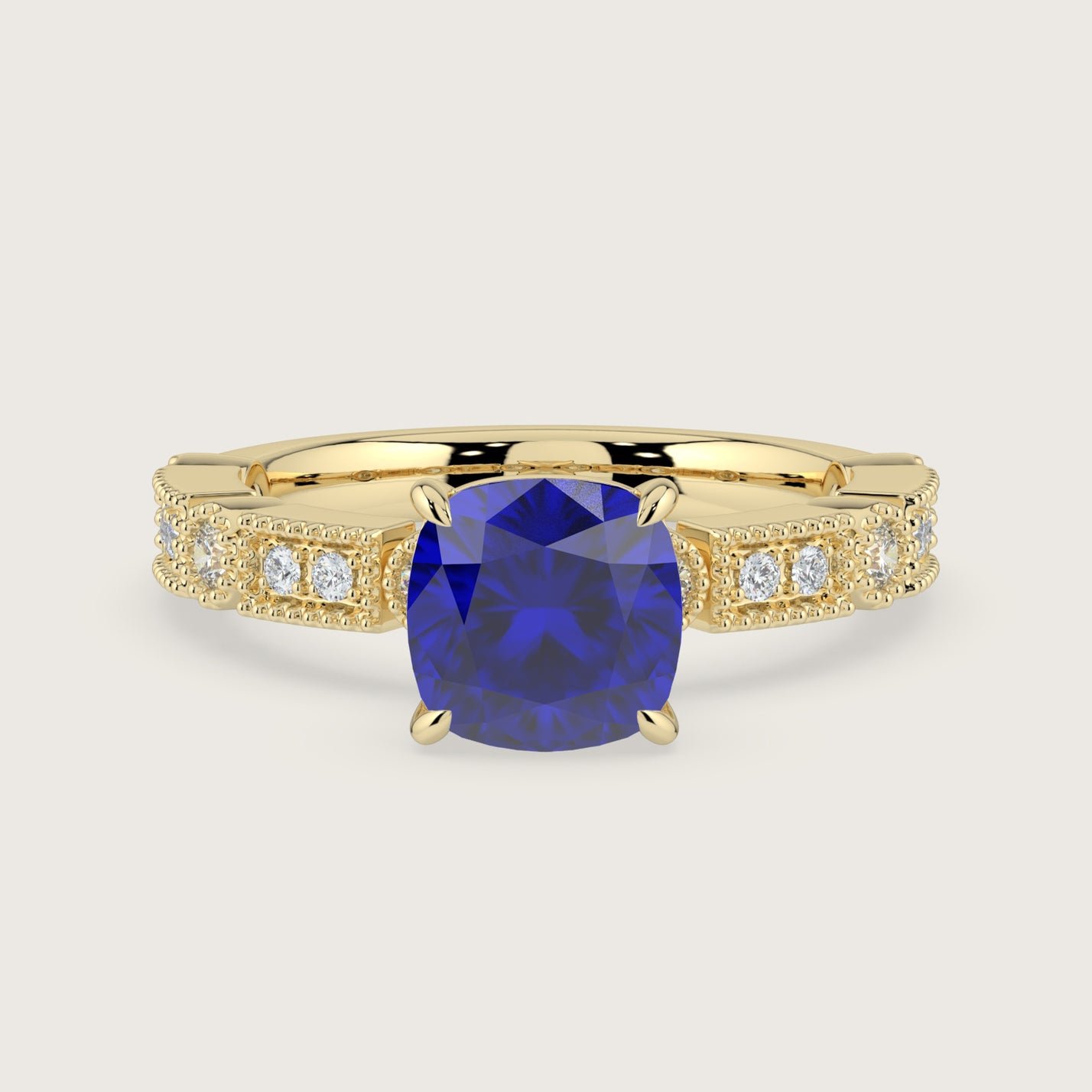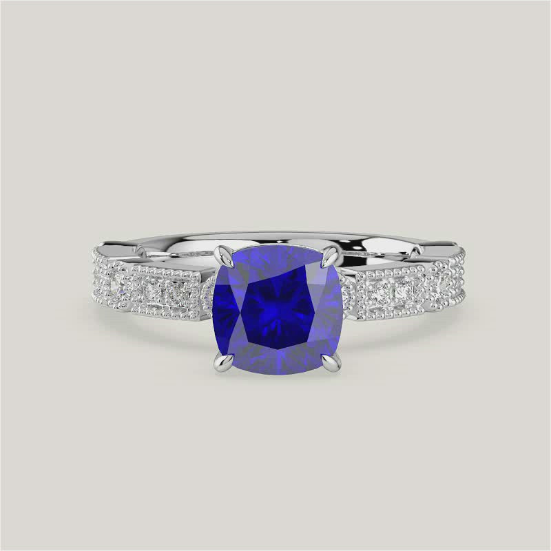 Aurelia, Vintage Milgrain Cushion Cut Sapphire Ring