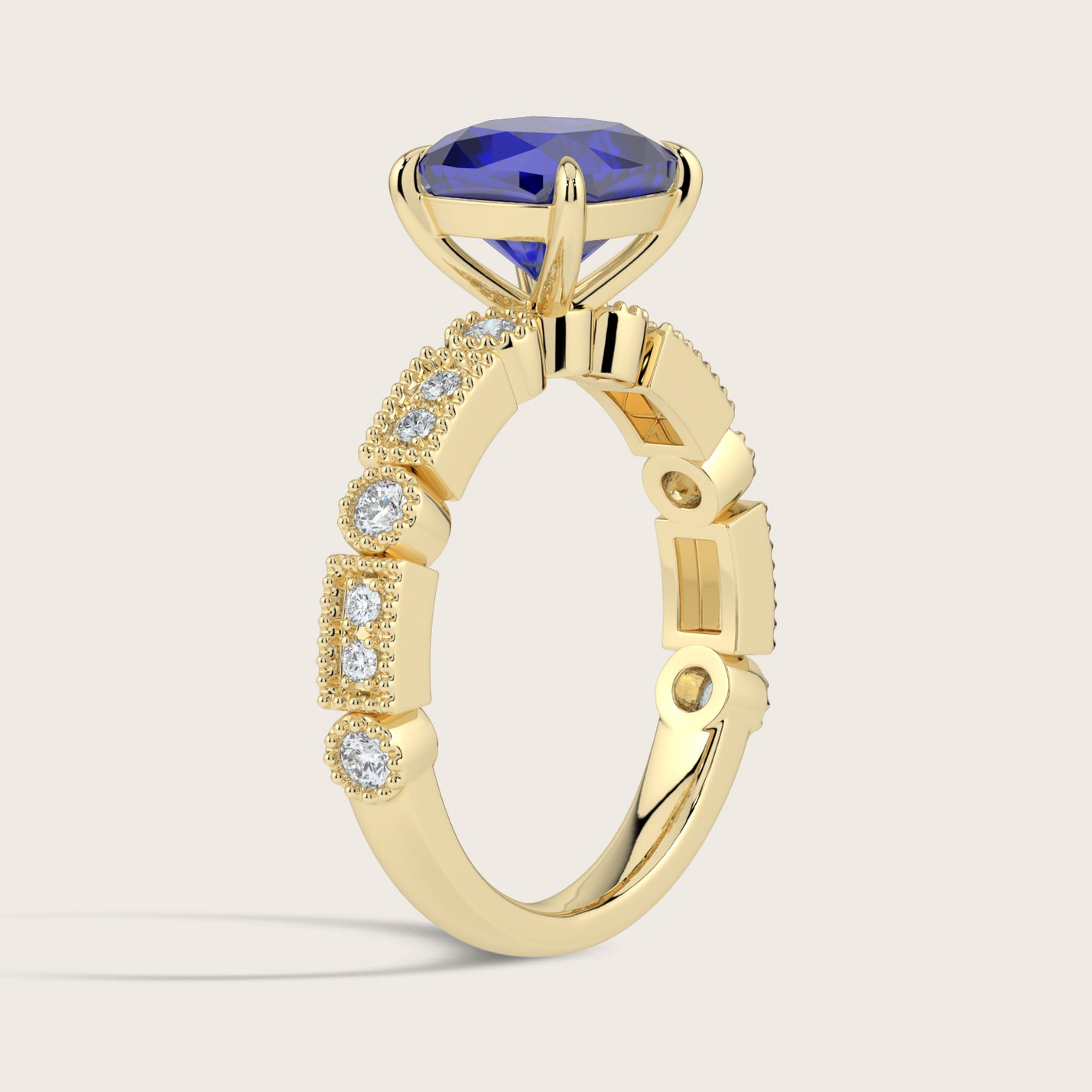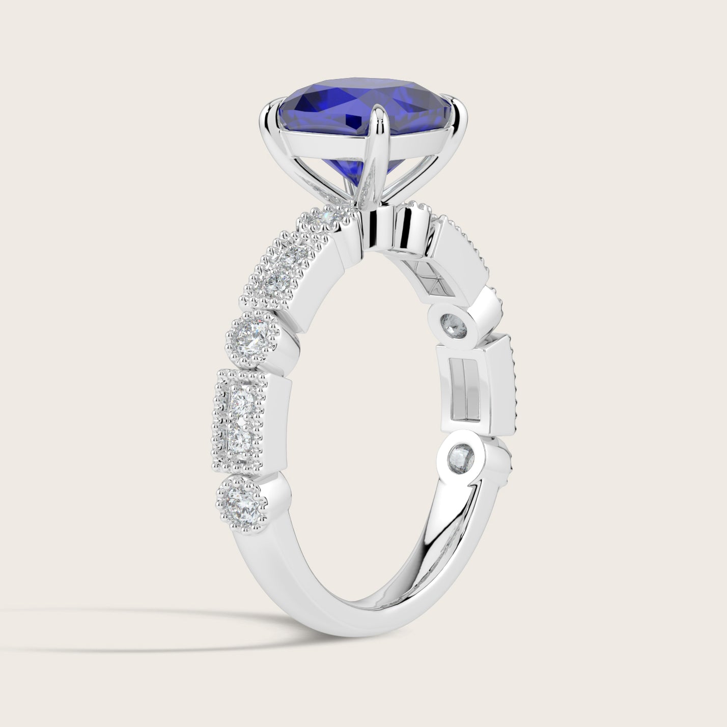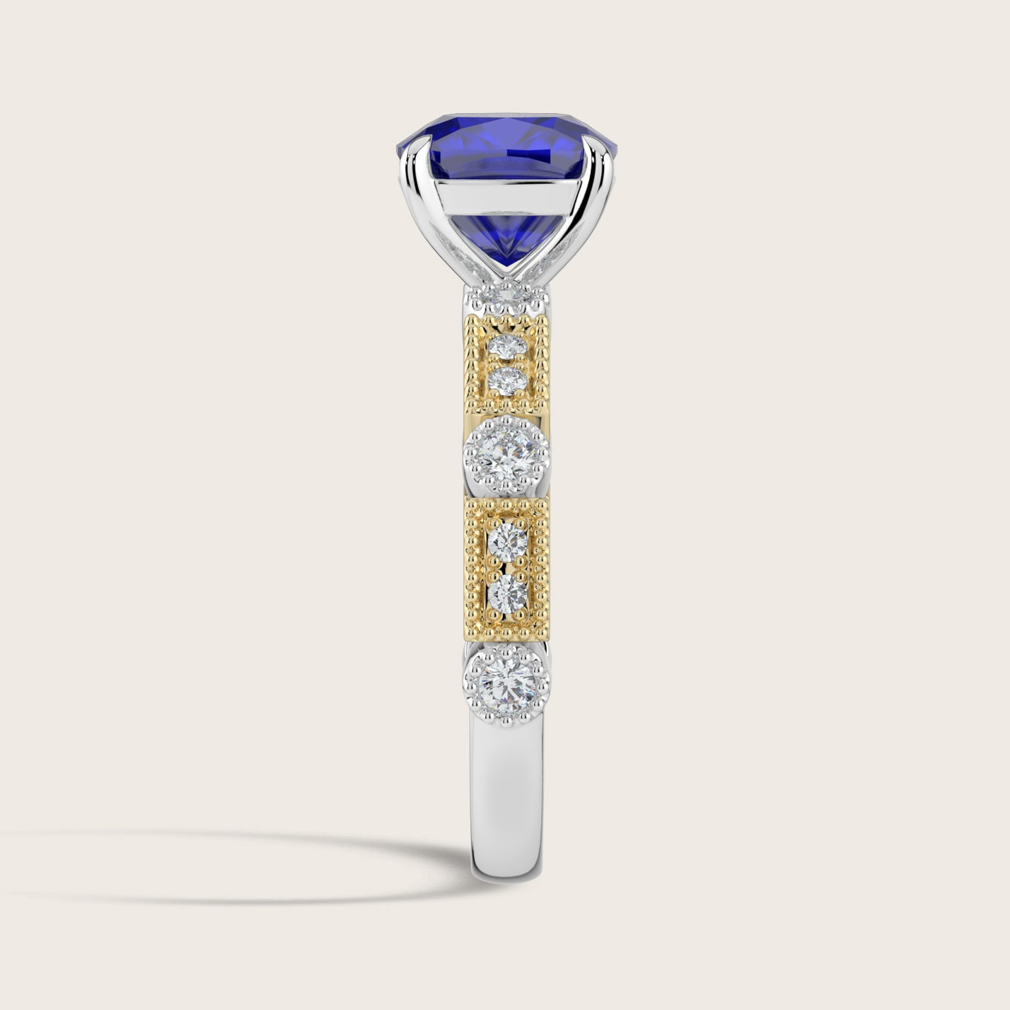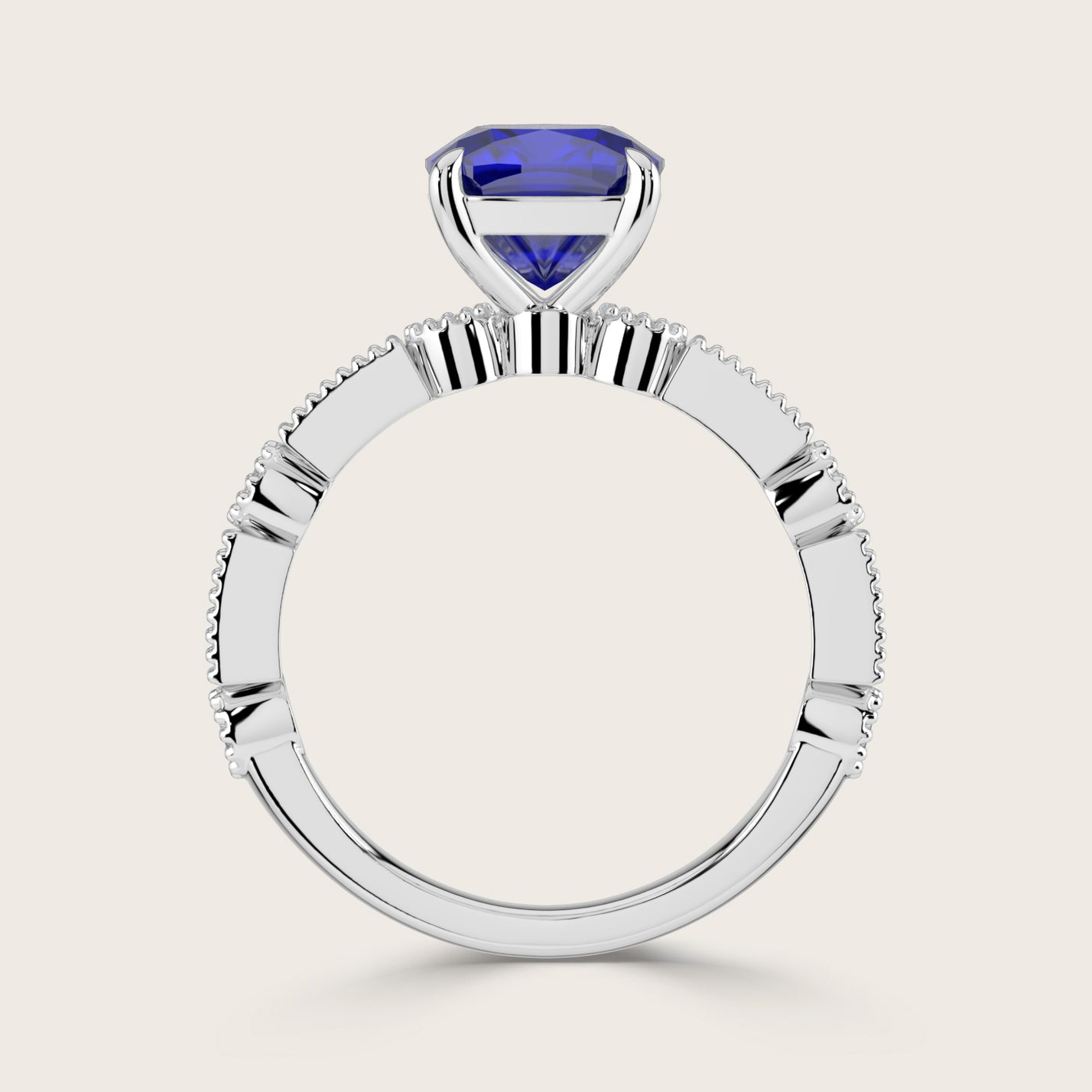 Aurelia, Vintage Milgrain Cushion Cut Sapphire Ring