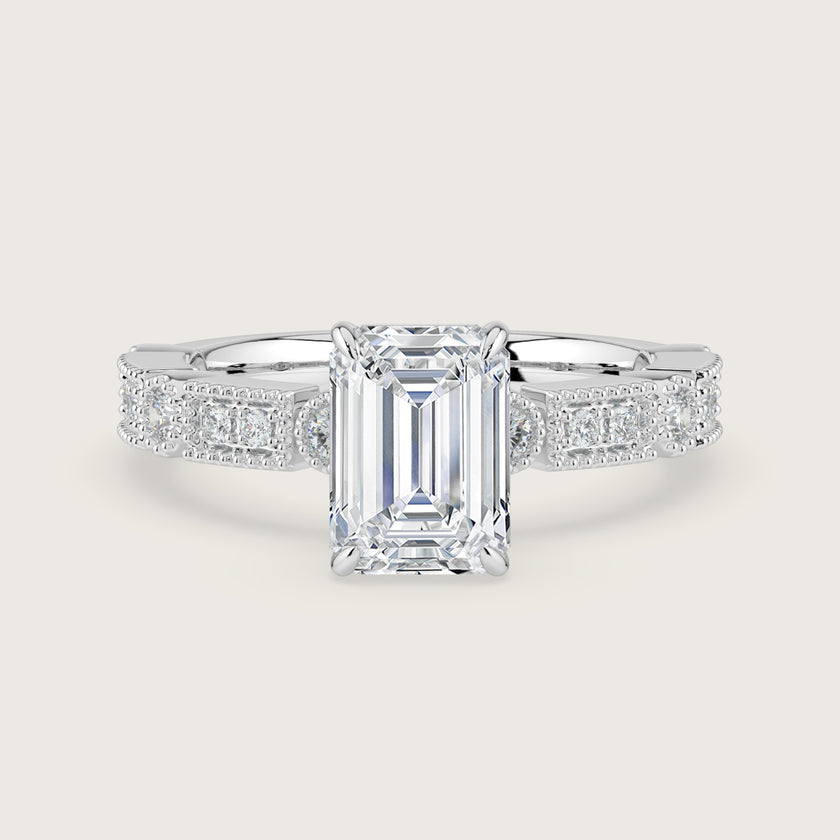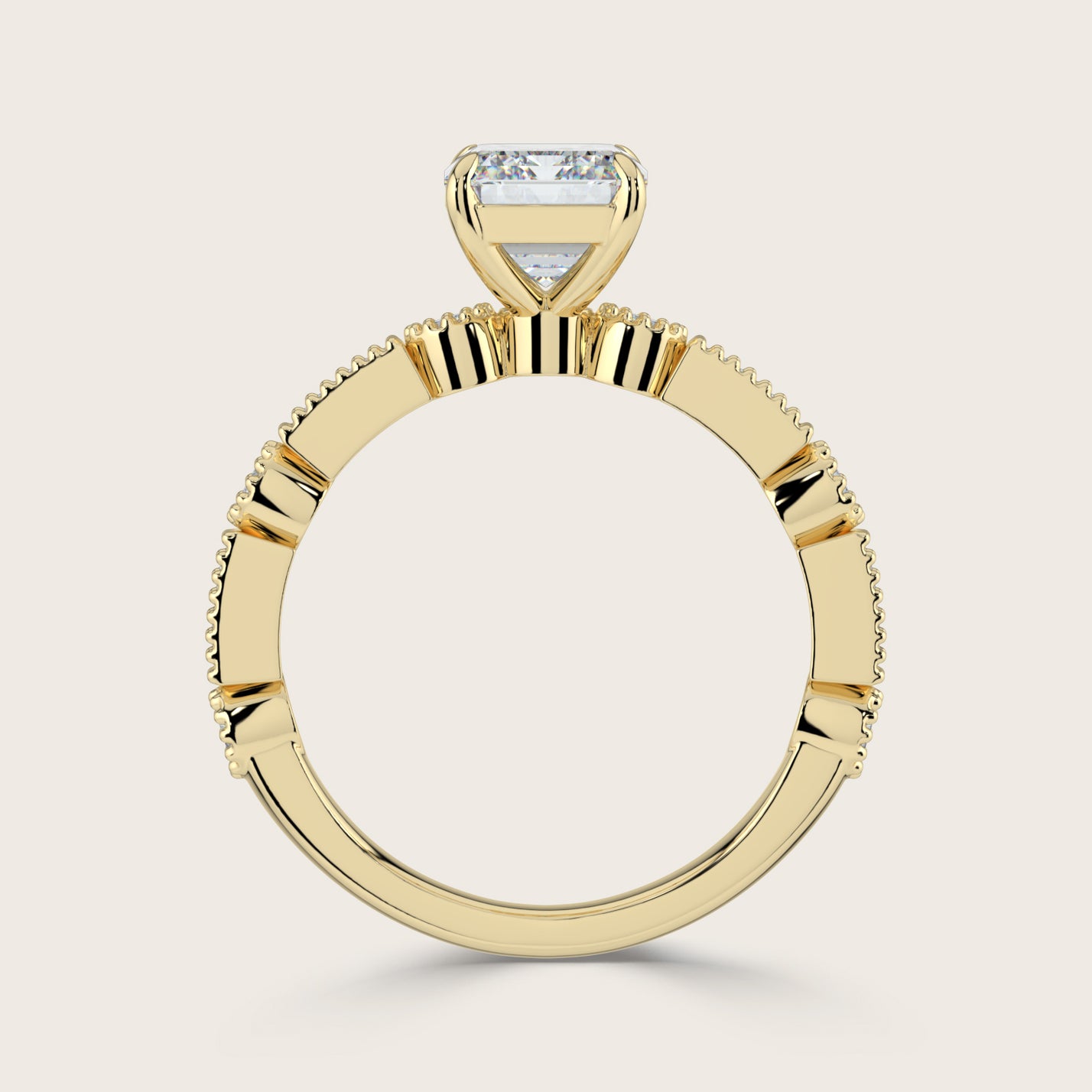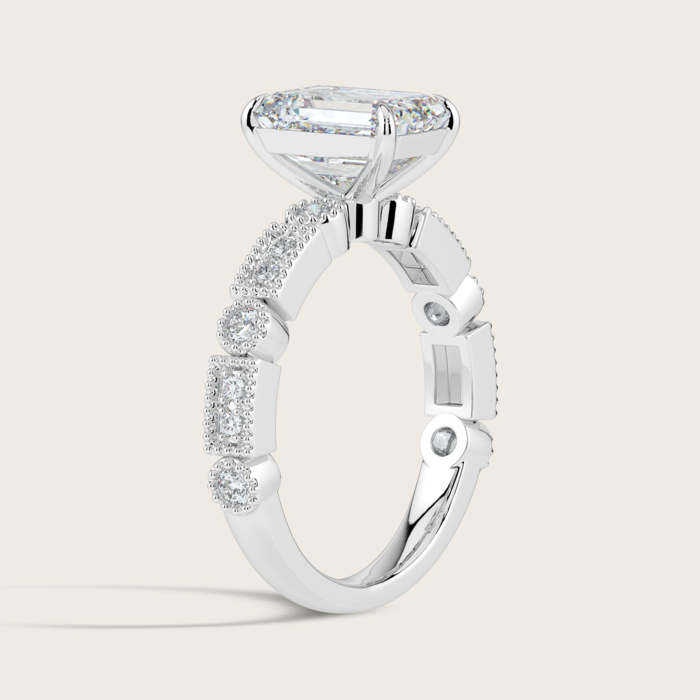 Aurelia, Vintage Milgrain Emerald Cut Diamond Ring