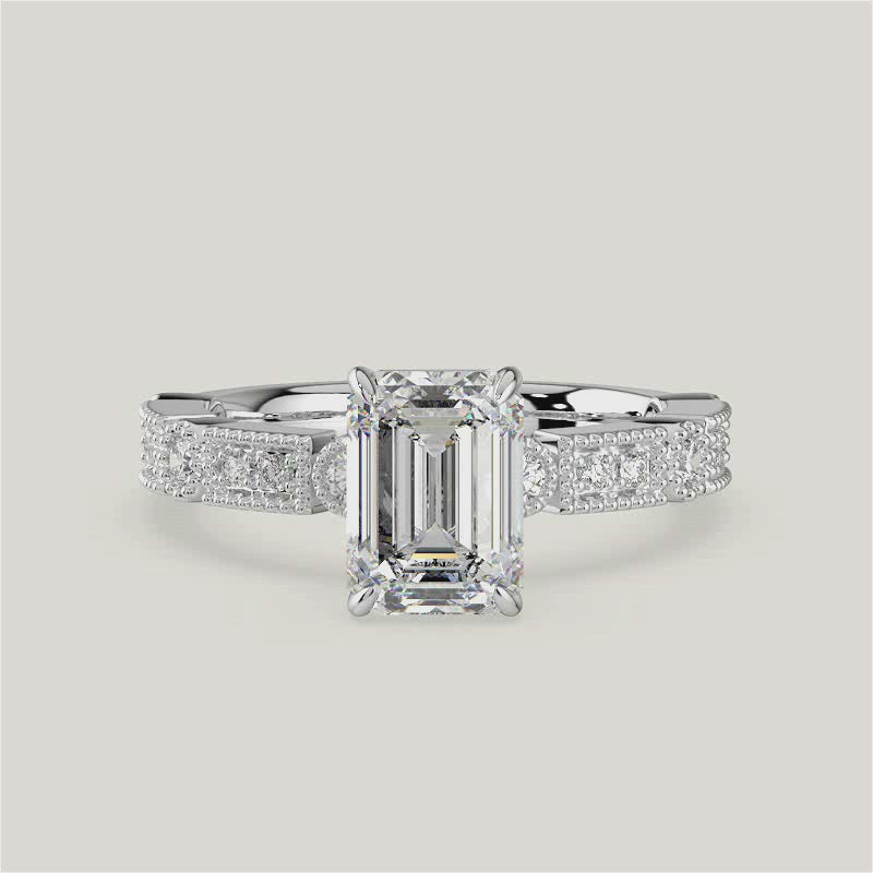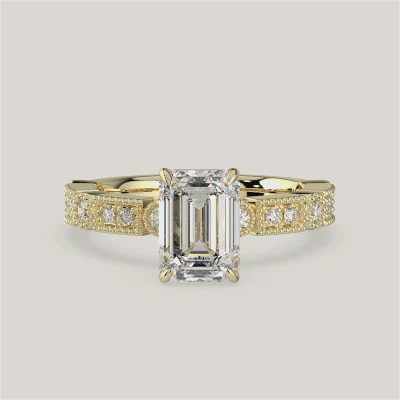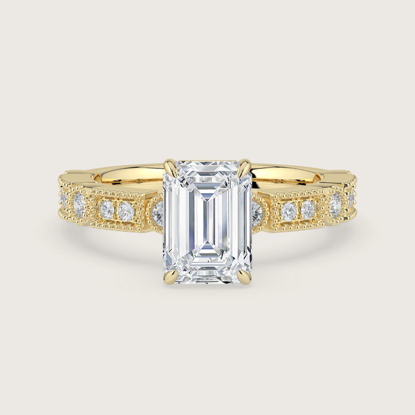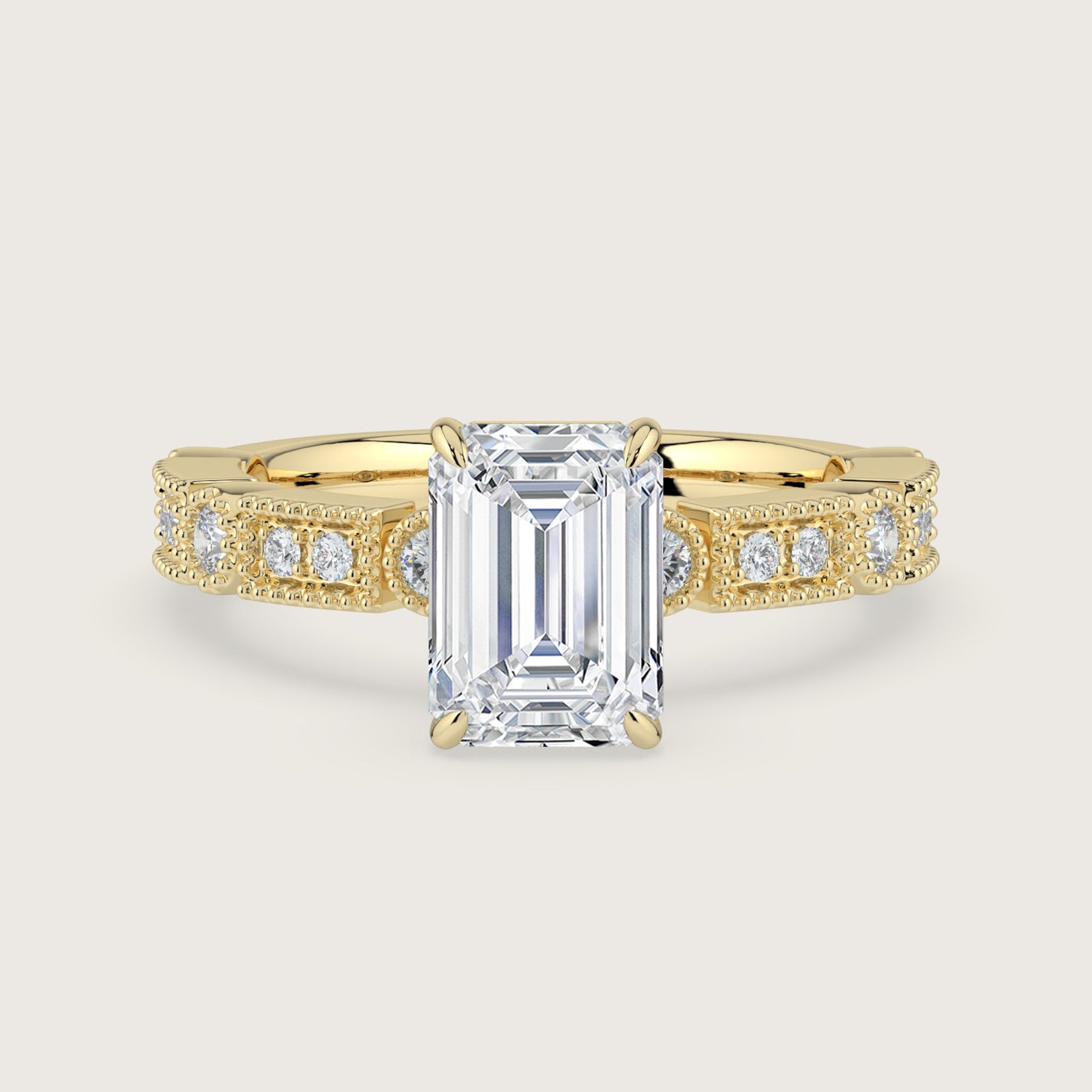 Aurelia, Vintage Milgrain Emerald Cut Diamond Ring