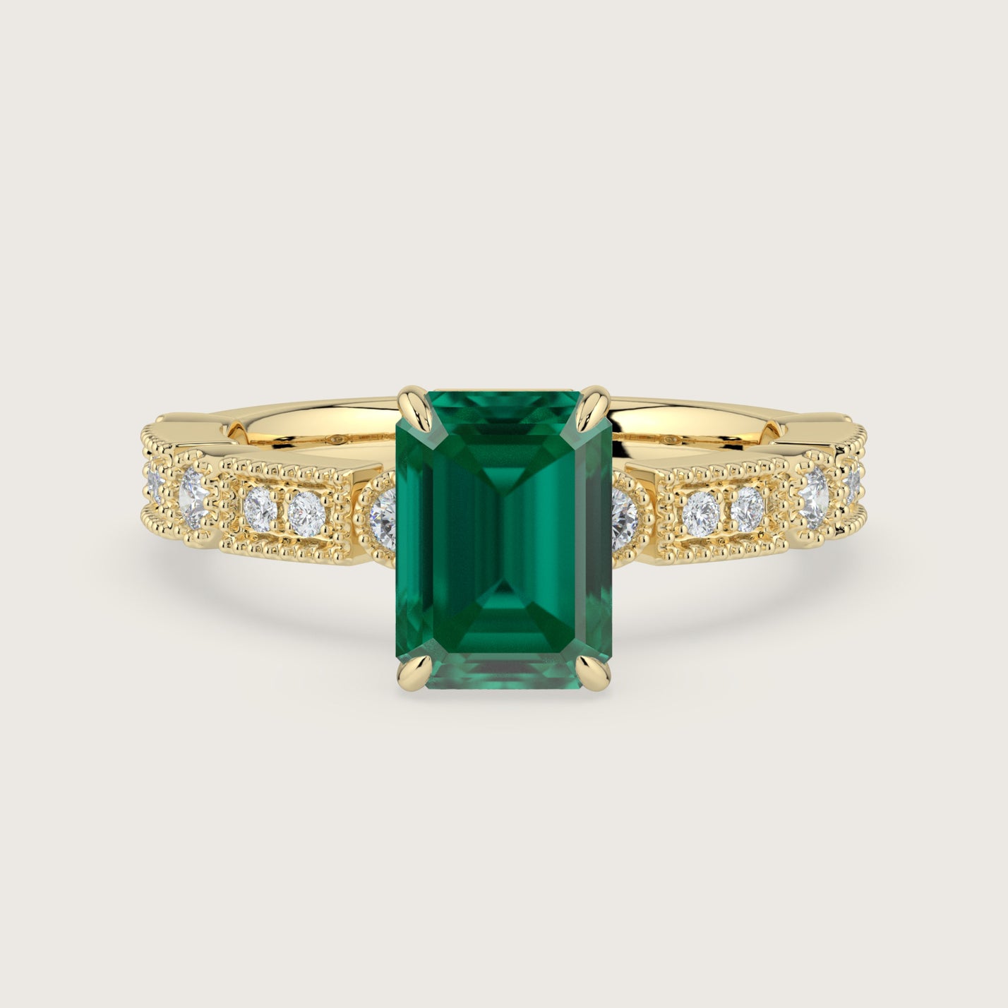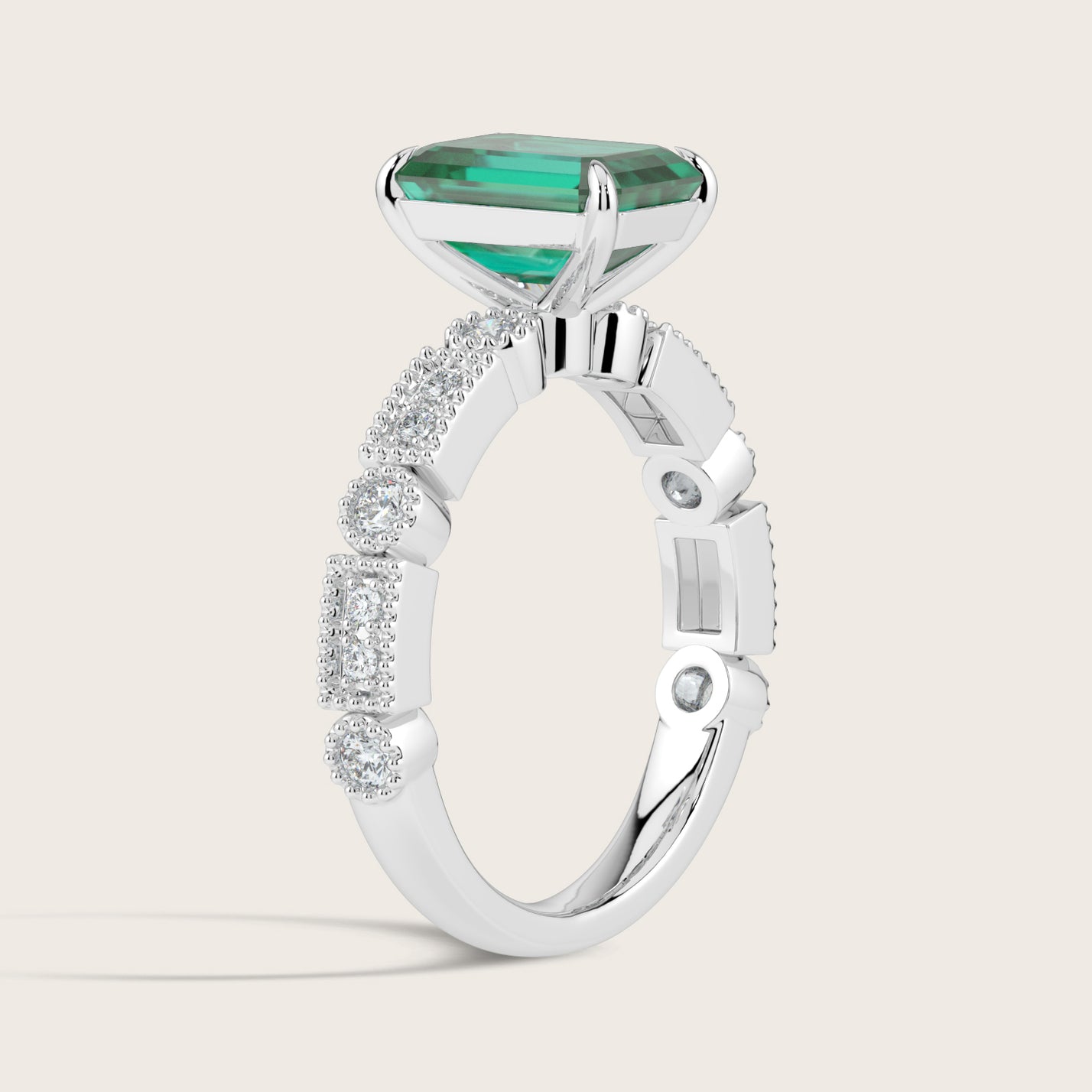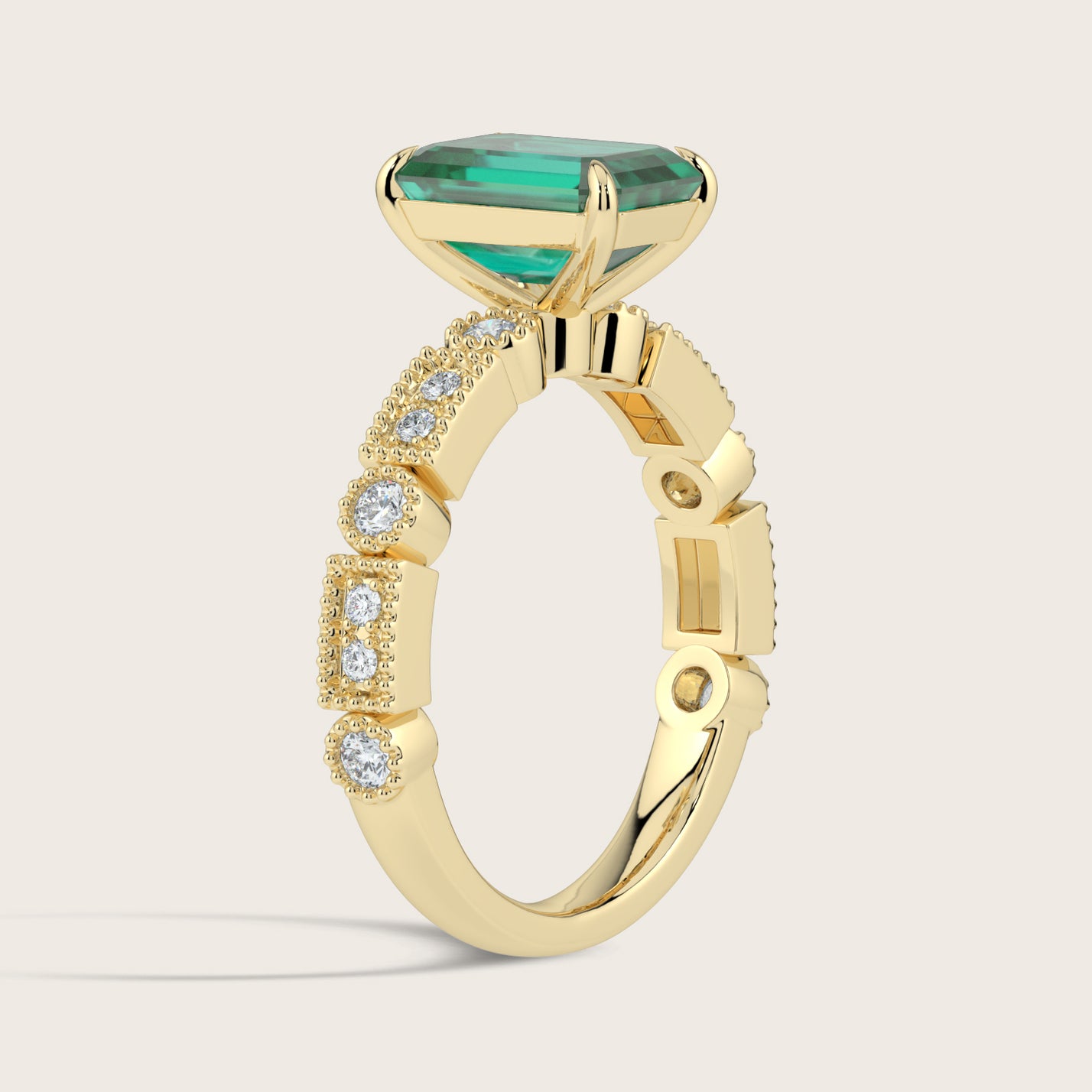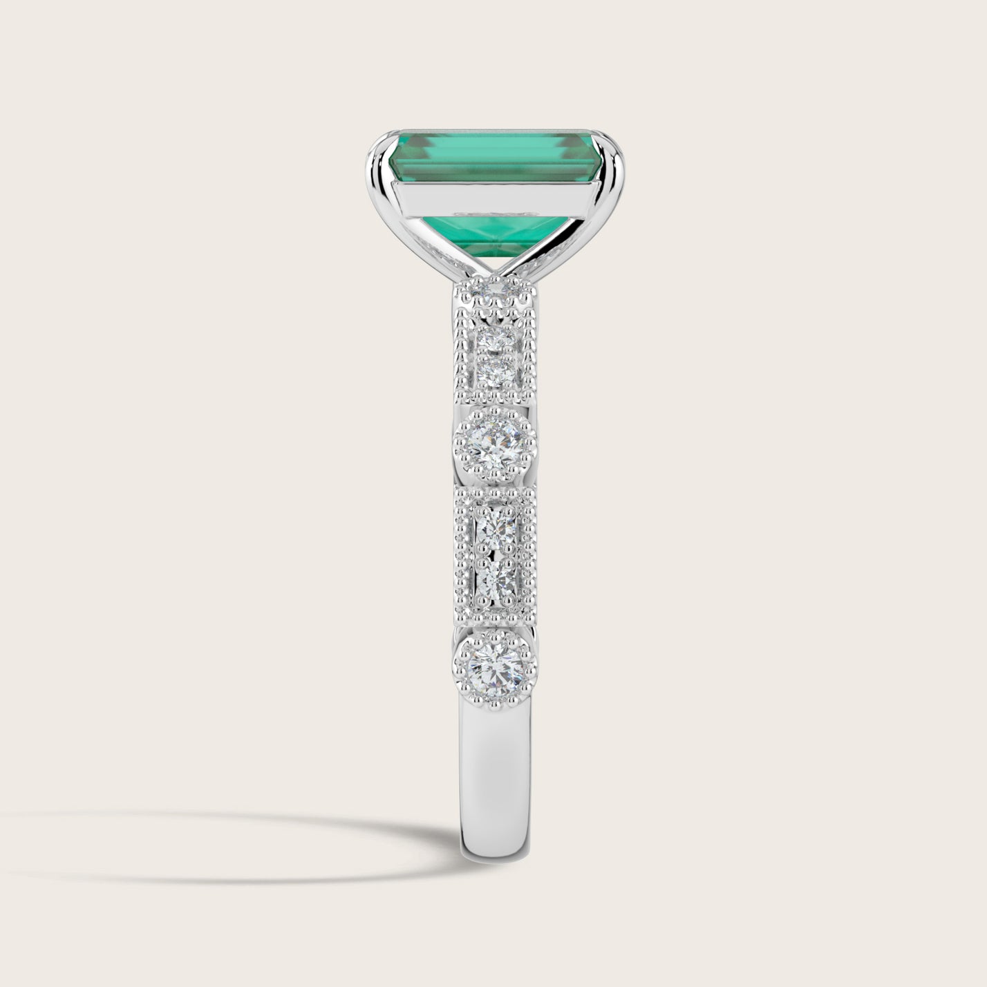 Aurelia, Vintage Milgrain Emerald Cut Emerald Ring