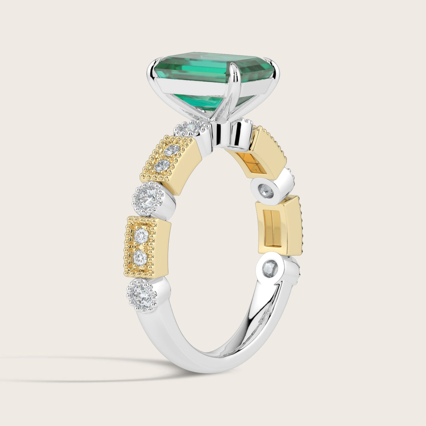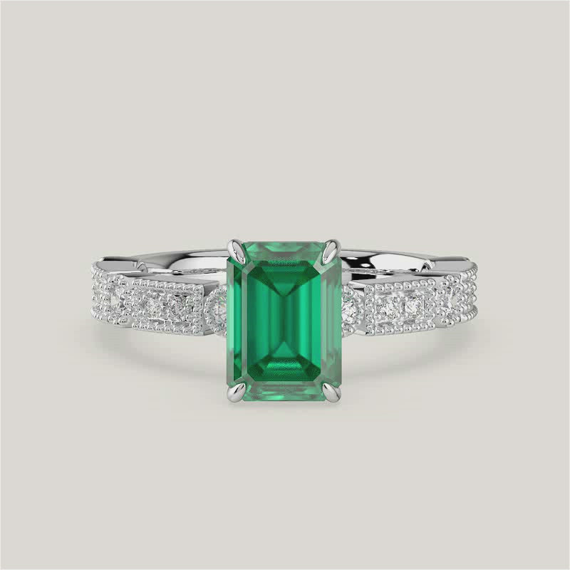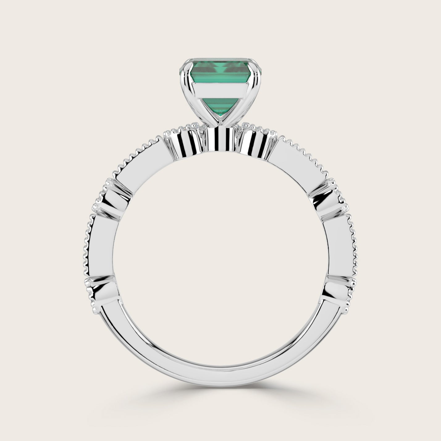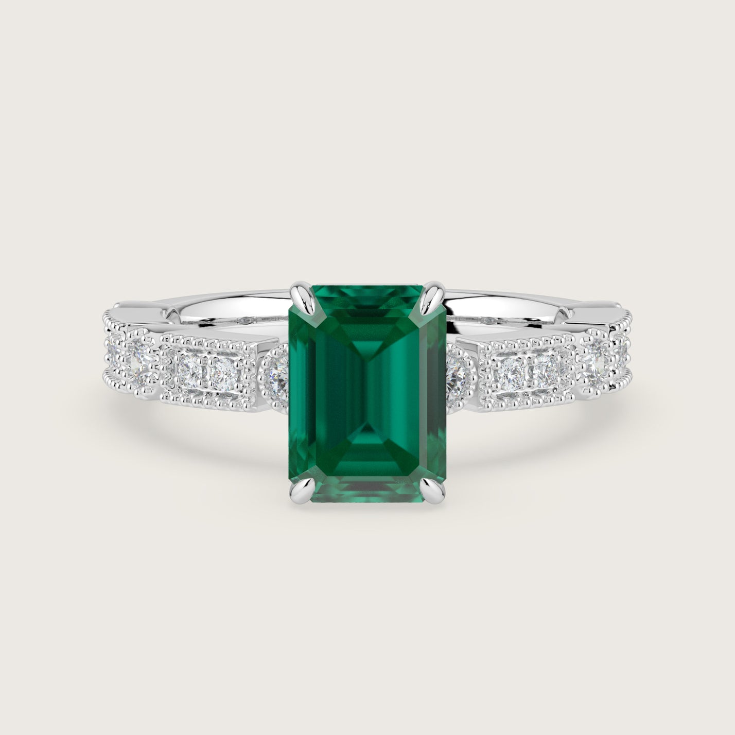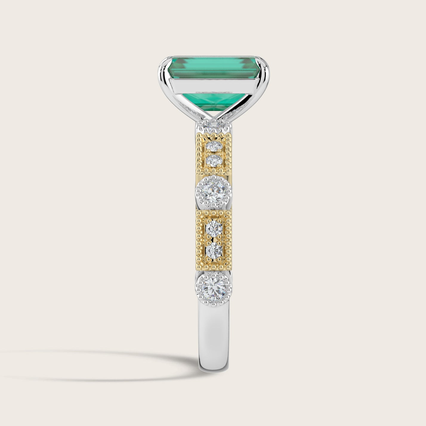 Aurelia, Vintage Milgrain Emerald Cut Emerald Ring