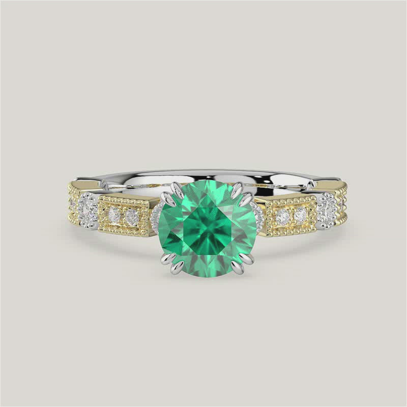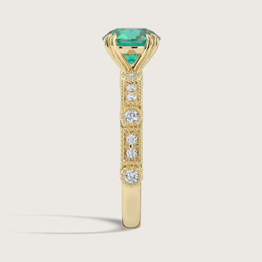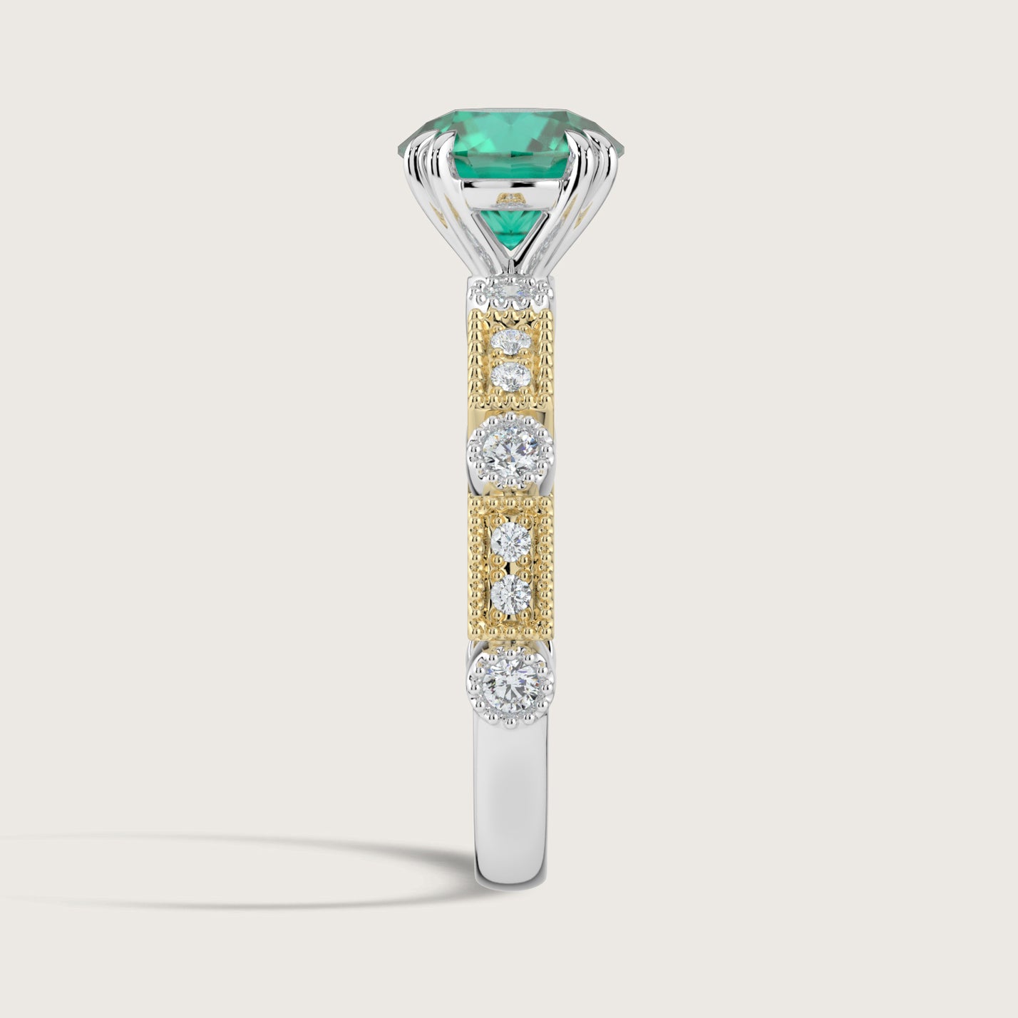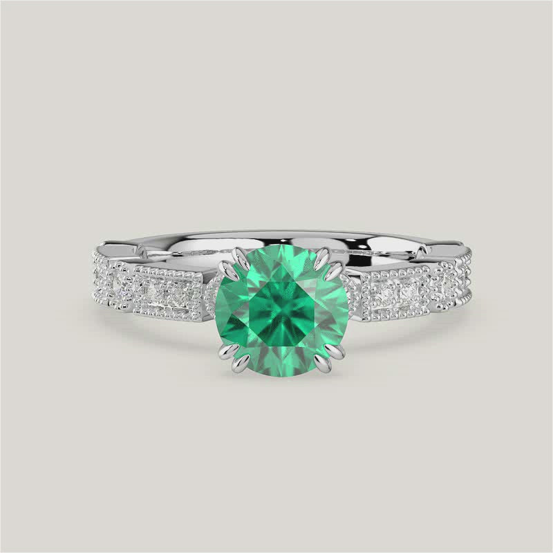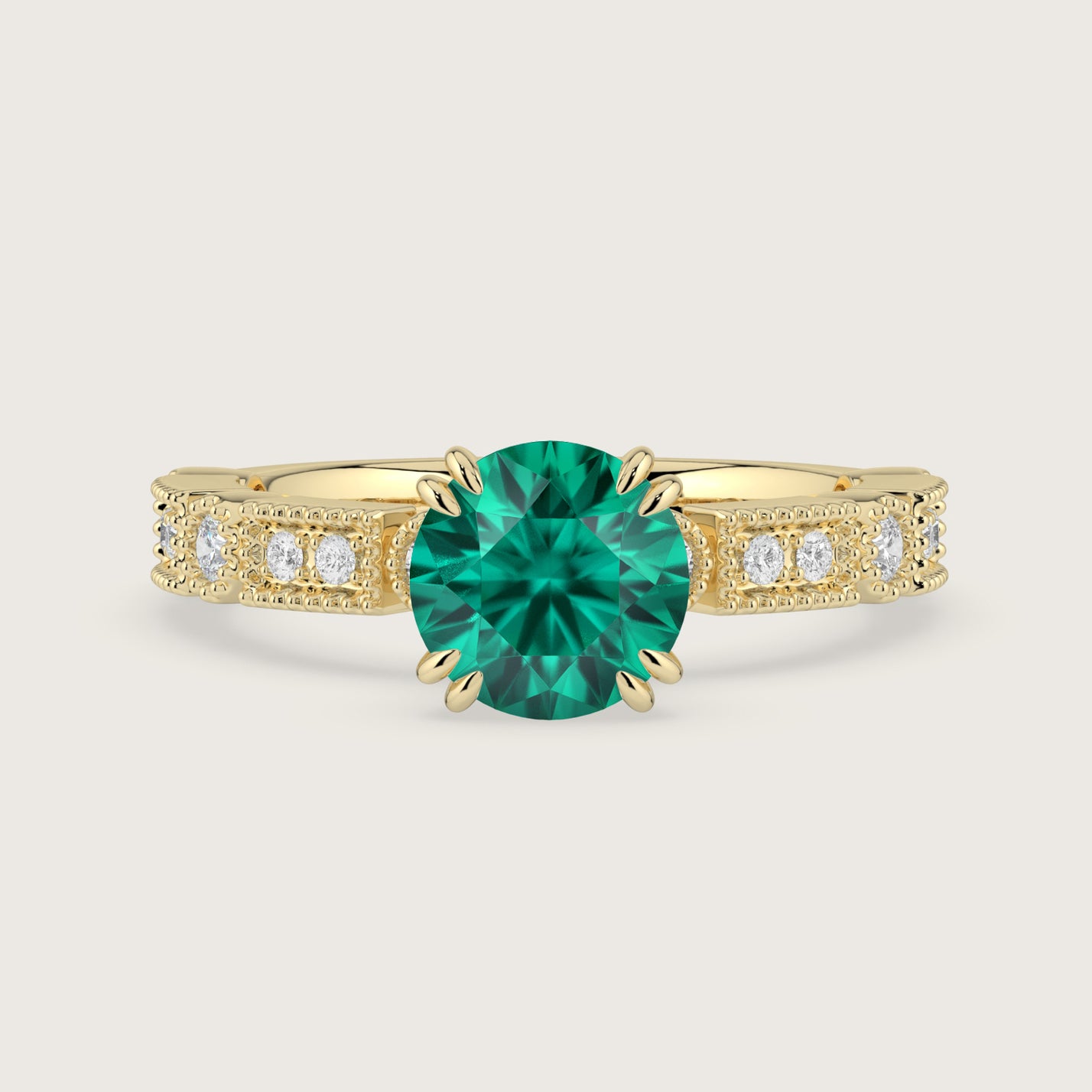 Aurelia, Vintage Milgrain Round Brilliant Emerald Ring