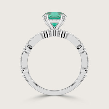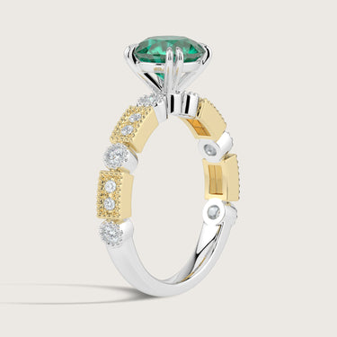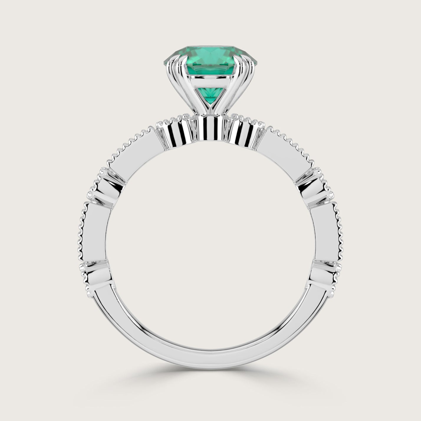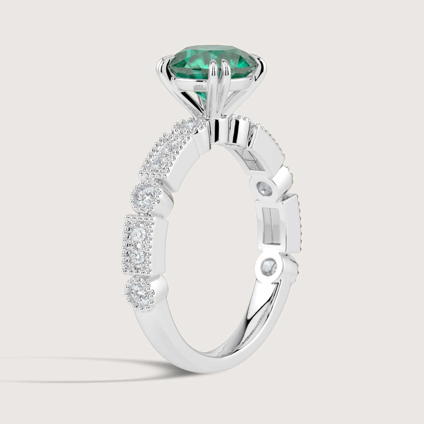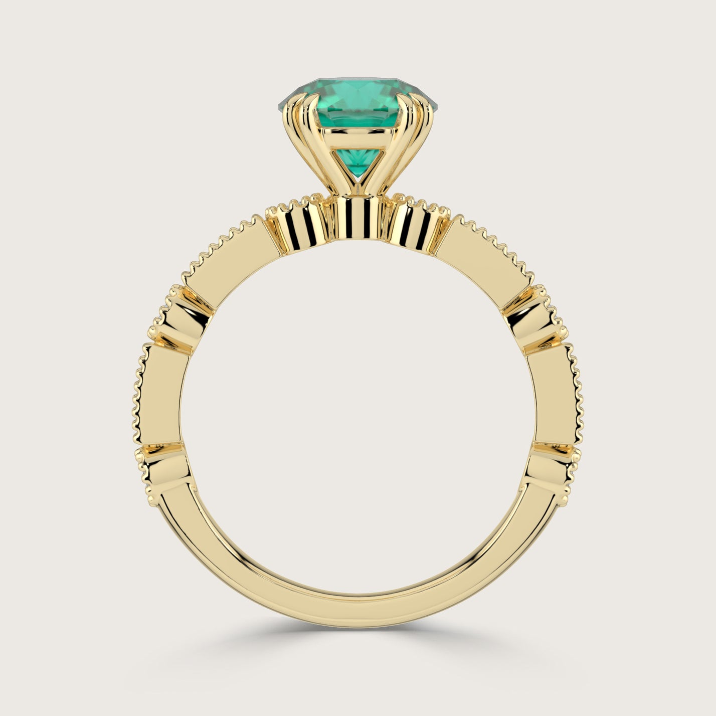 Aurelia, Vintage Milgrain Round Brilliant Emerald Ring
