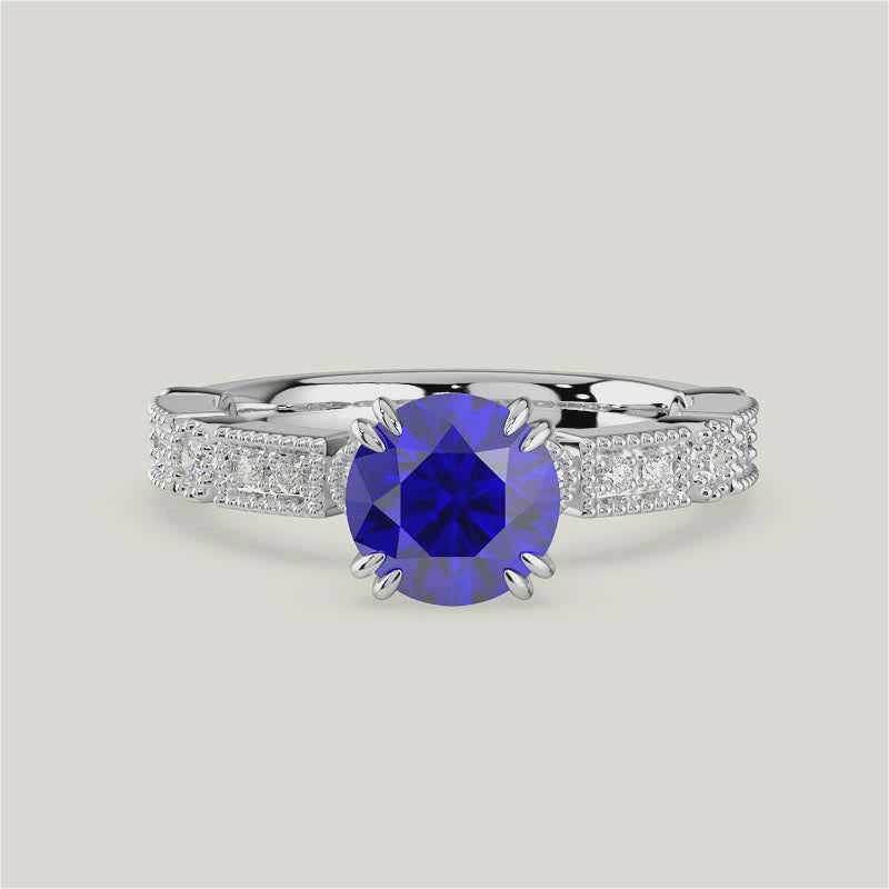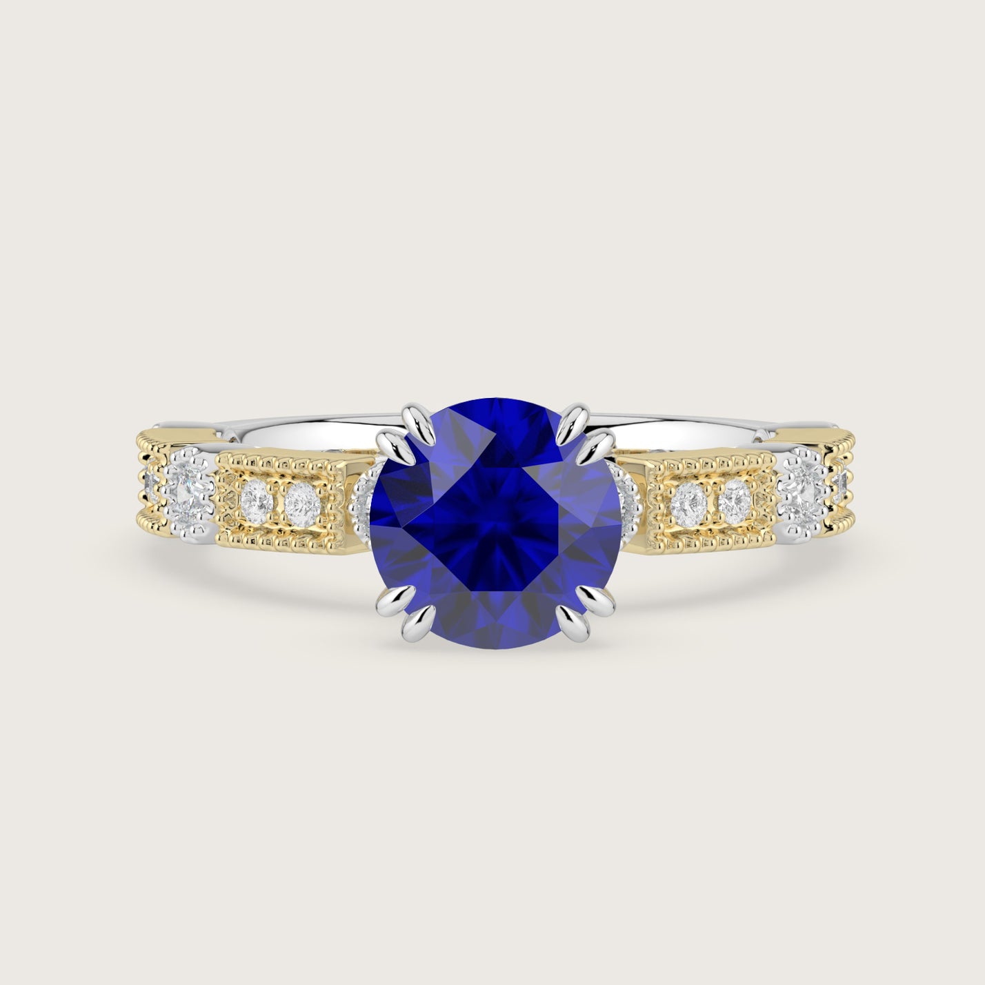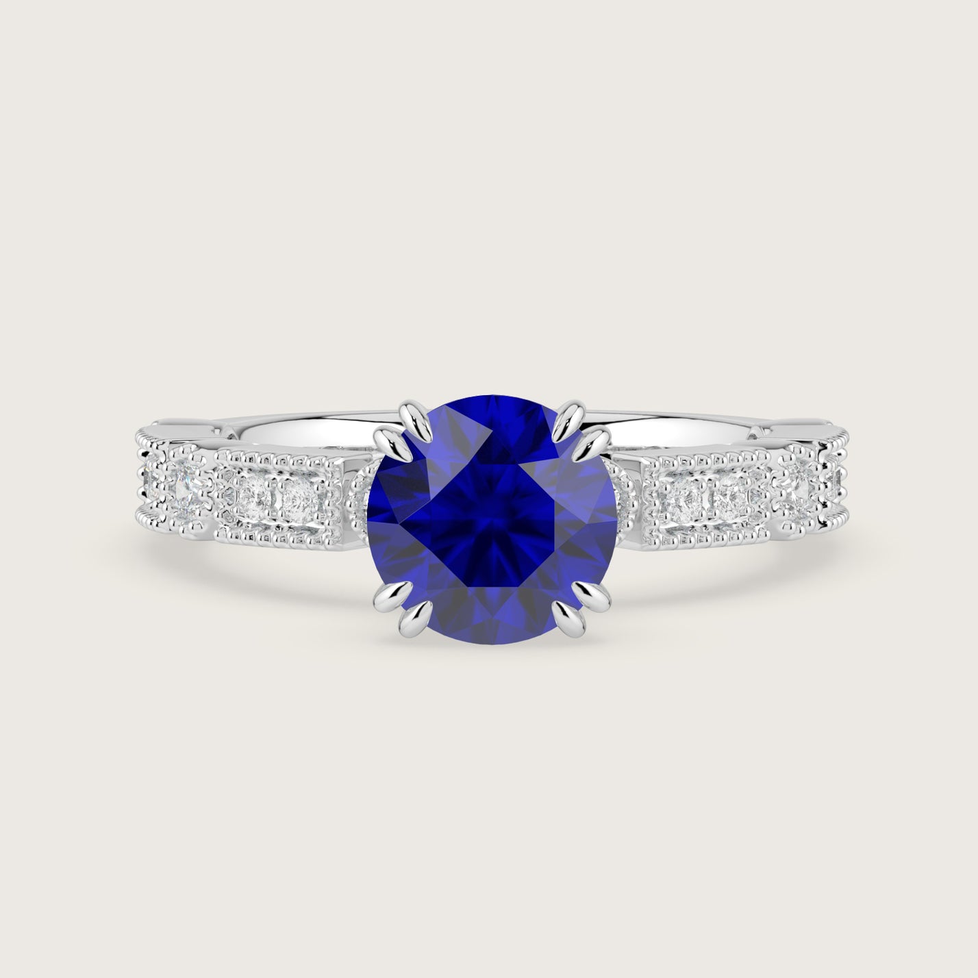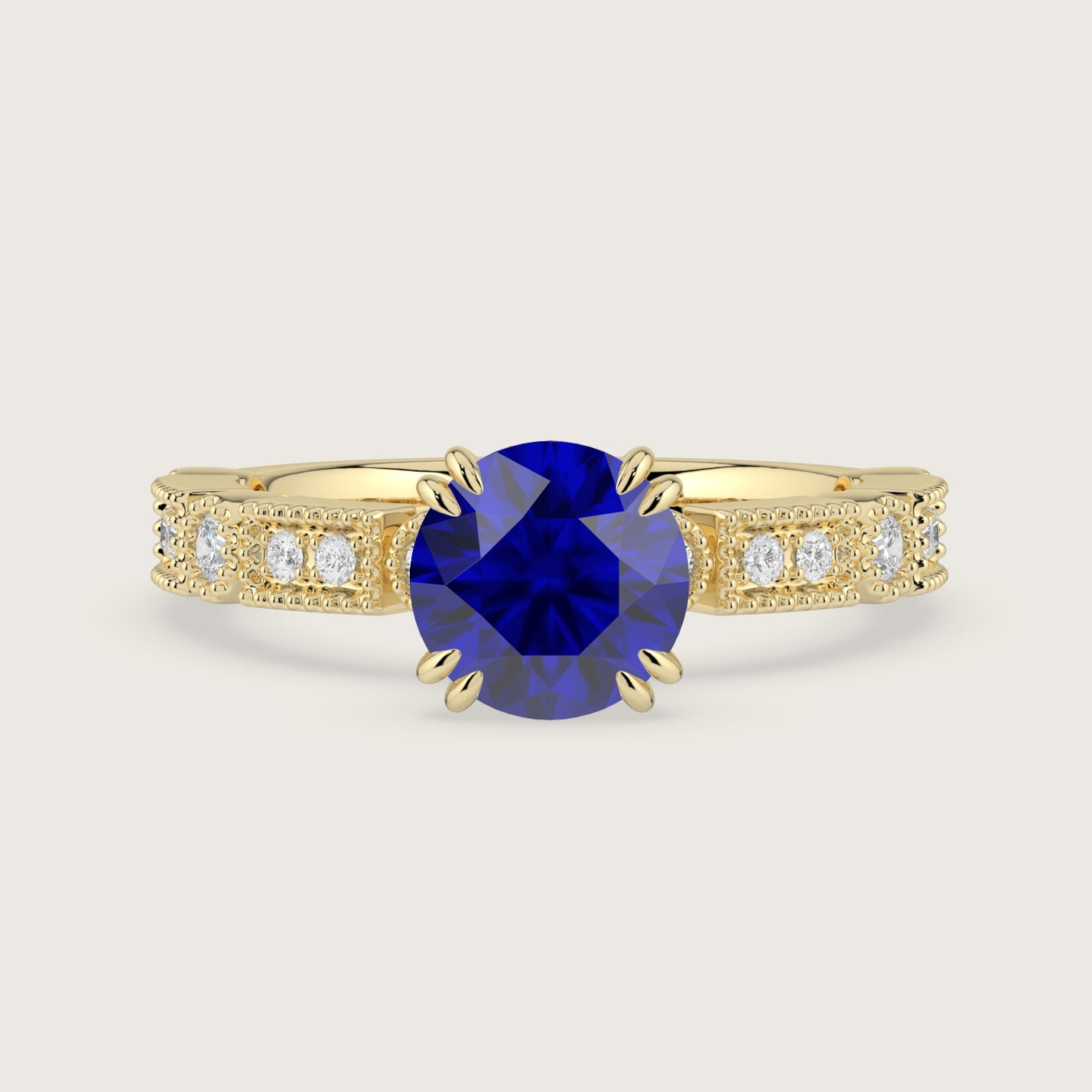Aurelia, Vintage Milgrain Round Brilliant Sapphire Ring