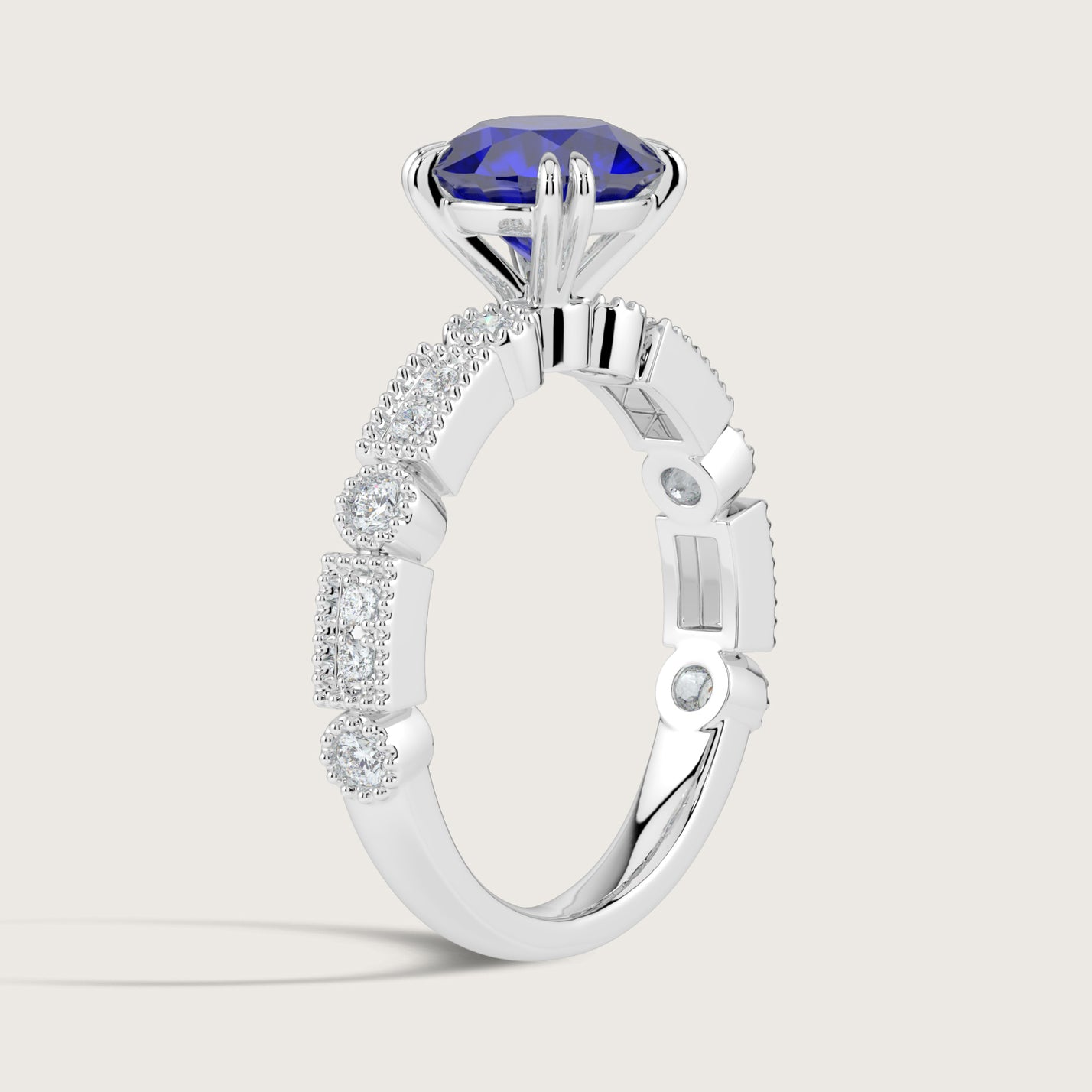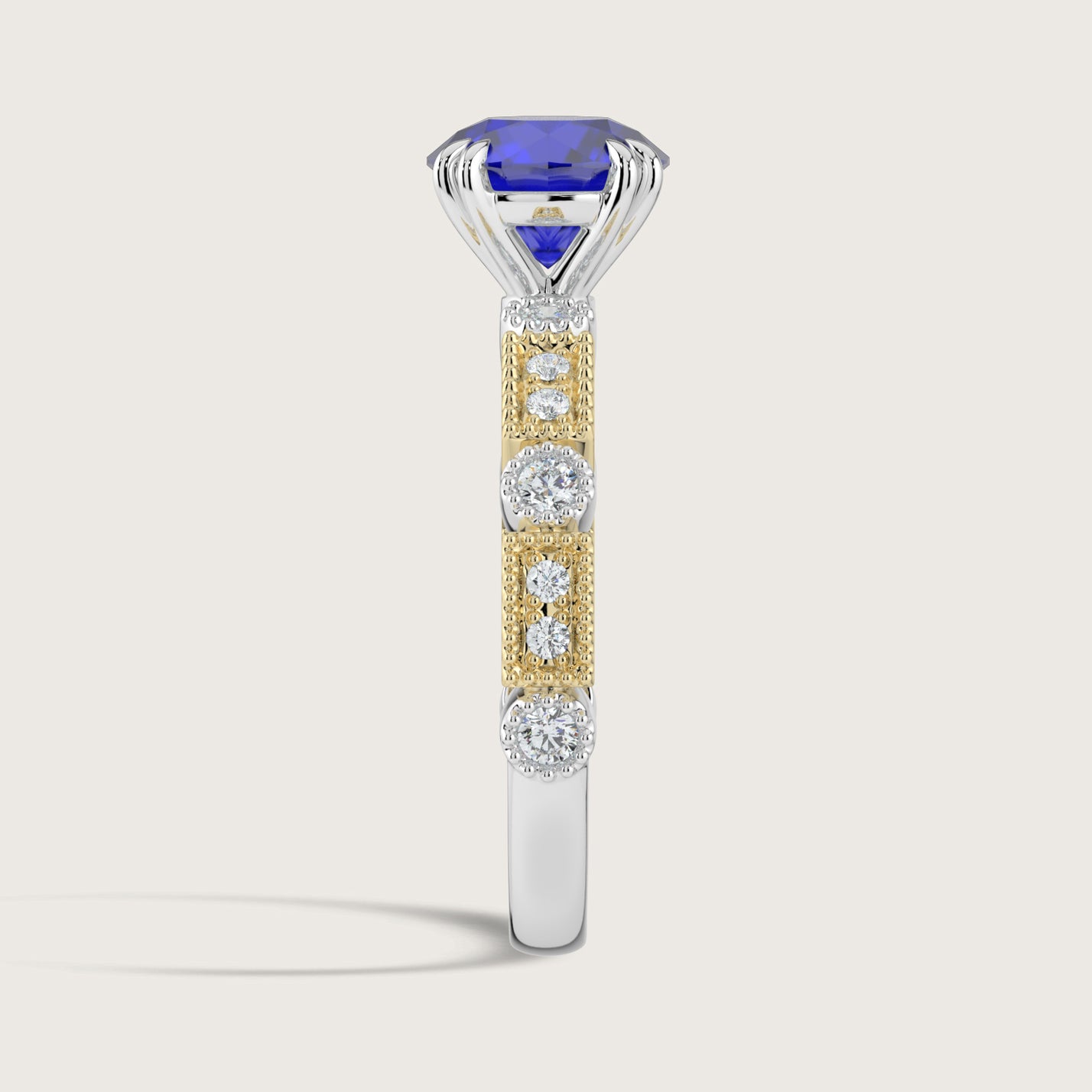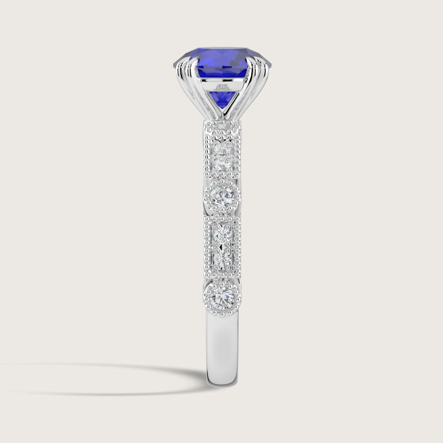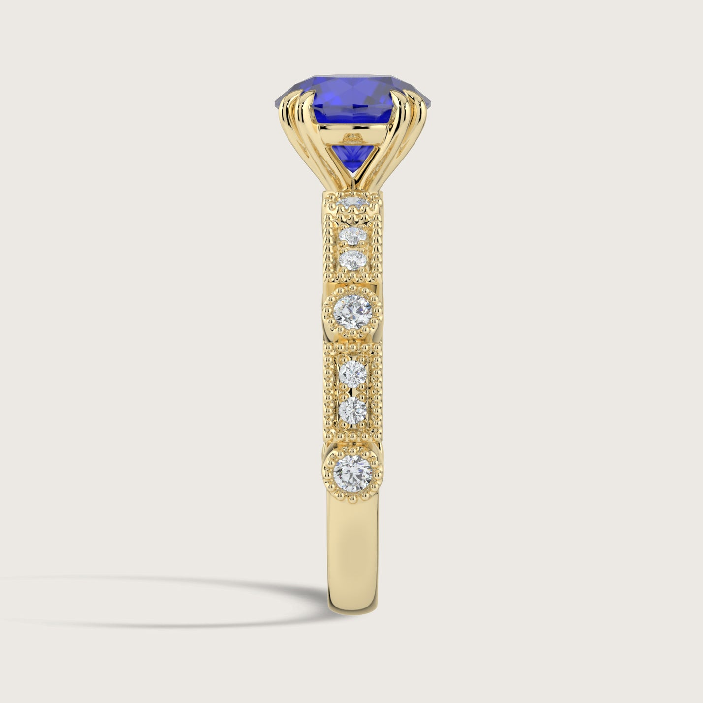 Aurelia, Vintage Milgrain Round Brilliant Sapphire Ring