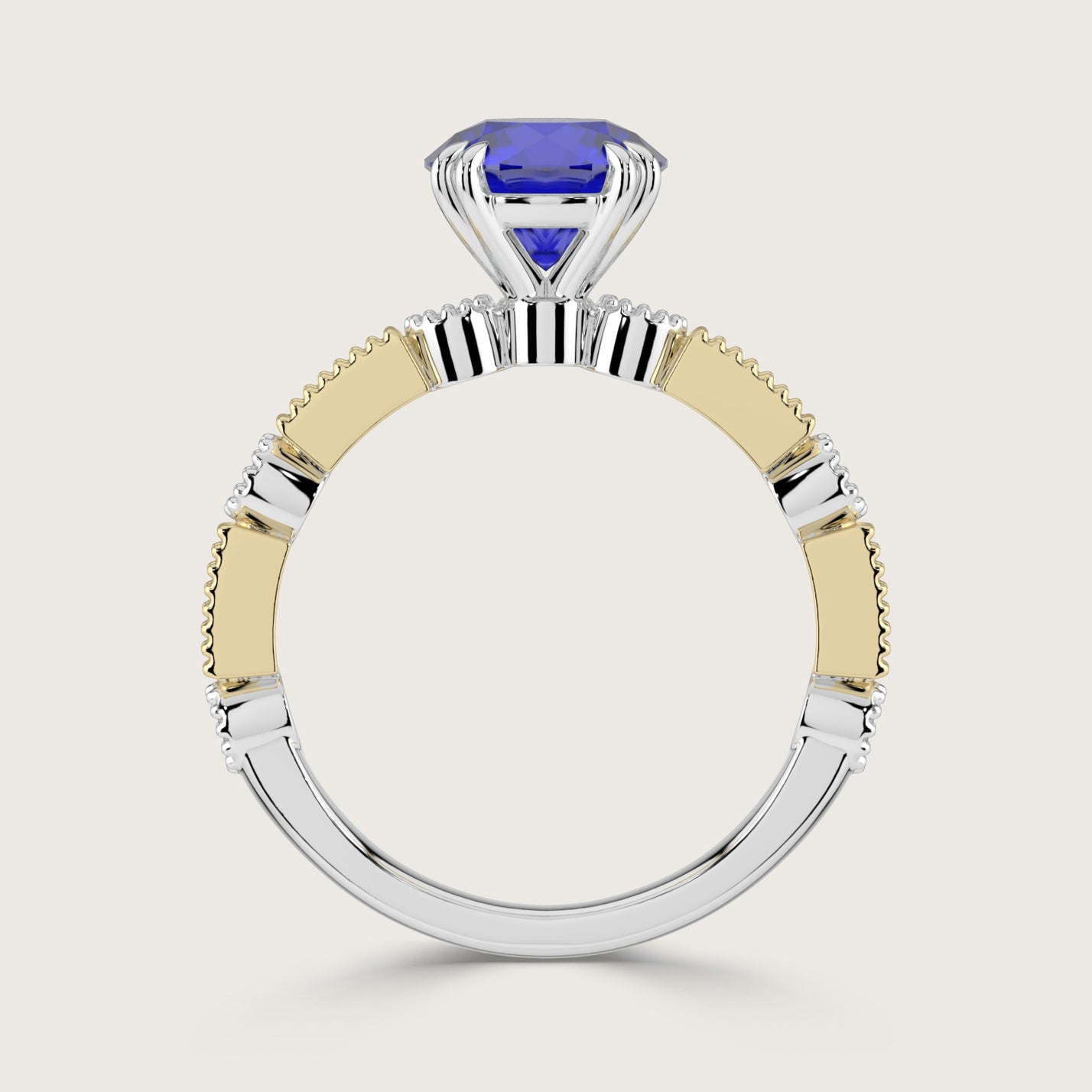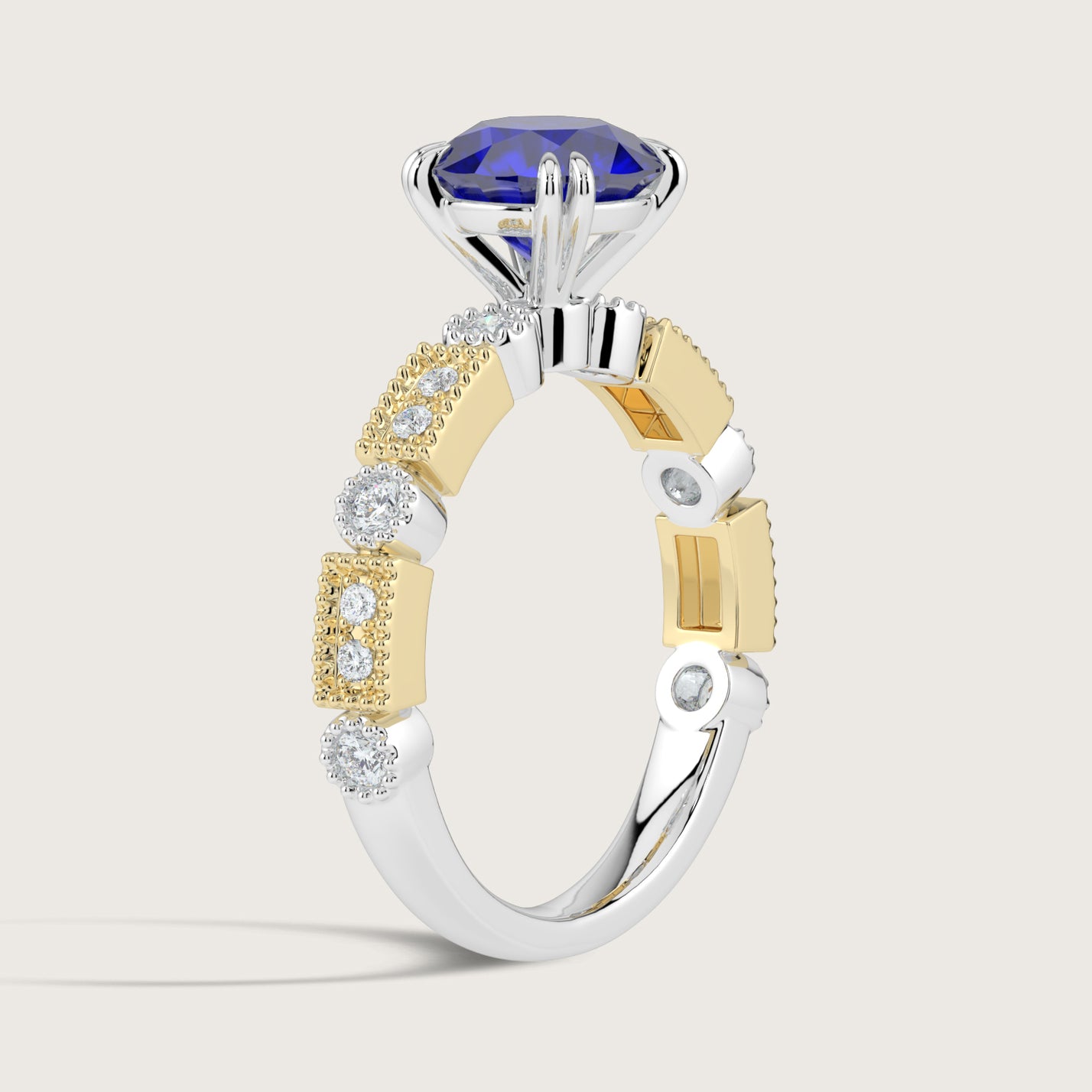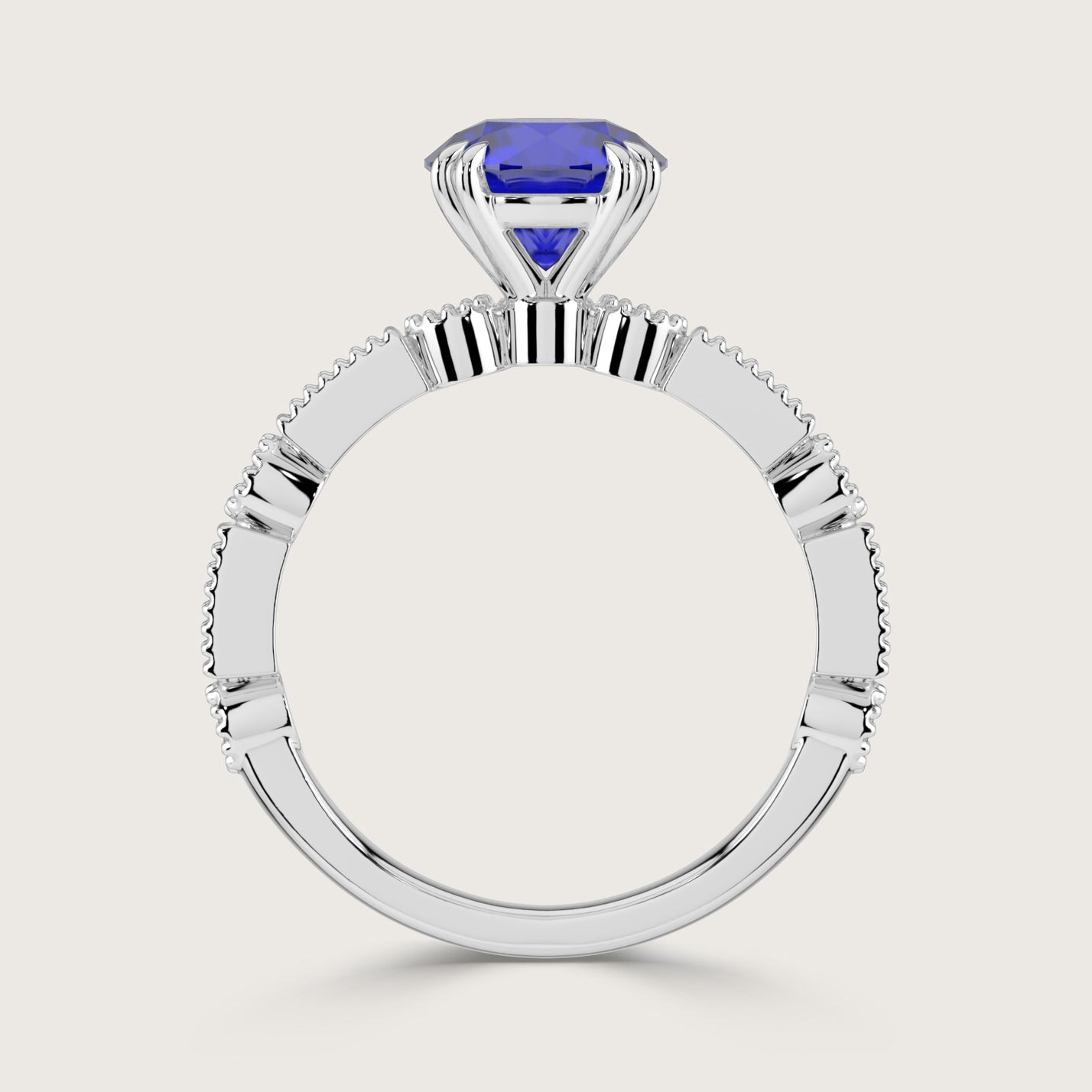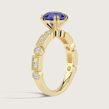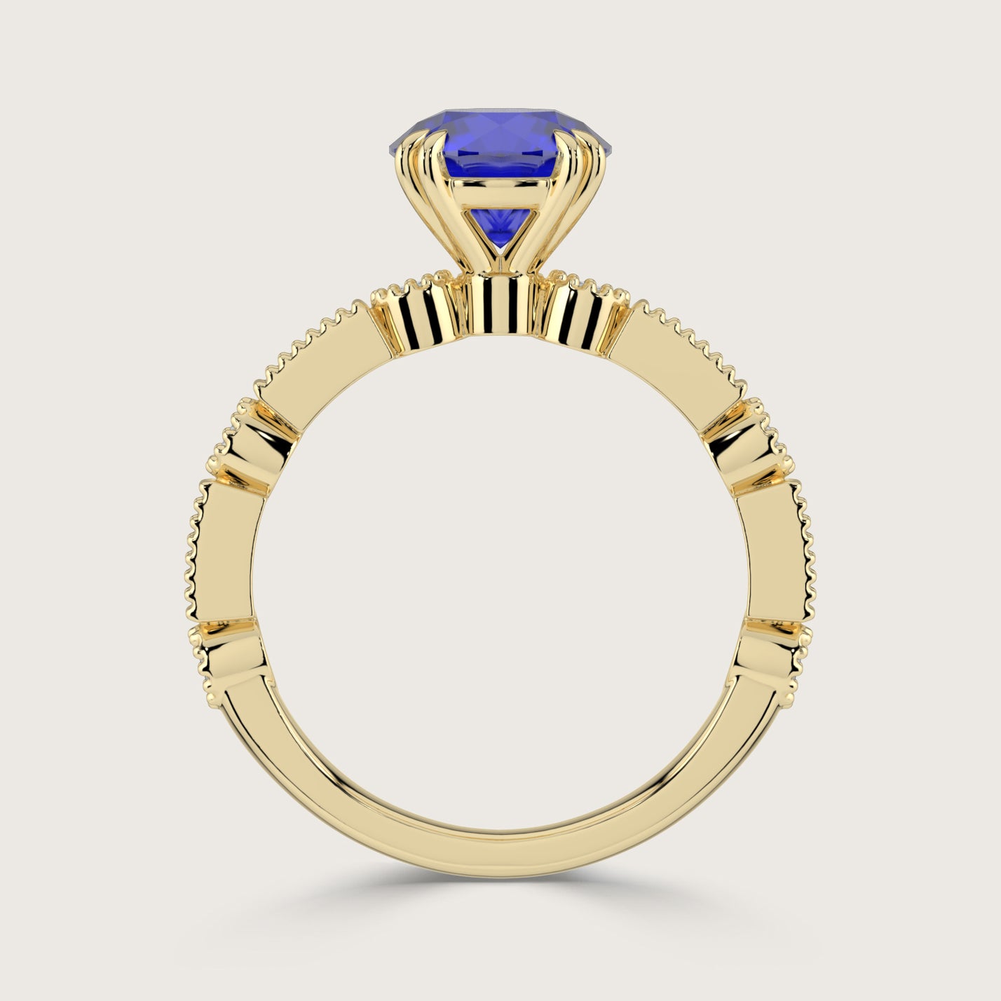 Aurelia, Vintage Milgrain Round Brilliant Sapphire Ring