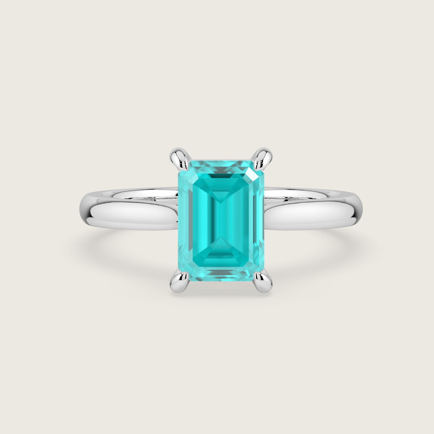 Ava, Emerald Cut Paraiba Solitaire Ring