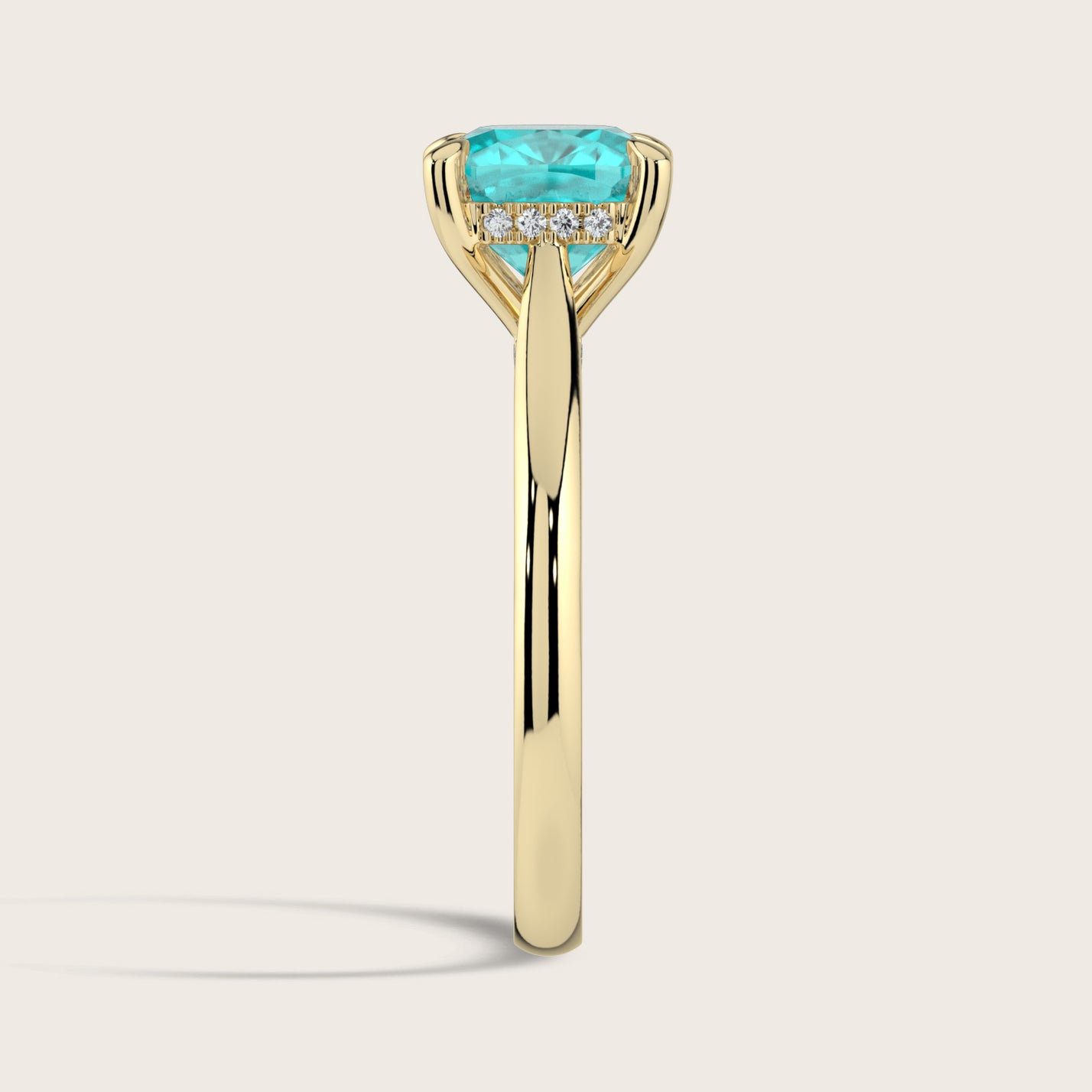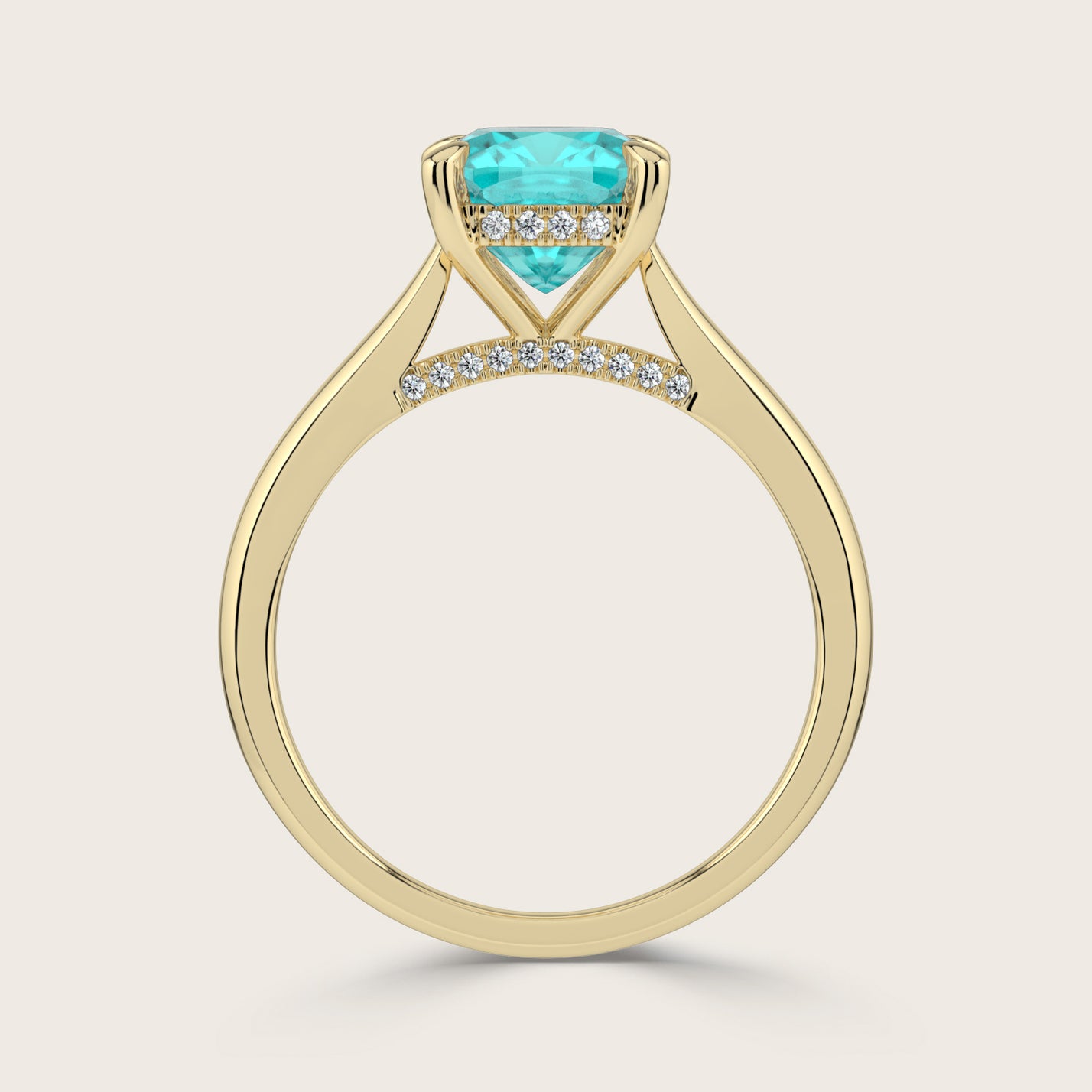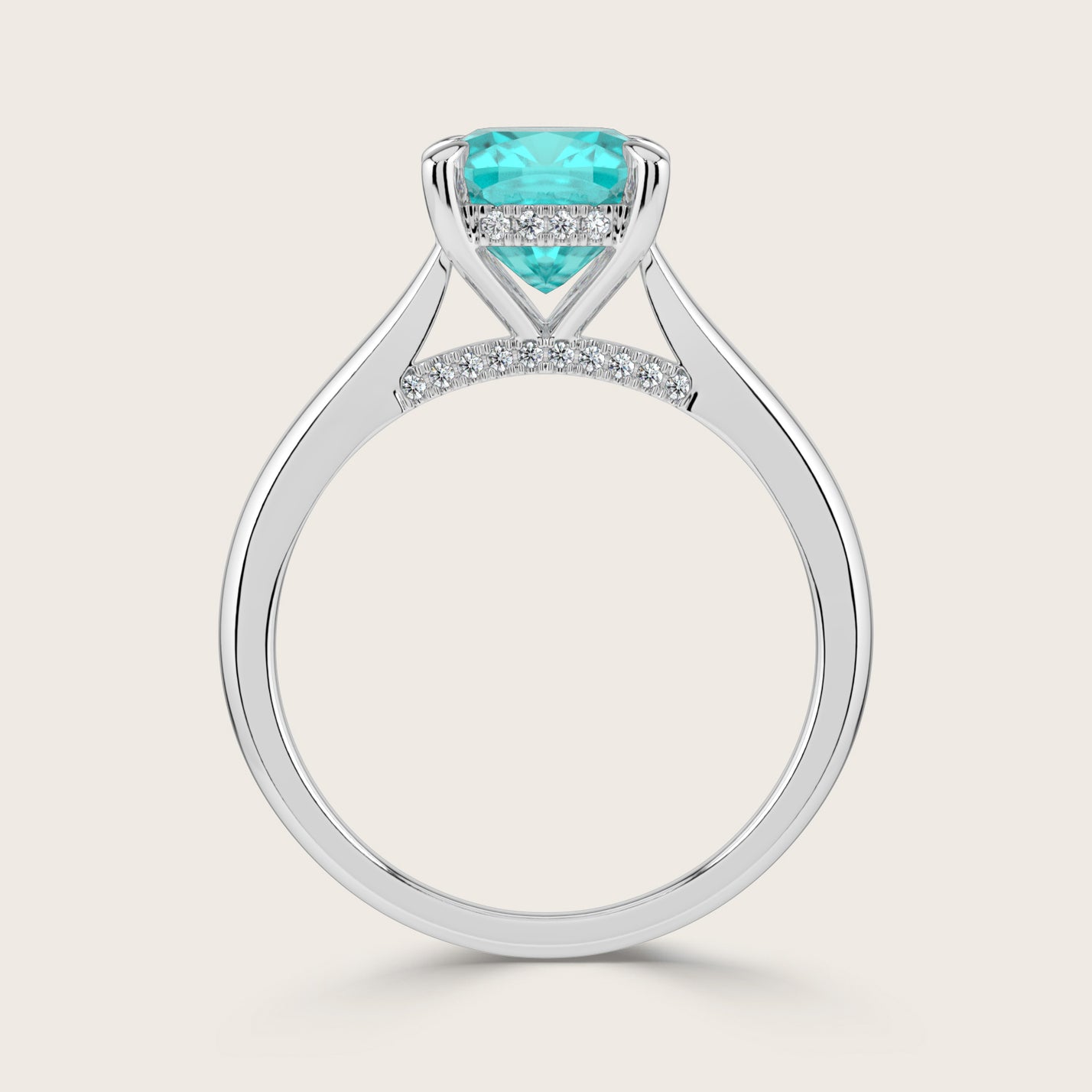 Ayla, Cushion Cut Paraiba Hidden Halo Ring
