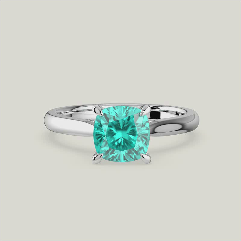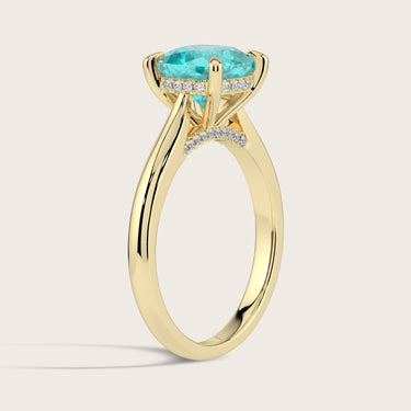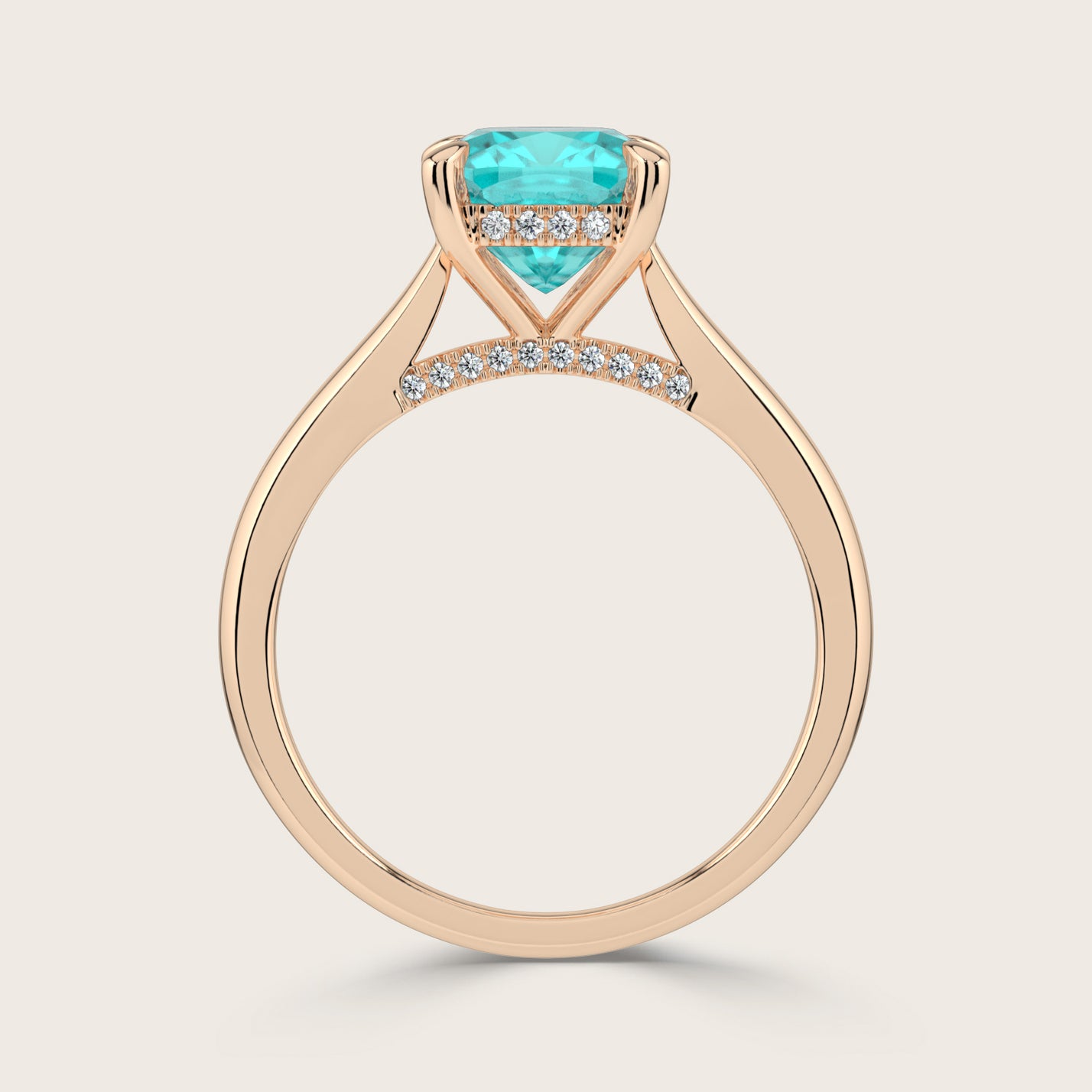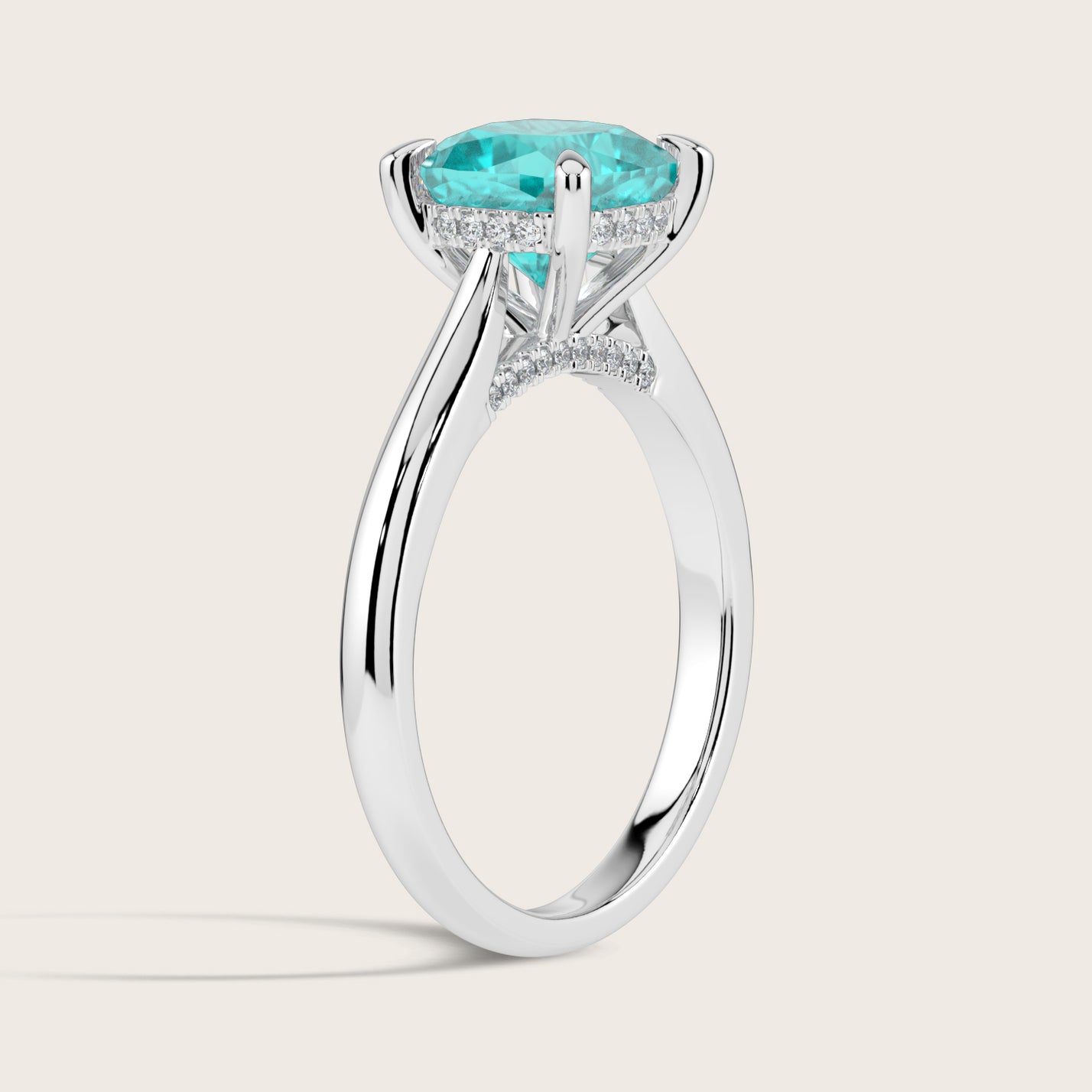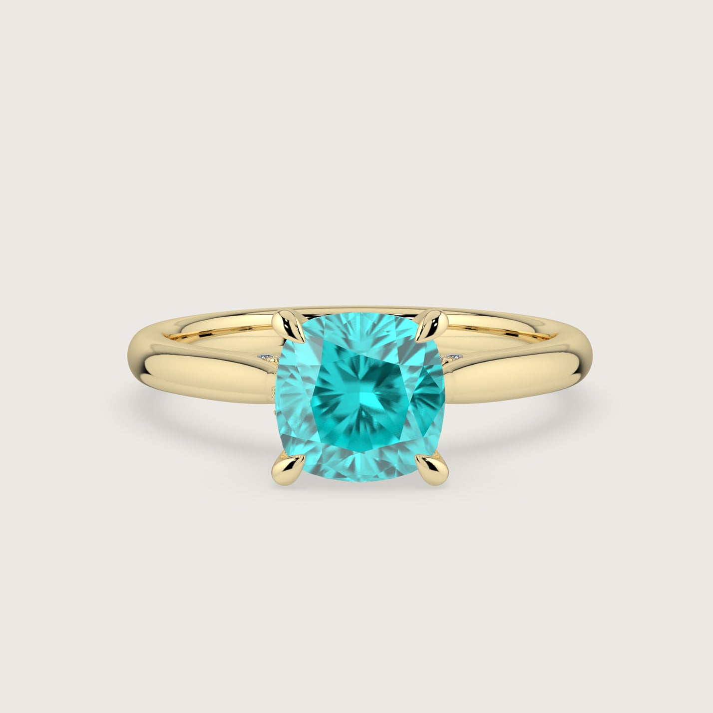 Ayla, Cushion Cut Paraiba Hidden Halo Ring