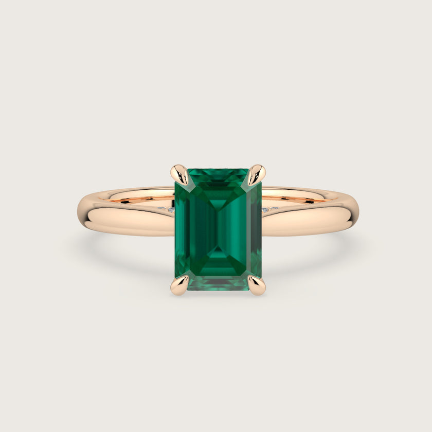 Ayla, Emerald Cut Emerald Hidden Halo Ring