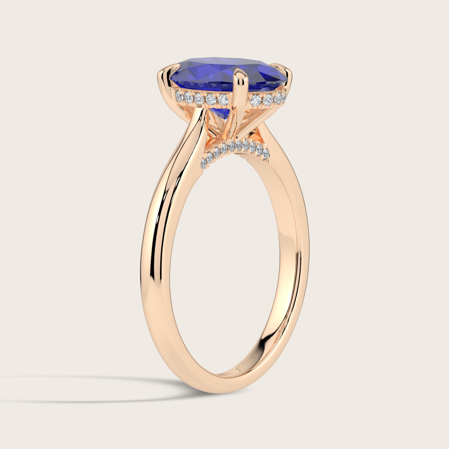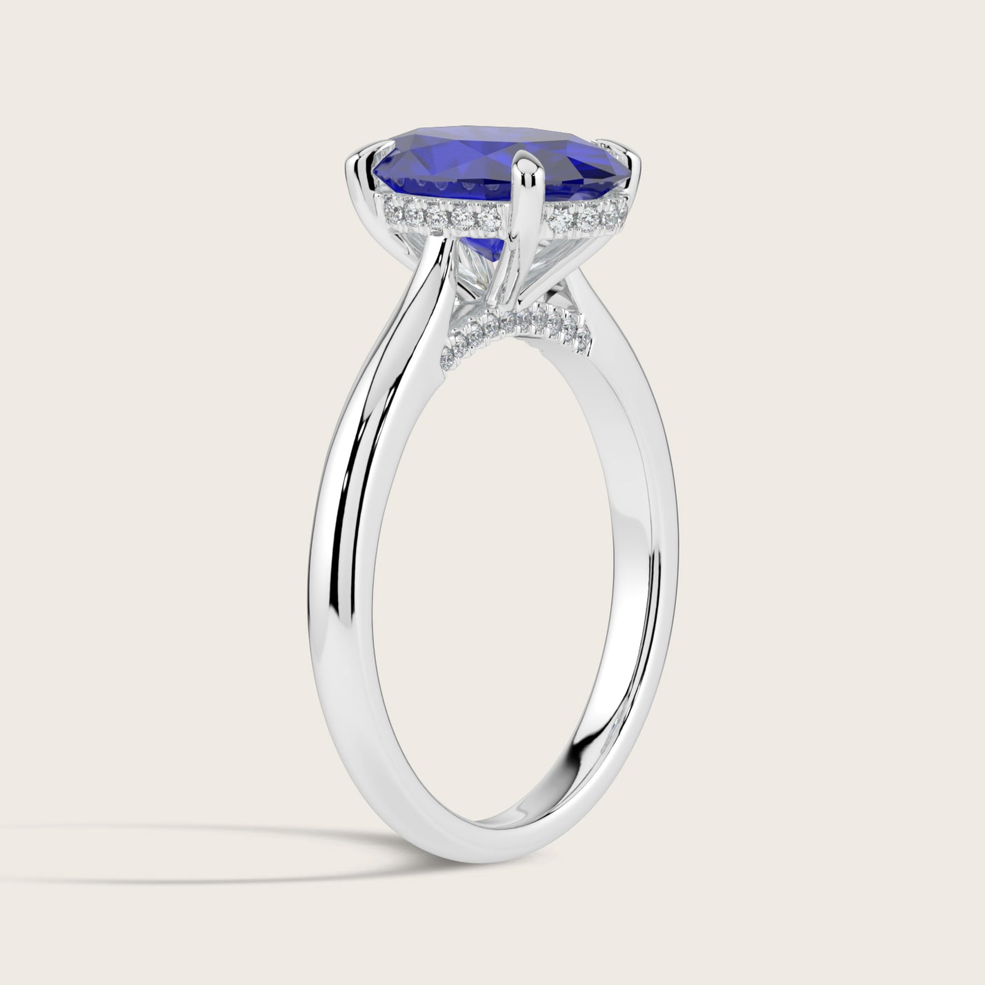 Ayla, Oval Cut Sapphire Hidden Halo Ring