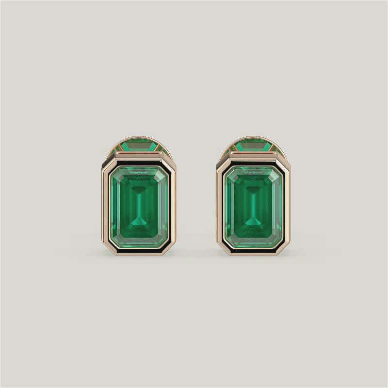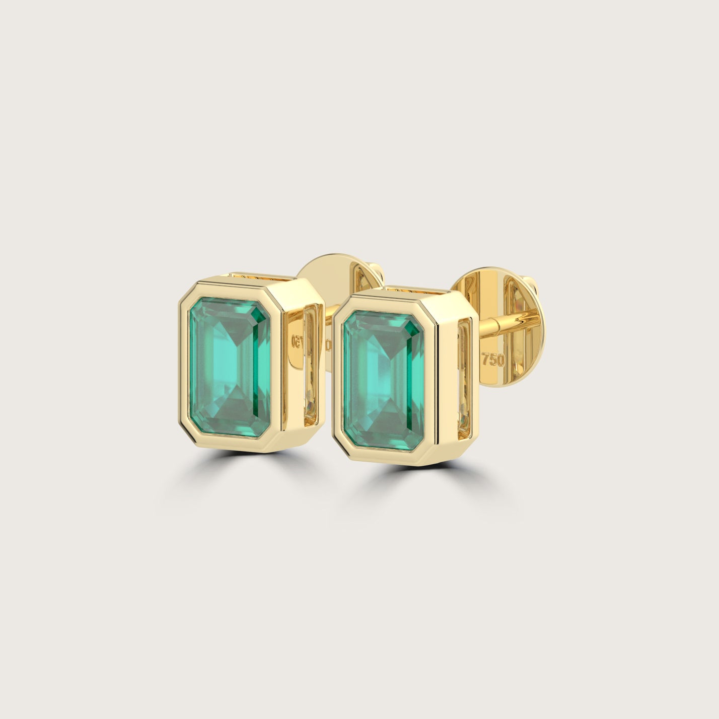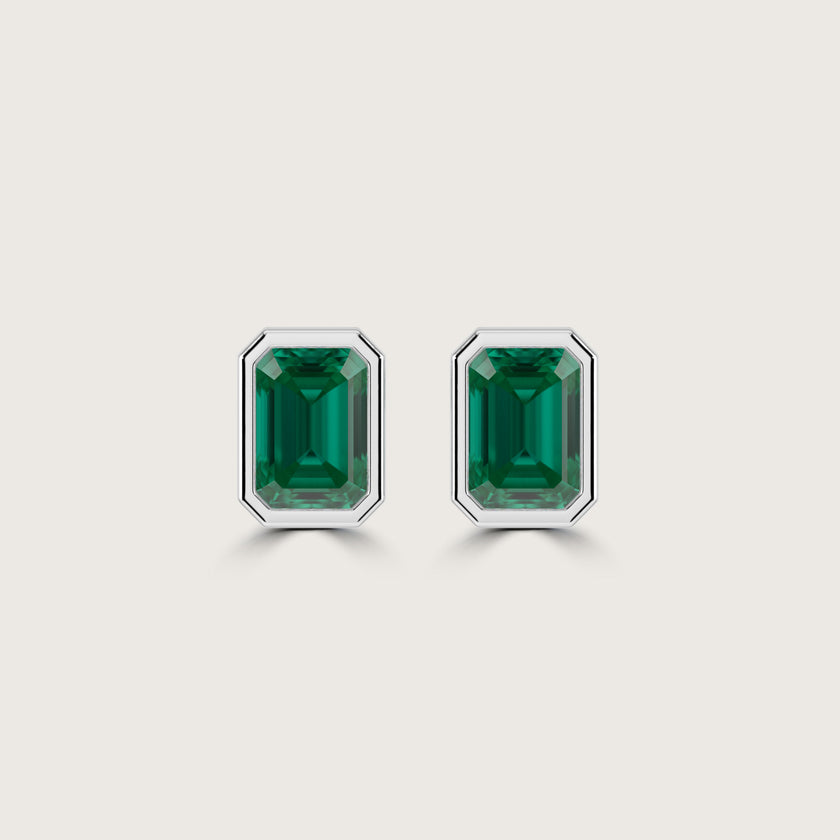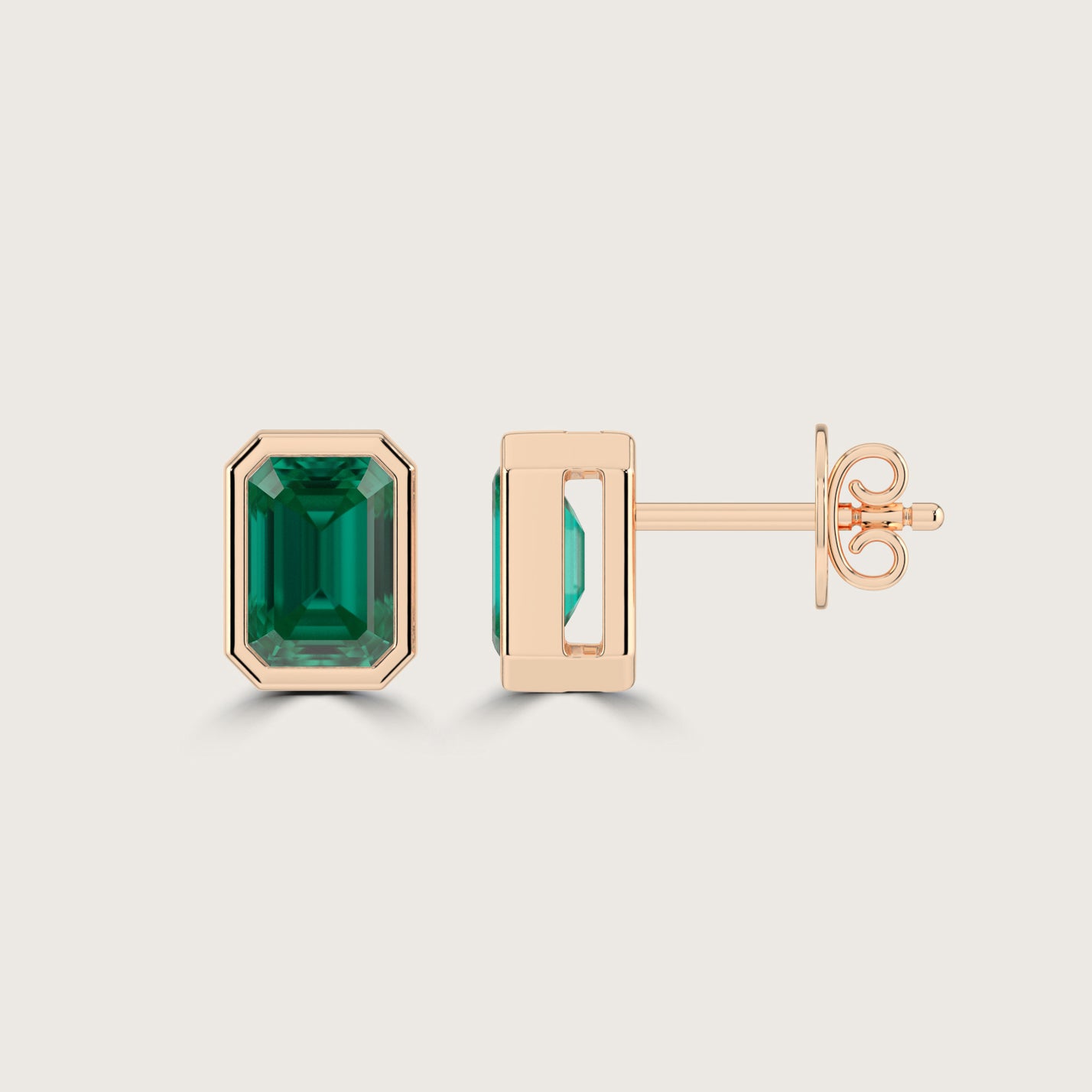 Bezel Set Emerald Cut Emerald Stud Earrings
