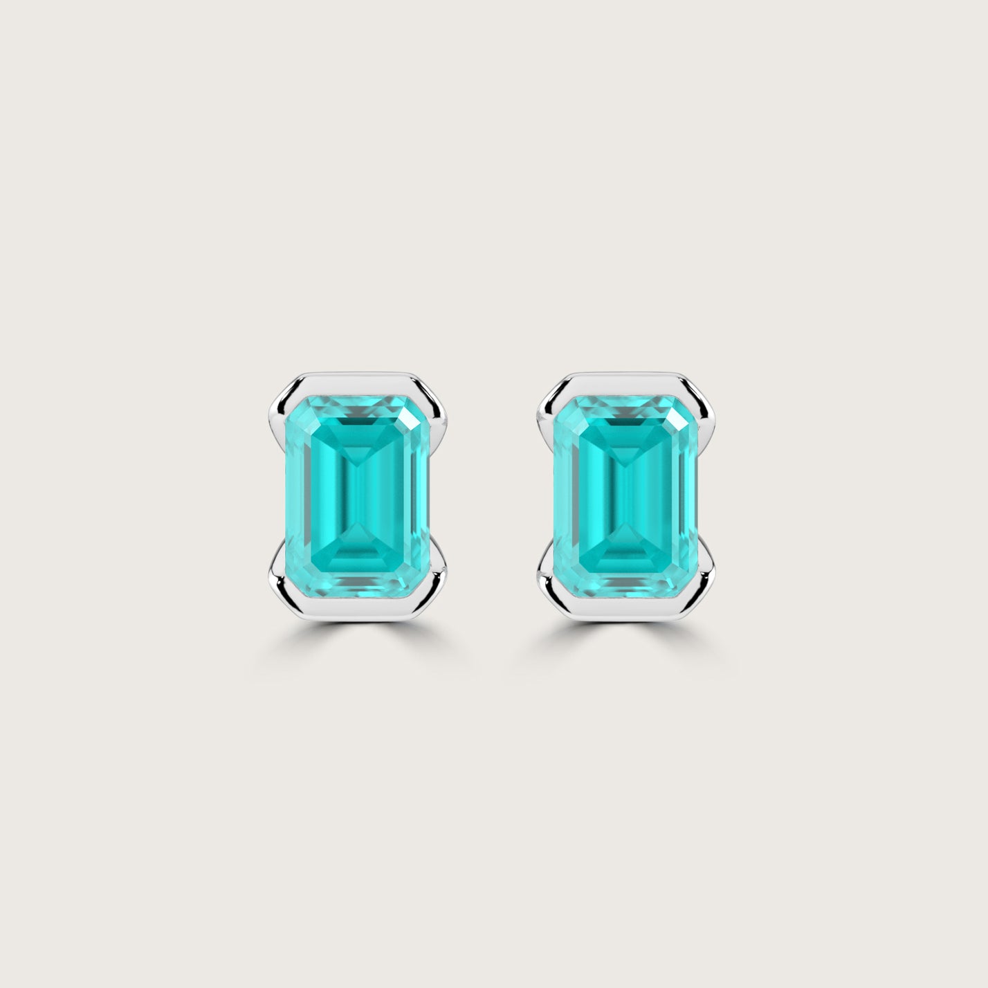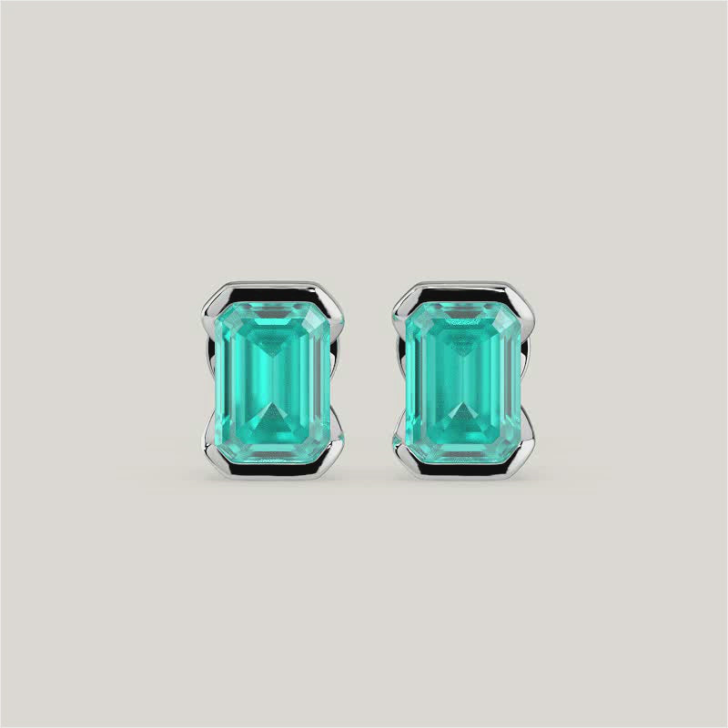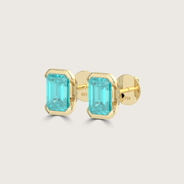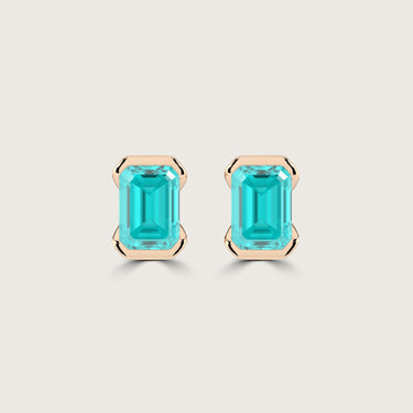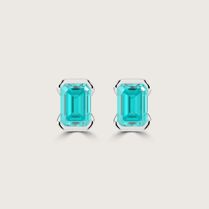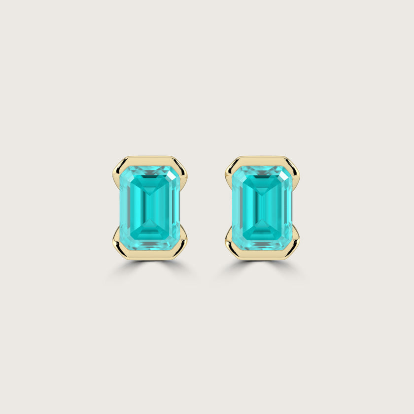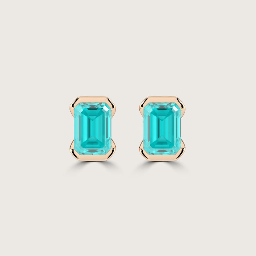 Half Bezel Set Emerald Cut Paraiba Stud Earrings