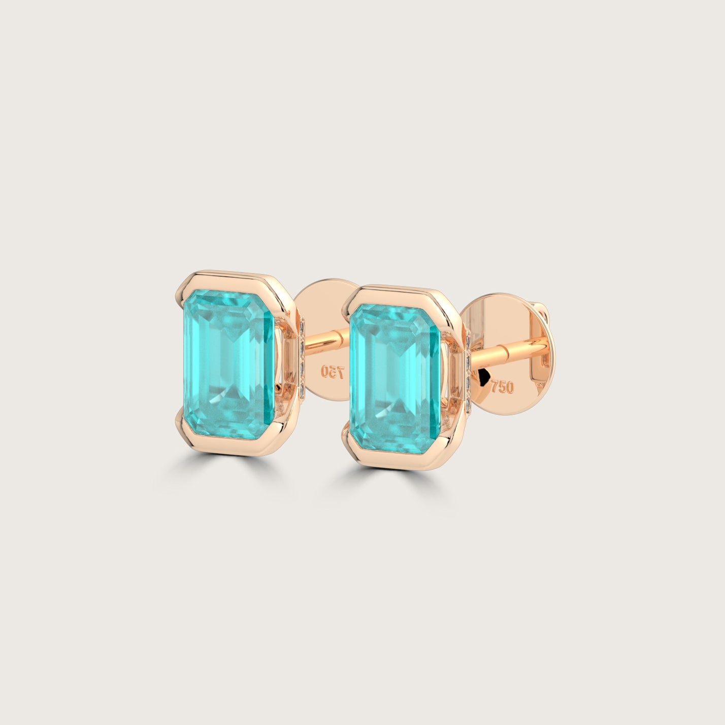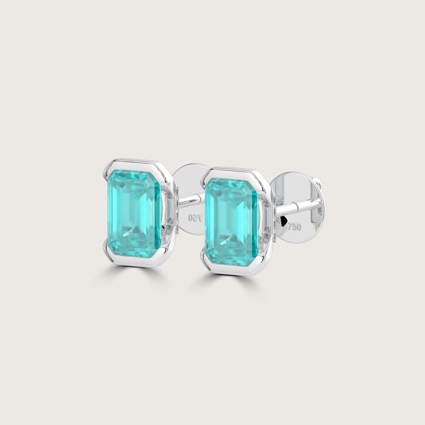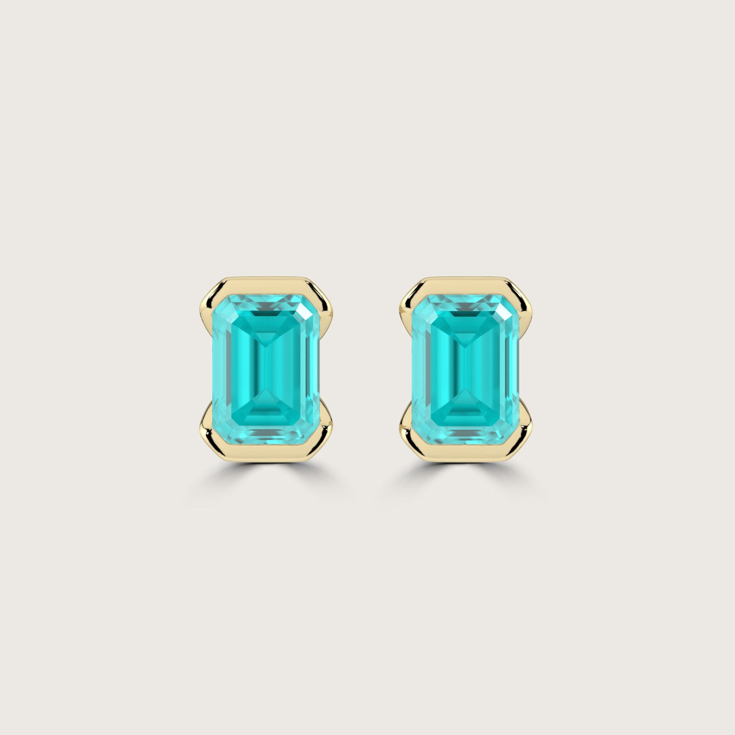 Half Bezel Set Emerald Cut Paraiba Stud Earrings