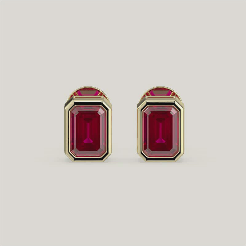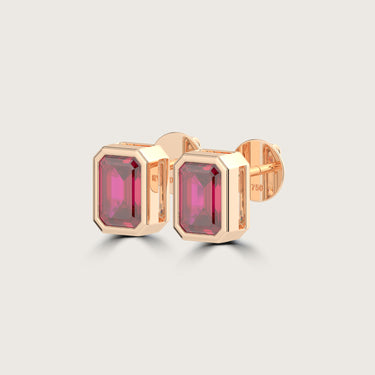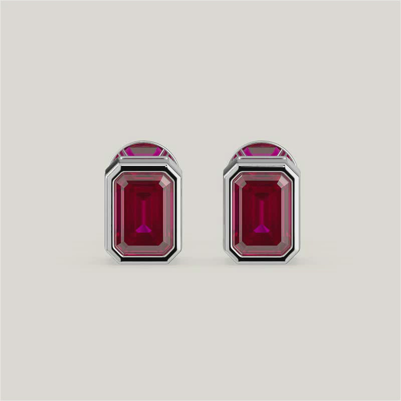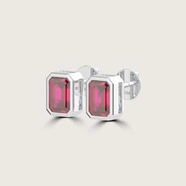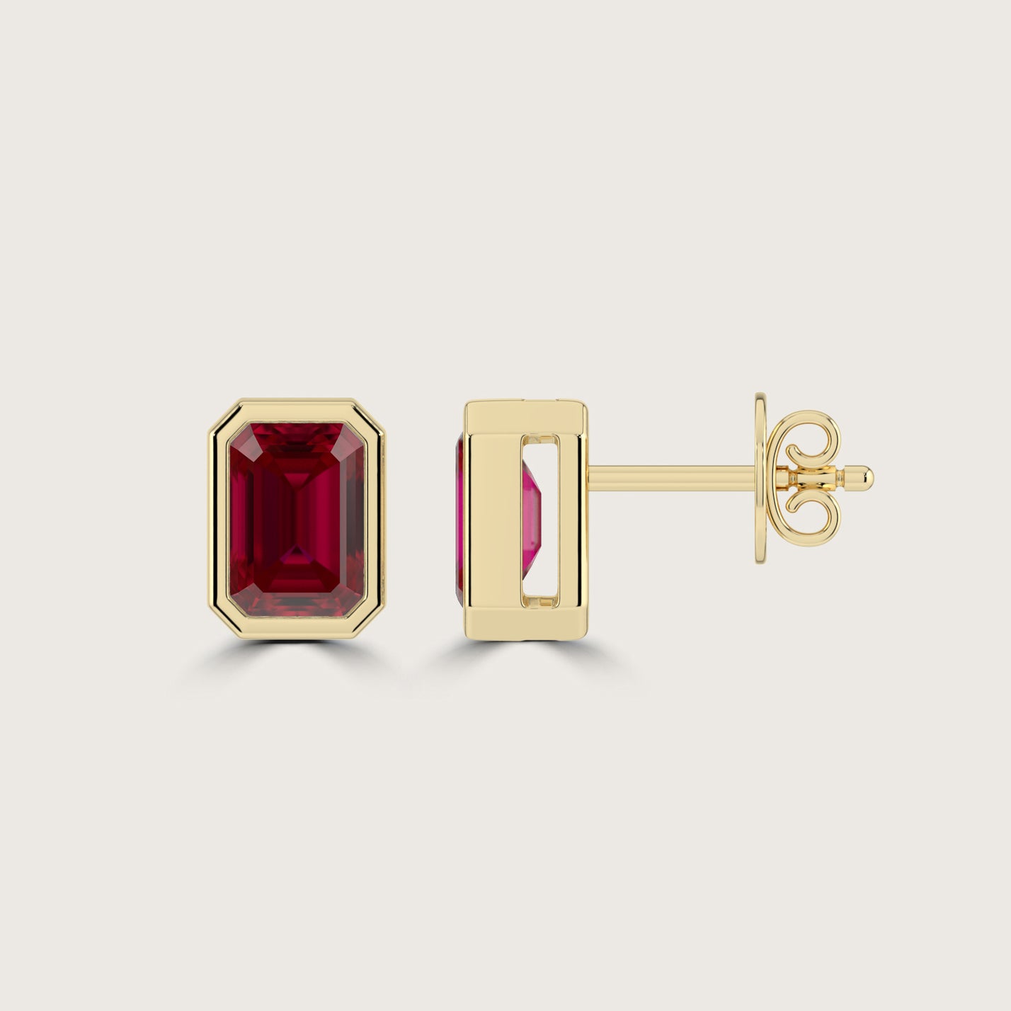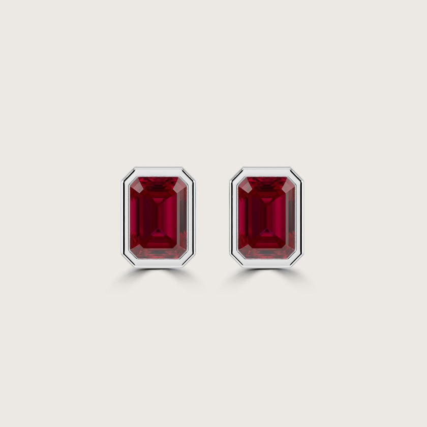 Bezel Set Emerald Cut Ruby Stud Earrings