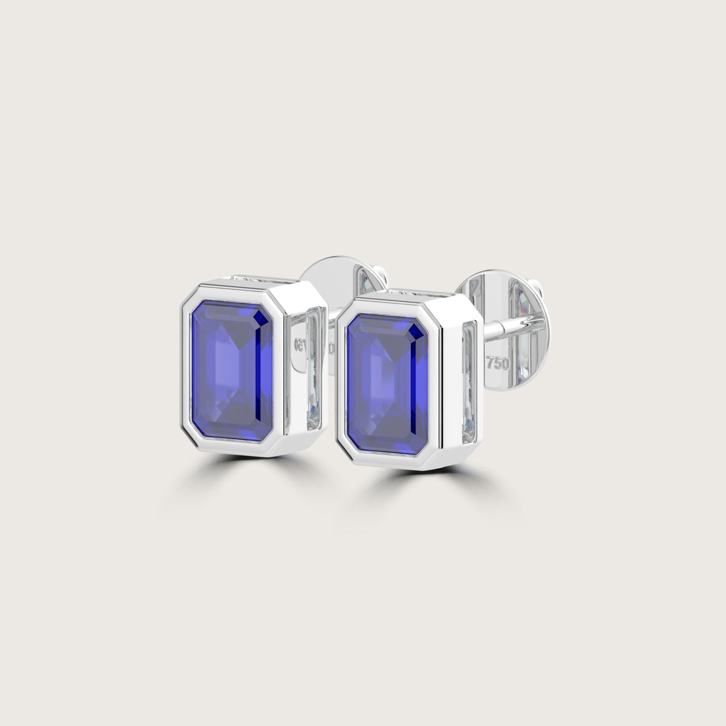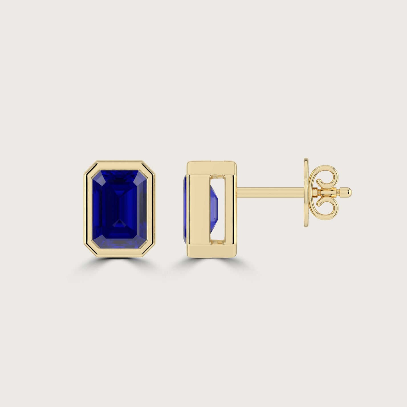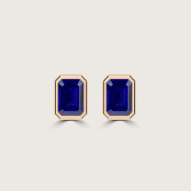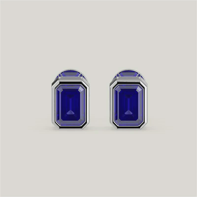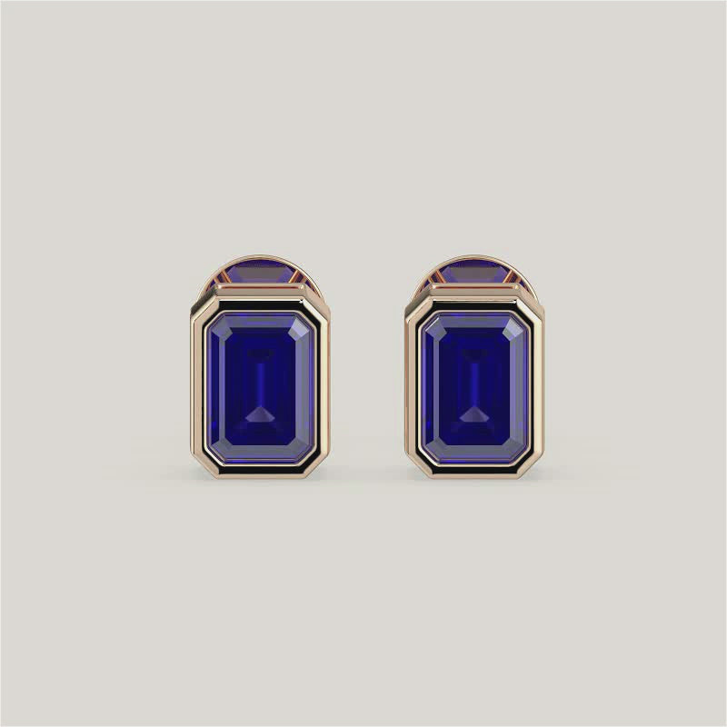 Bezel Set Emerald Cut Sapphire Stud Earrings