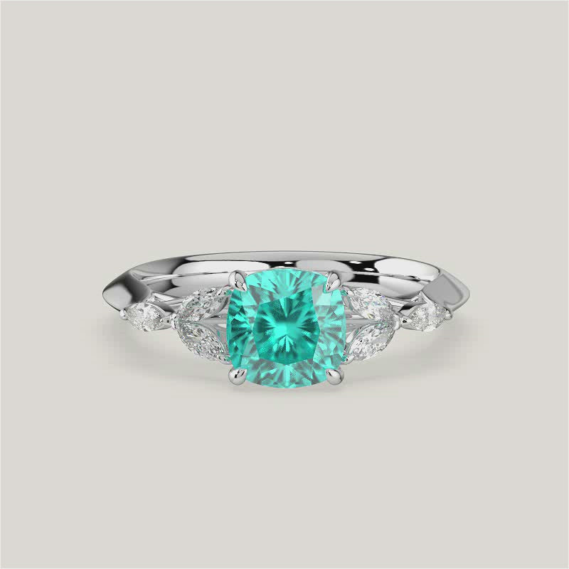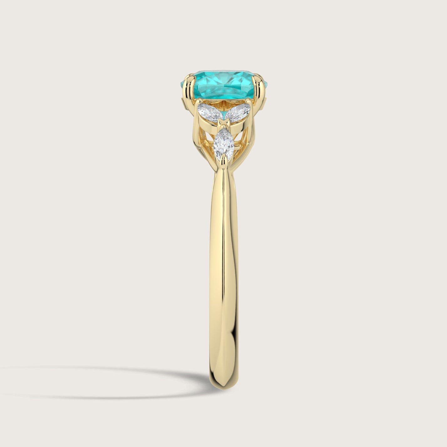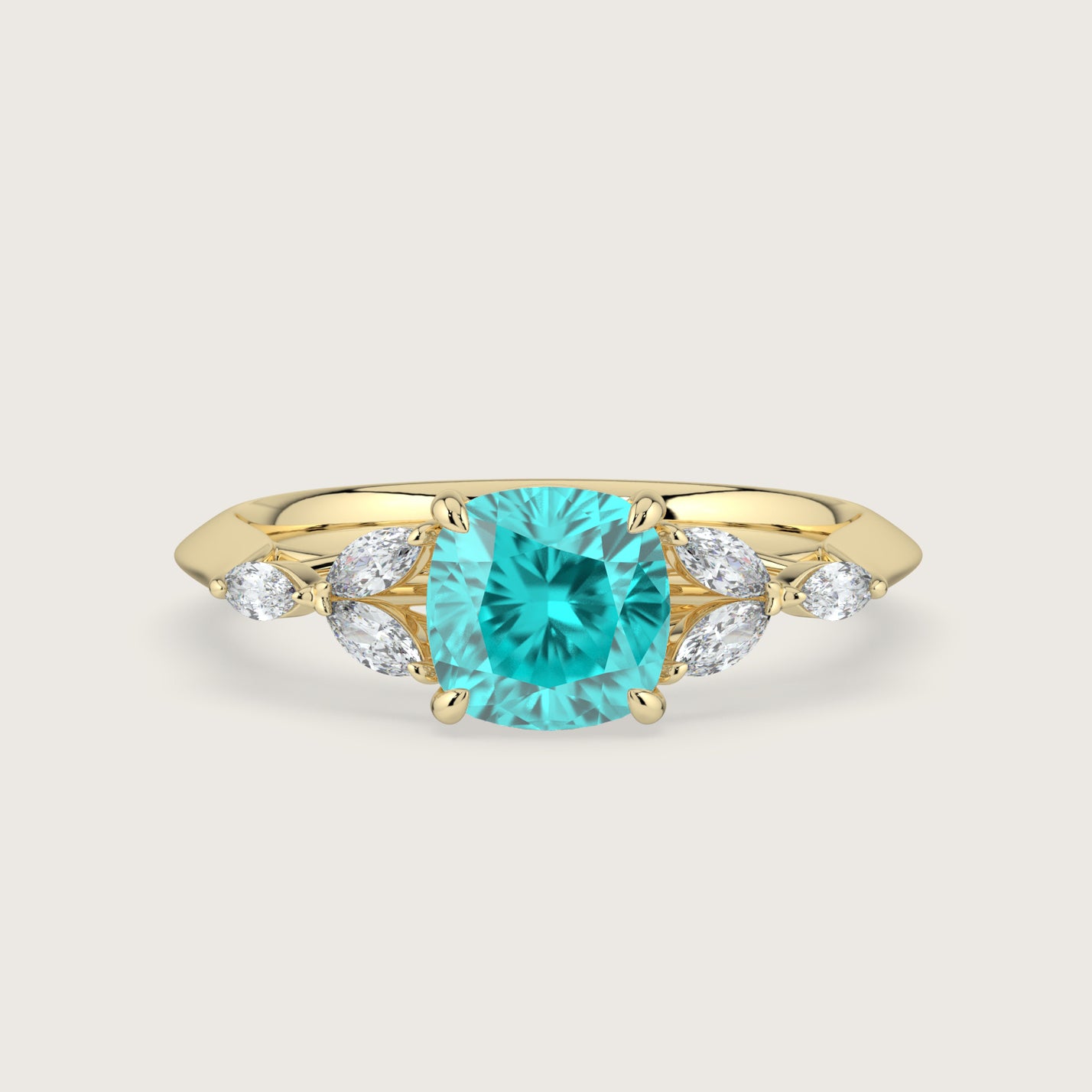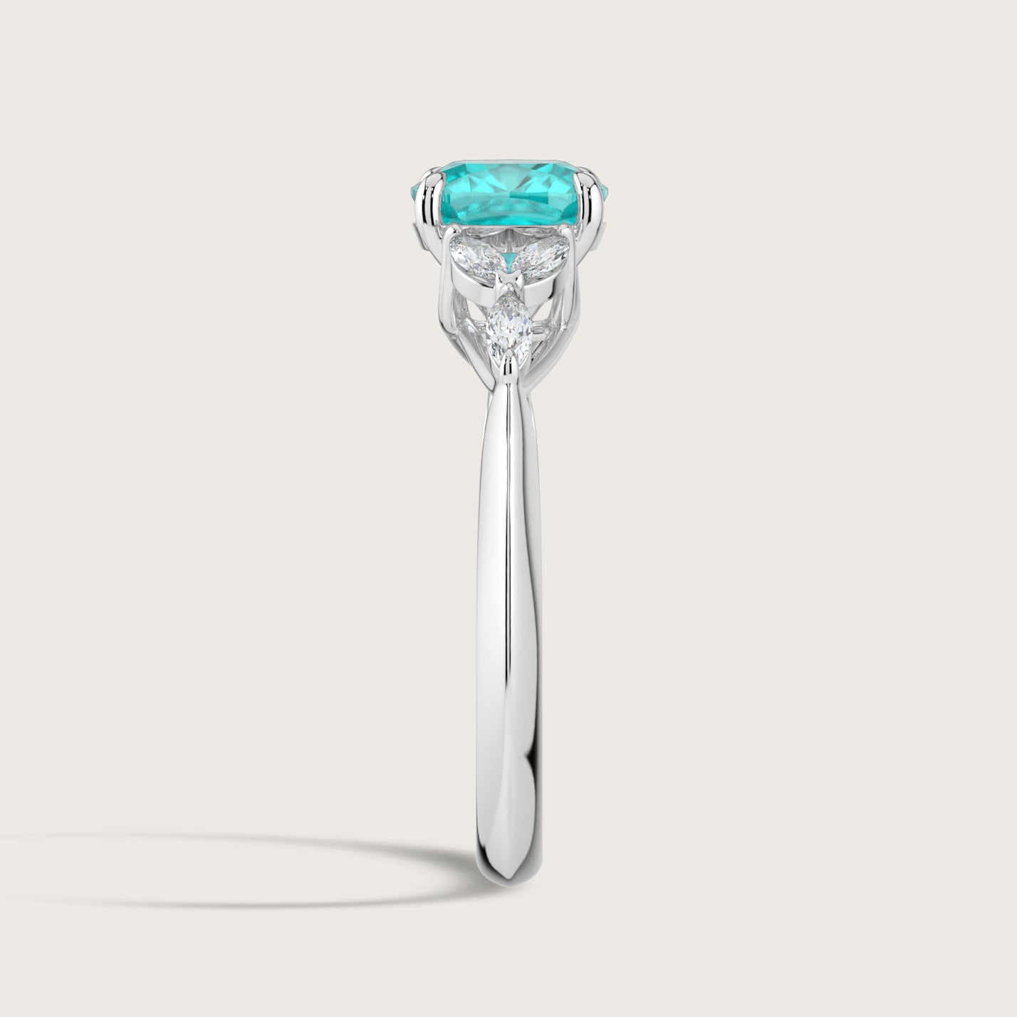 Blossom, Cushion Cut Paraiba Ring with Marquise Diamond Accents