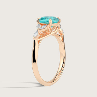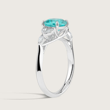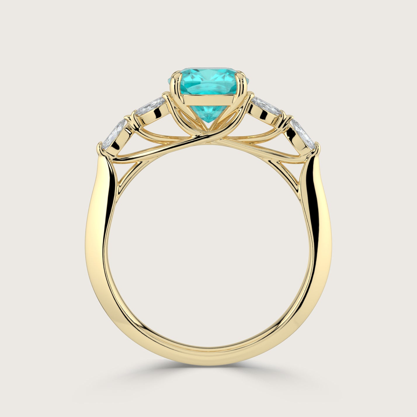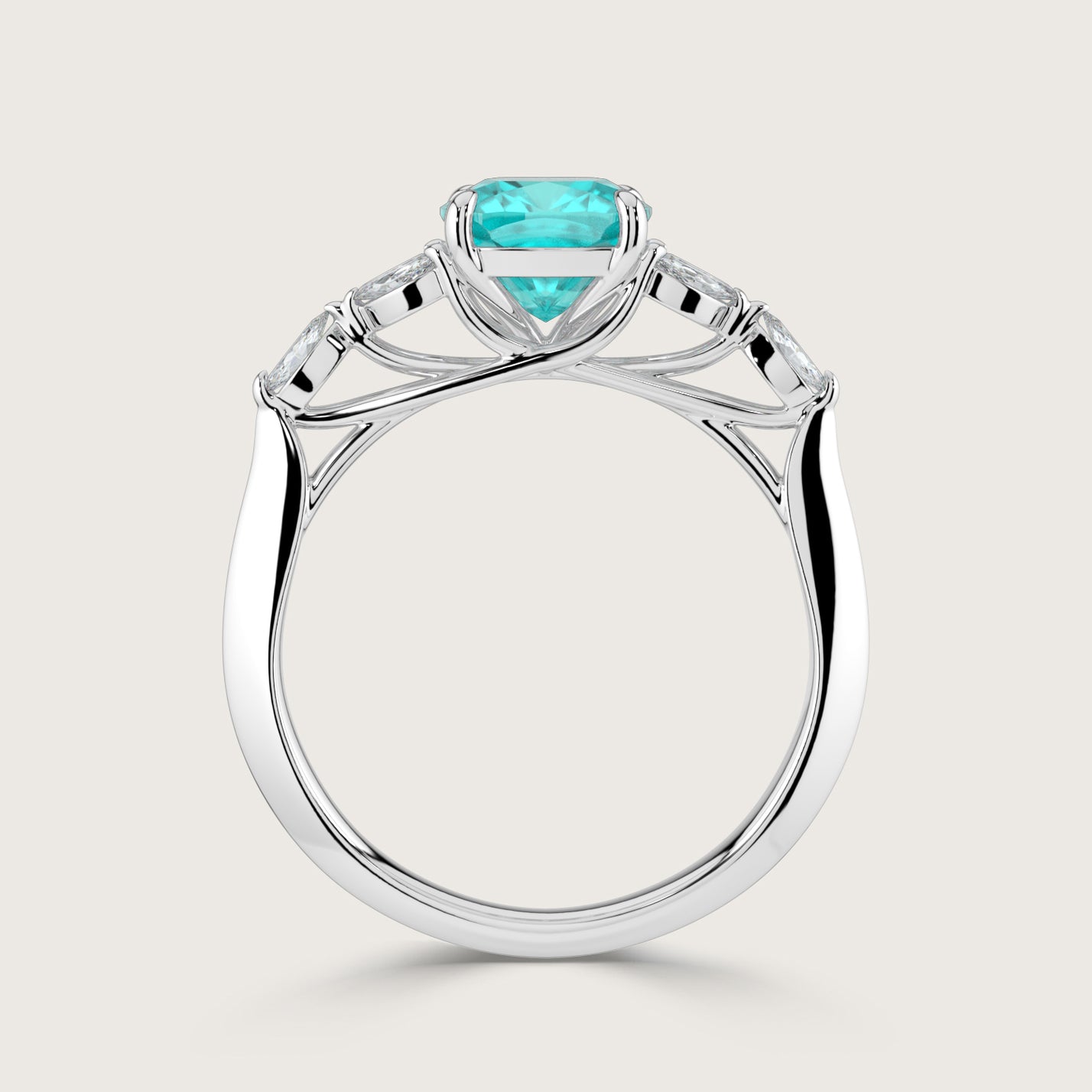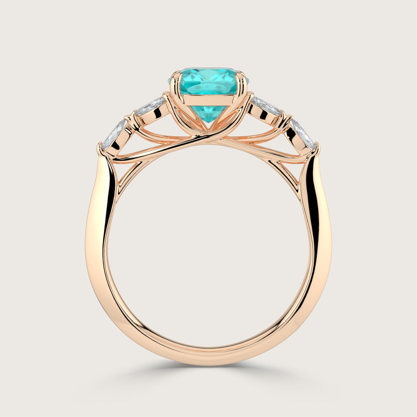 Blossom, Cushion Cut Paraiba Ring with Marquise Diamond Accents