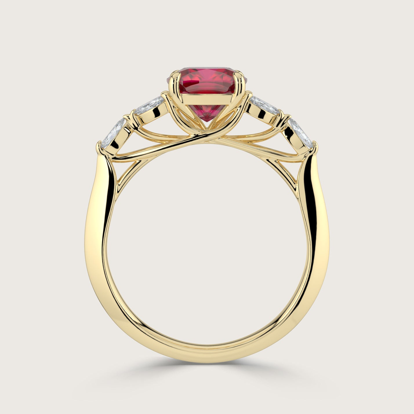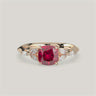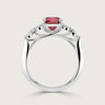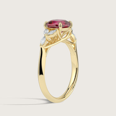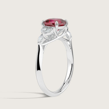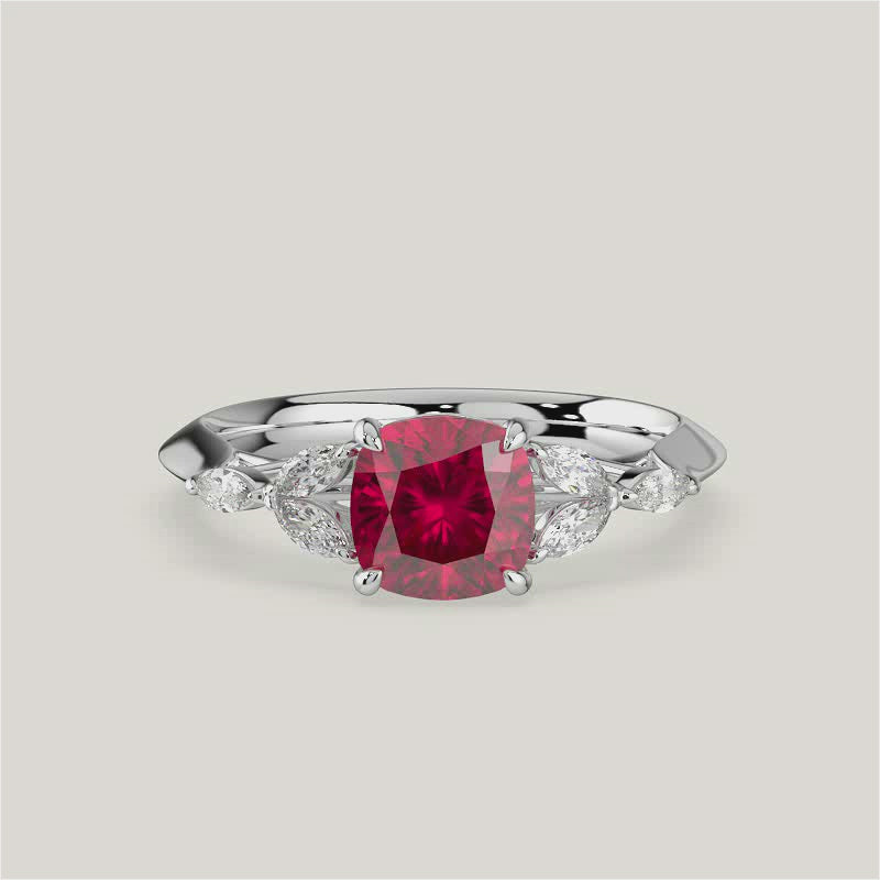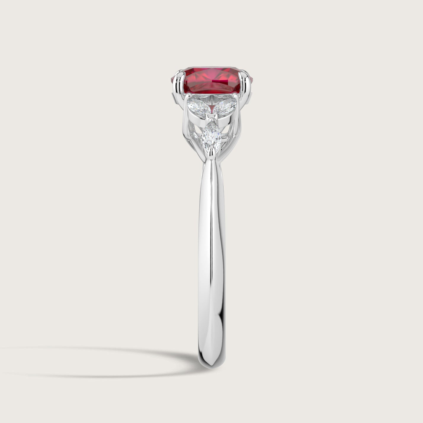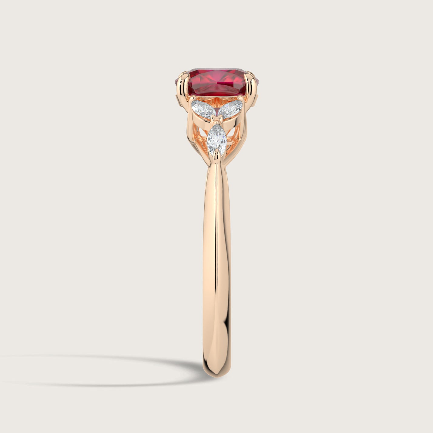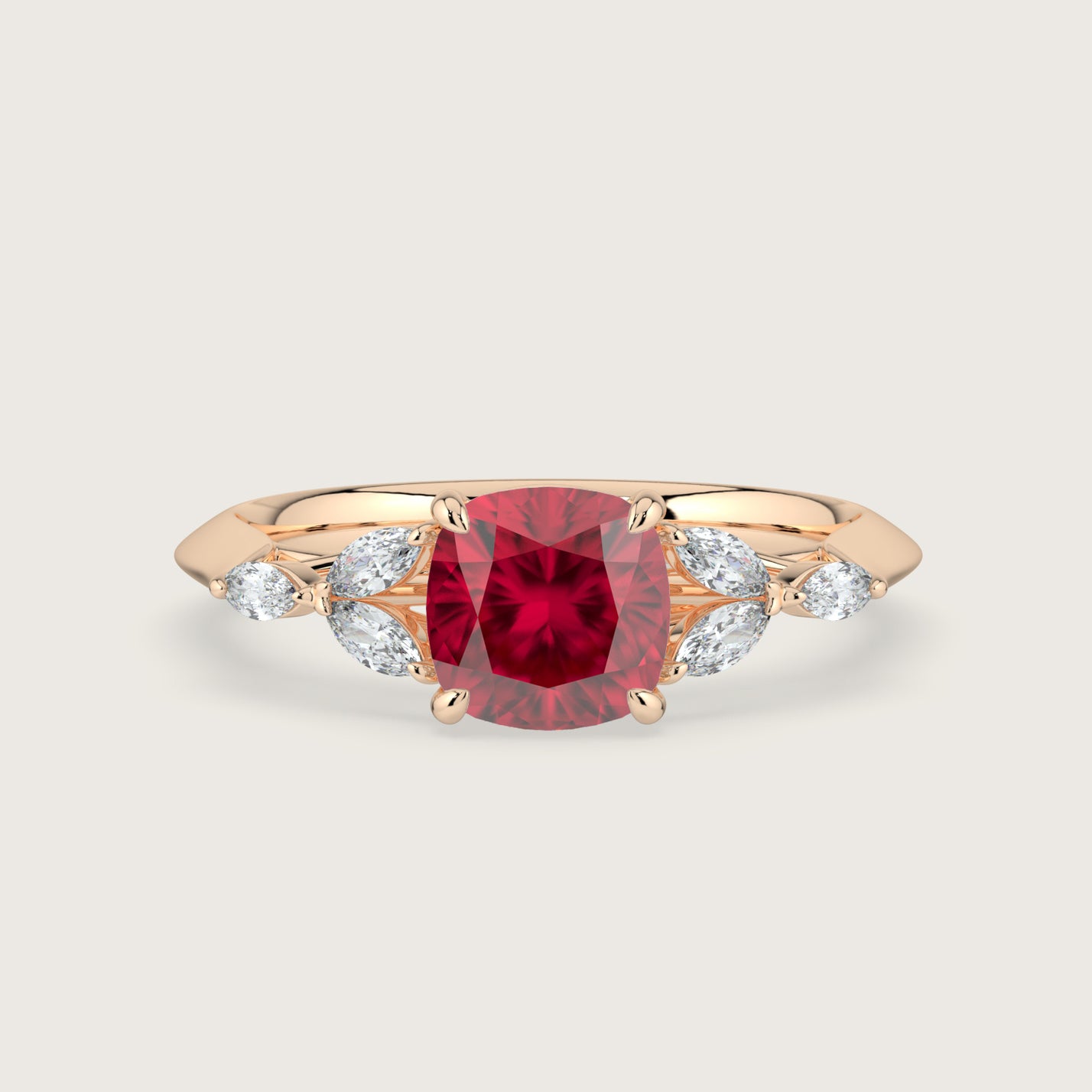 Blossom, Cushion Cut Ruby Ring with Marquise Diamond Accents