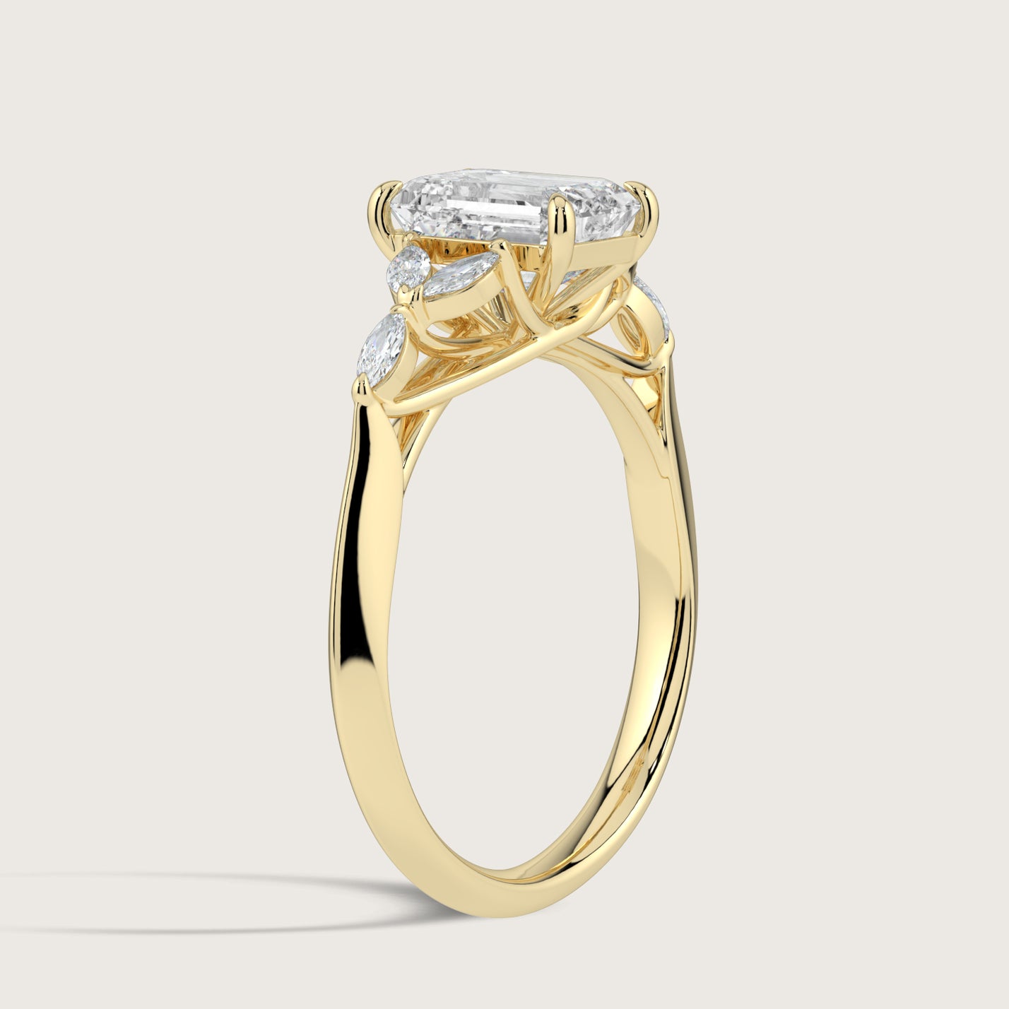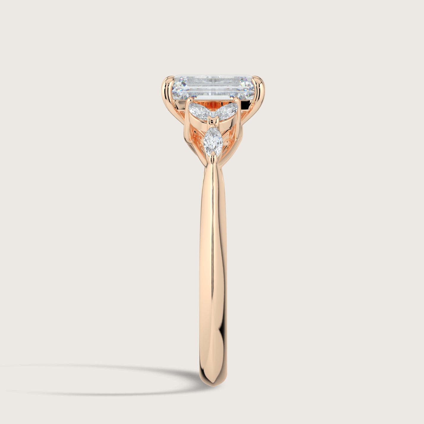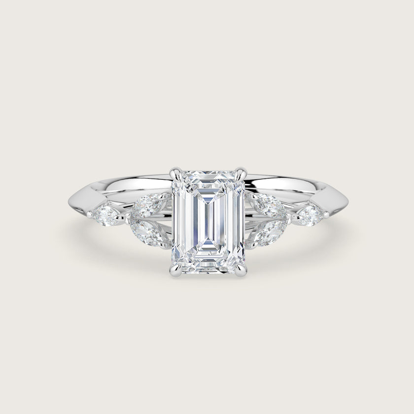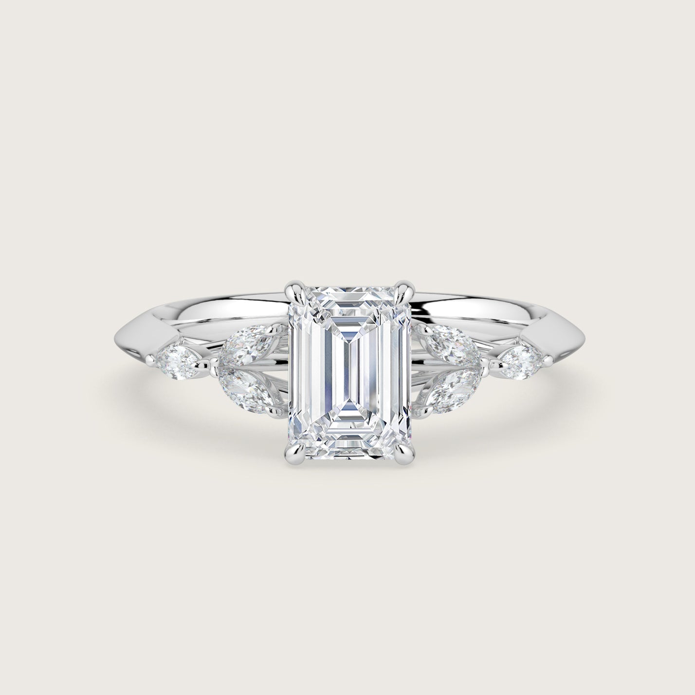 Blossom, Emerald Cut Diamond Ring with Marquise Diamond Accents