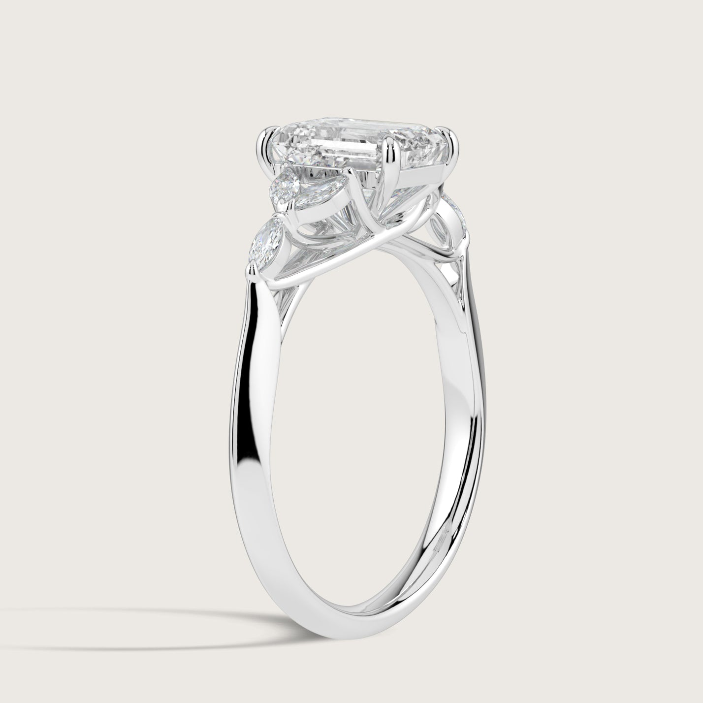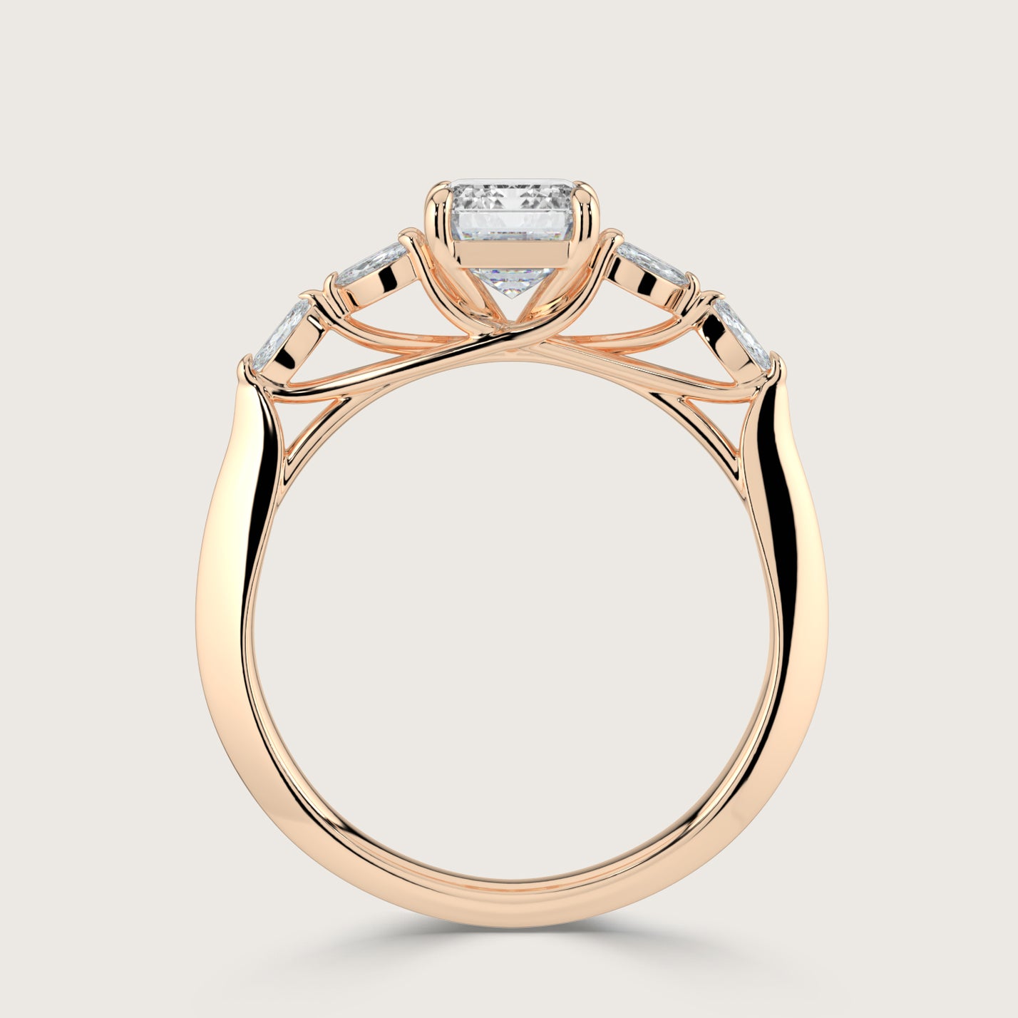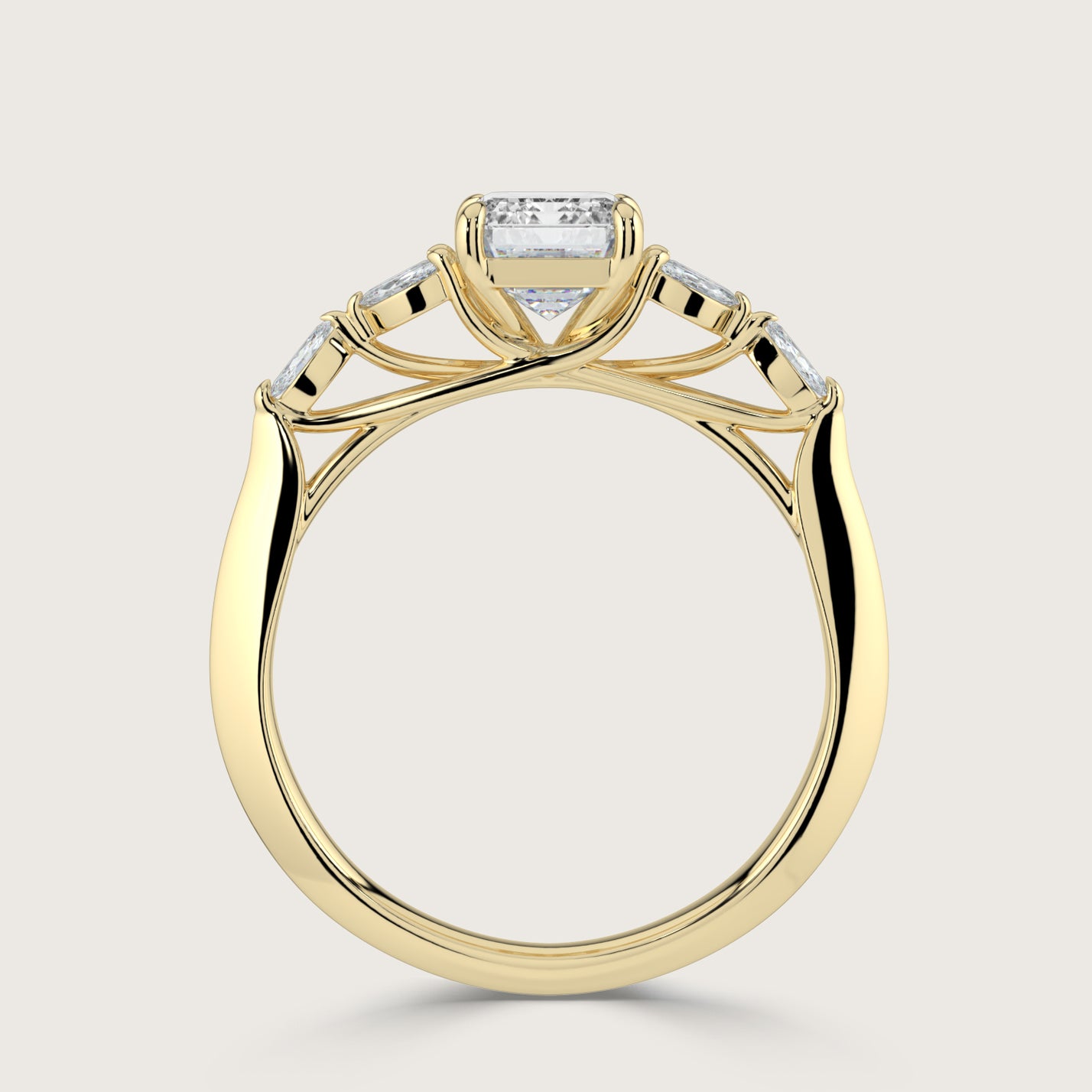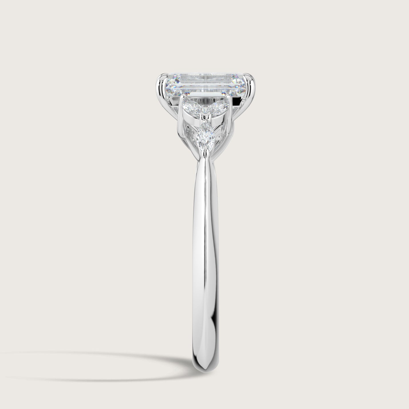 Blossom, Emerald Cut Diamond Ring with Marquise Diamond Accents