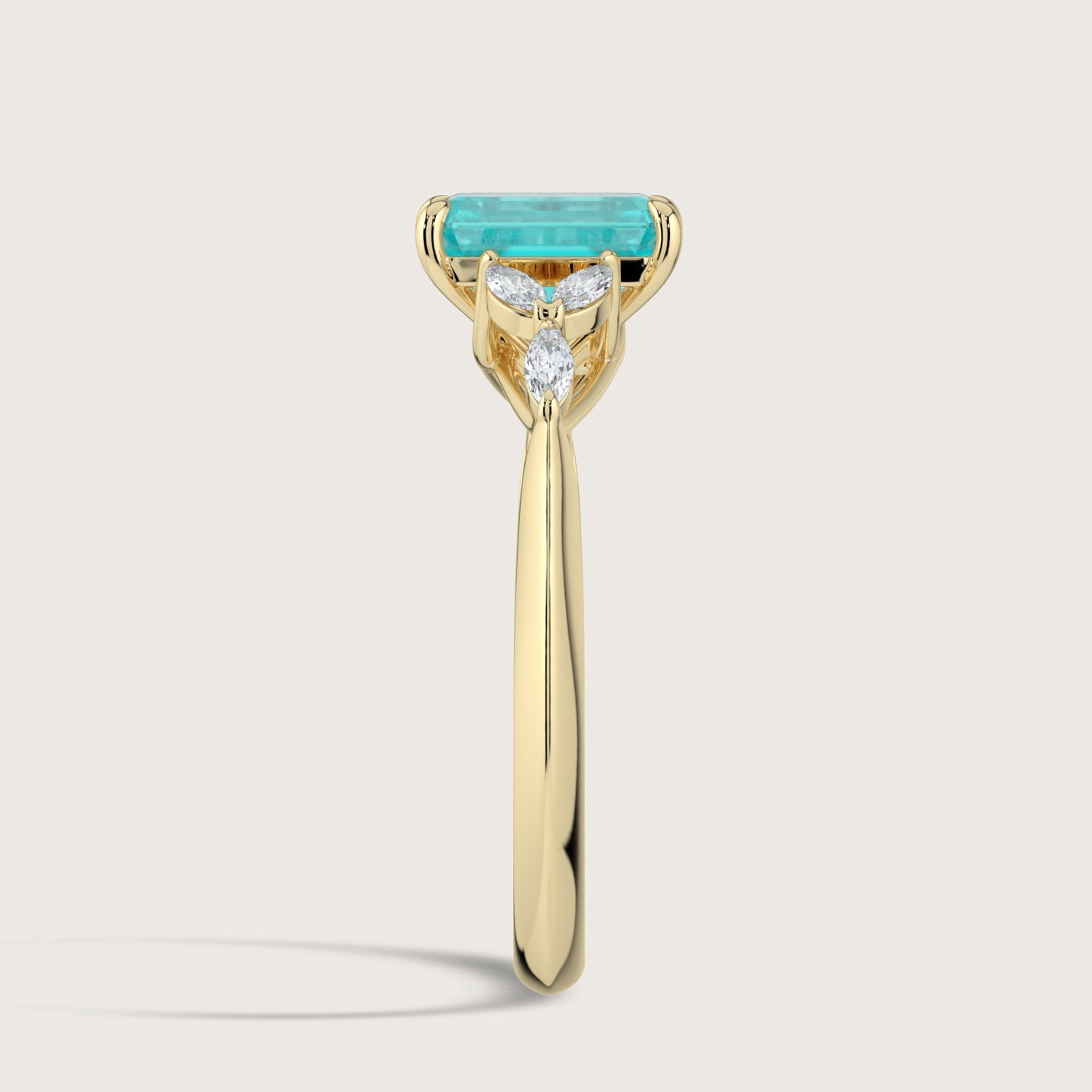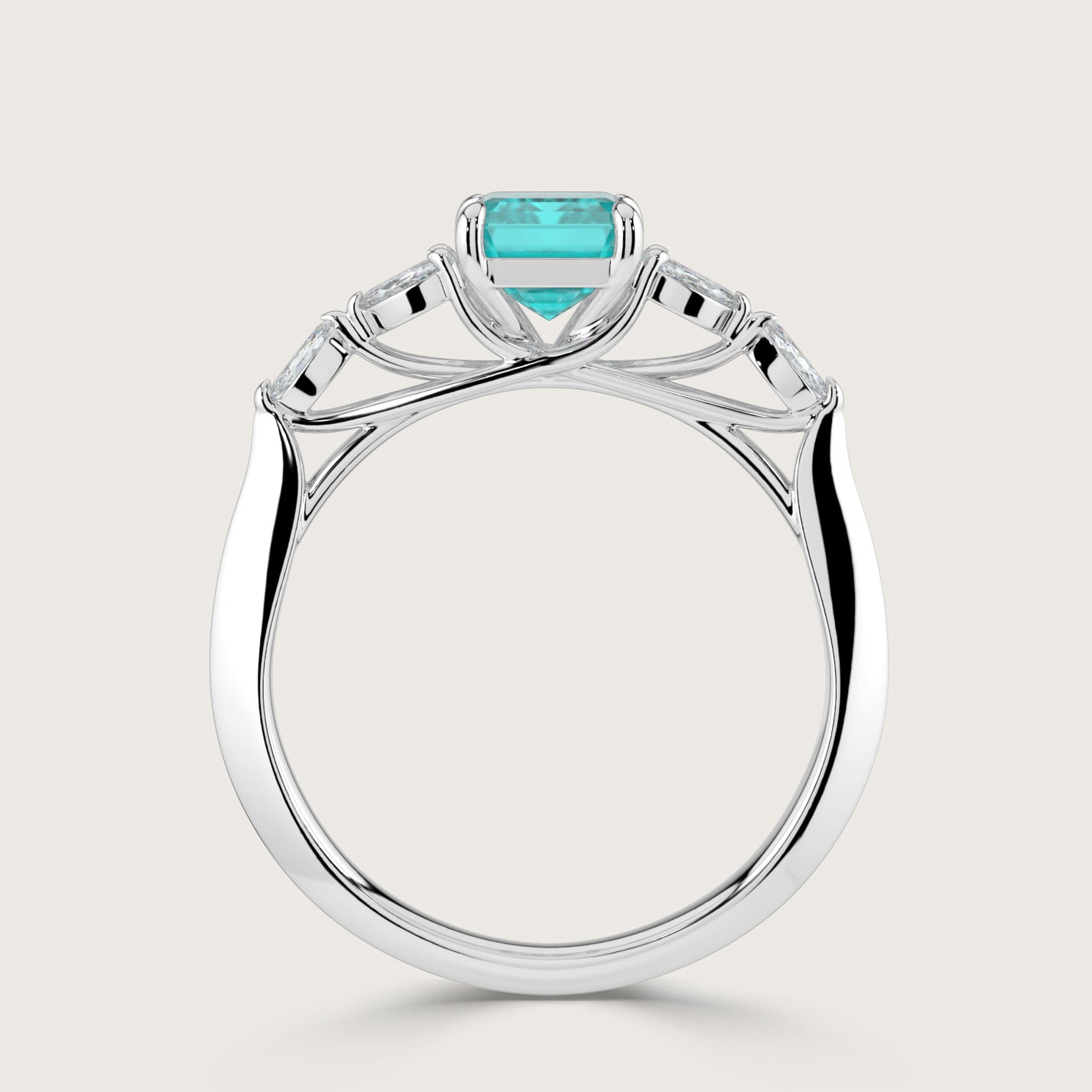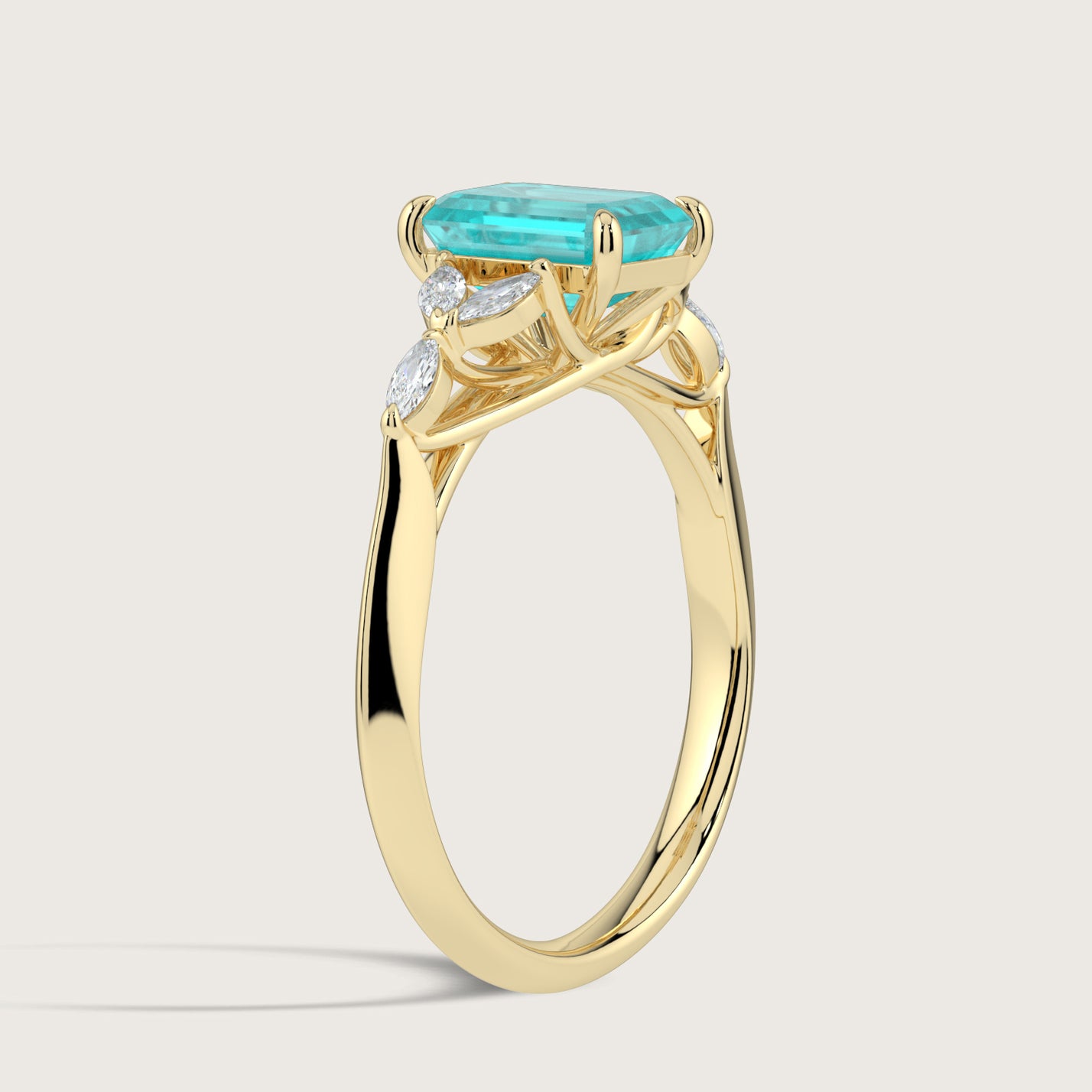 Blossom, Emerald Cut Paraiba Ring with Marquise Diamond Accents