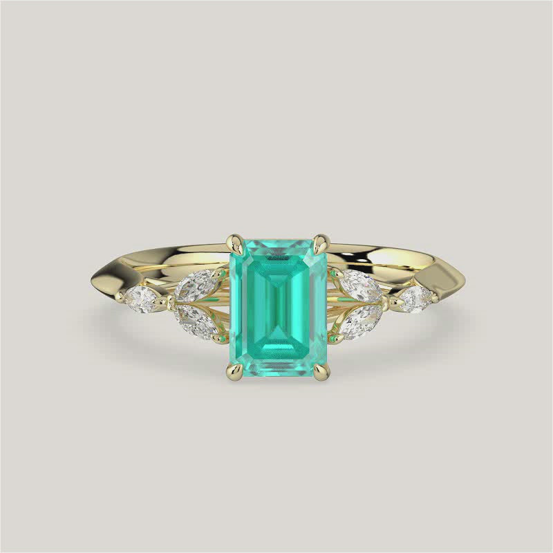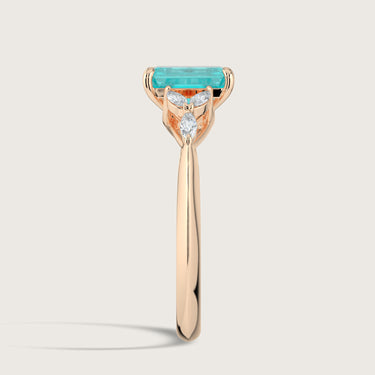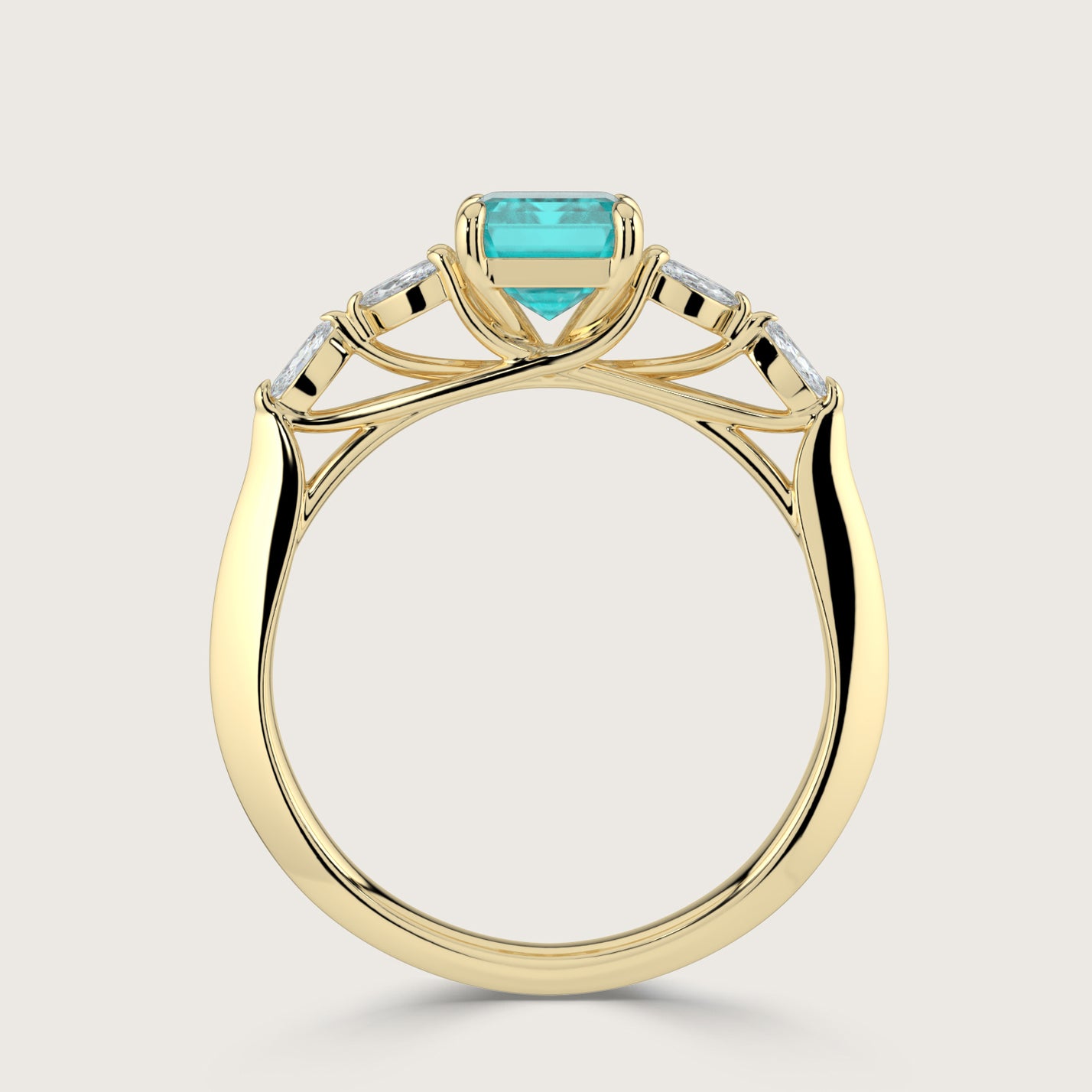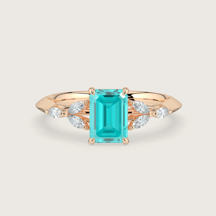 Blossom, Emerald Cut Paraiba Ring with Marquise Diamond Accents