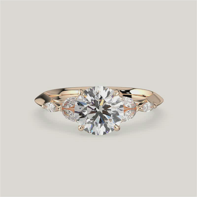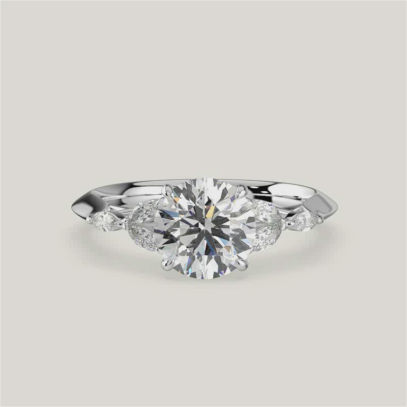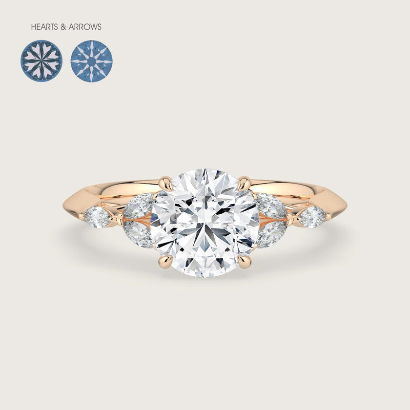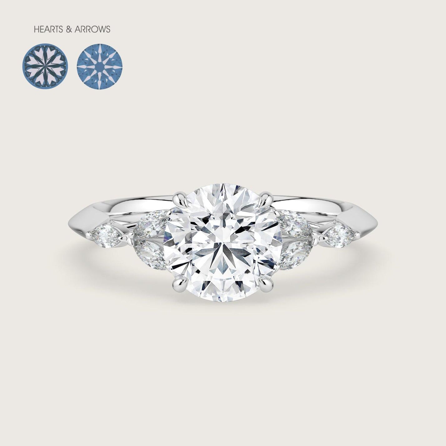 Blossom, Hearts & Arrows Diamond Ring with Marquise Diamond Accents