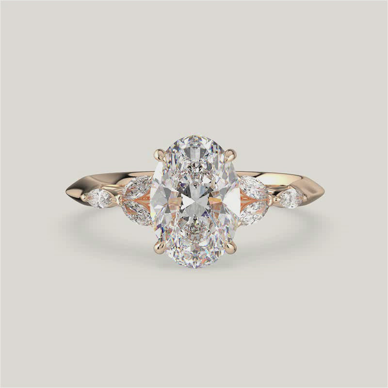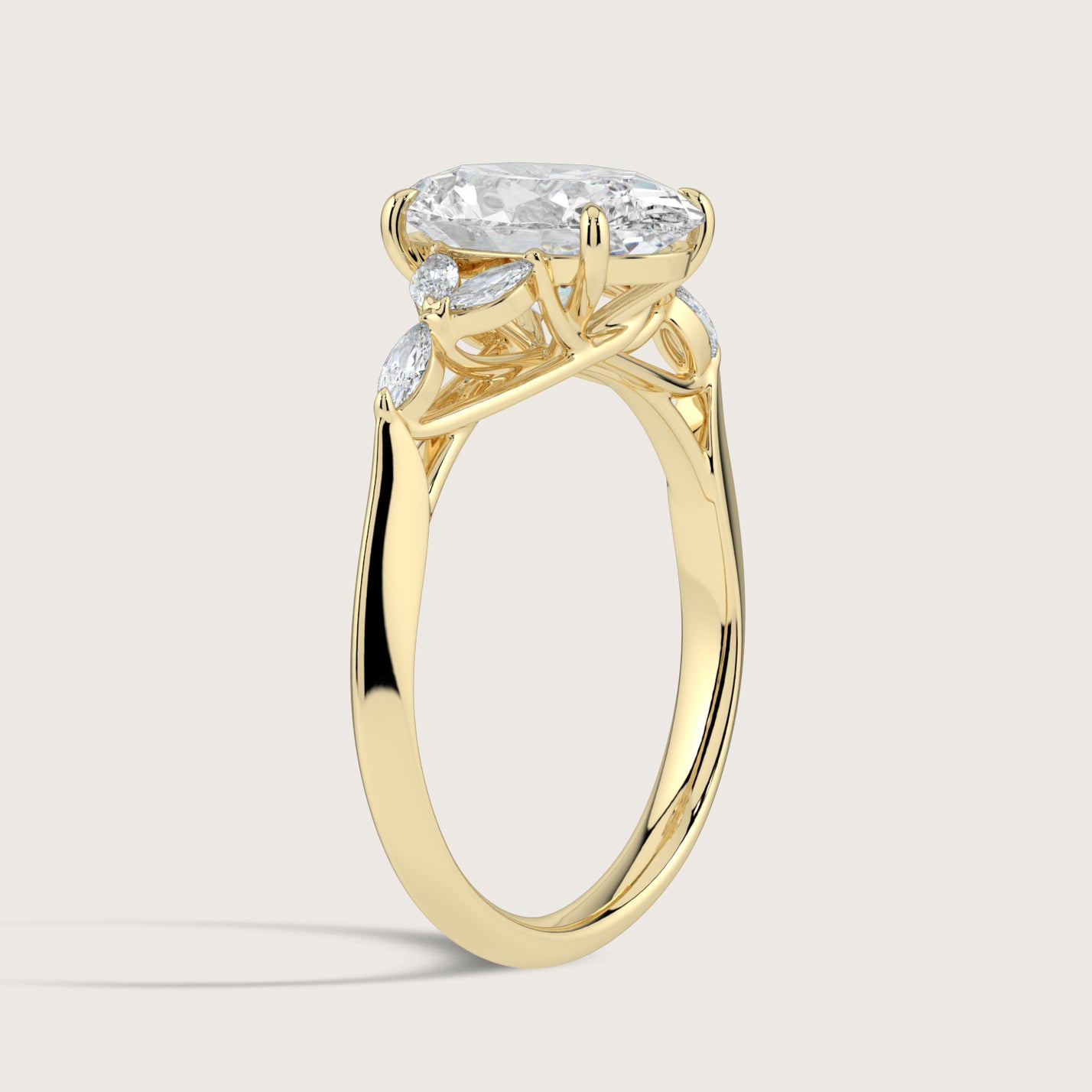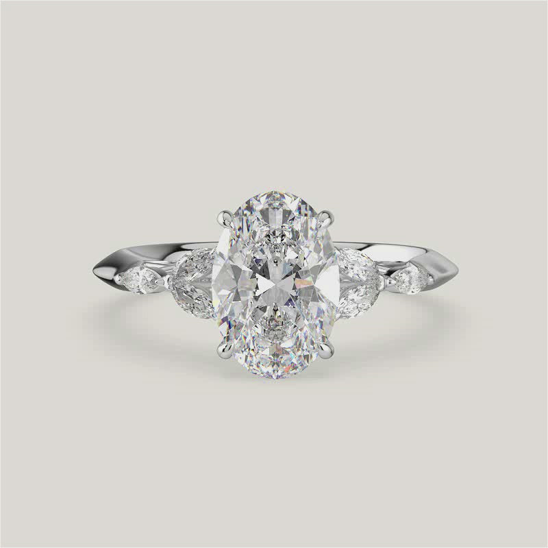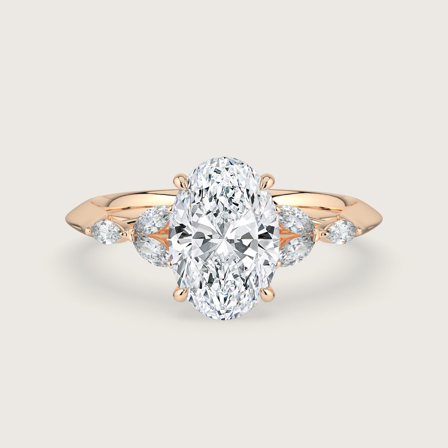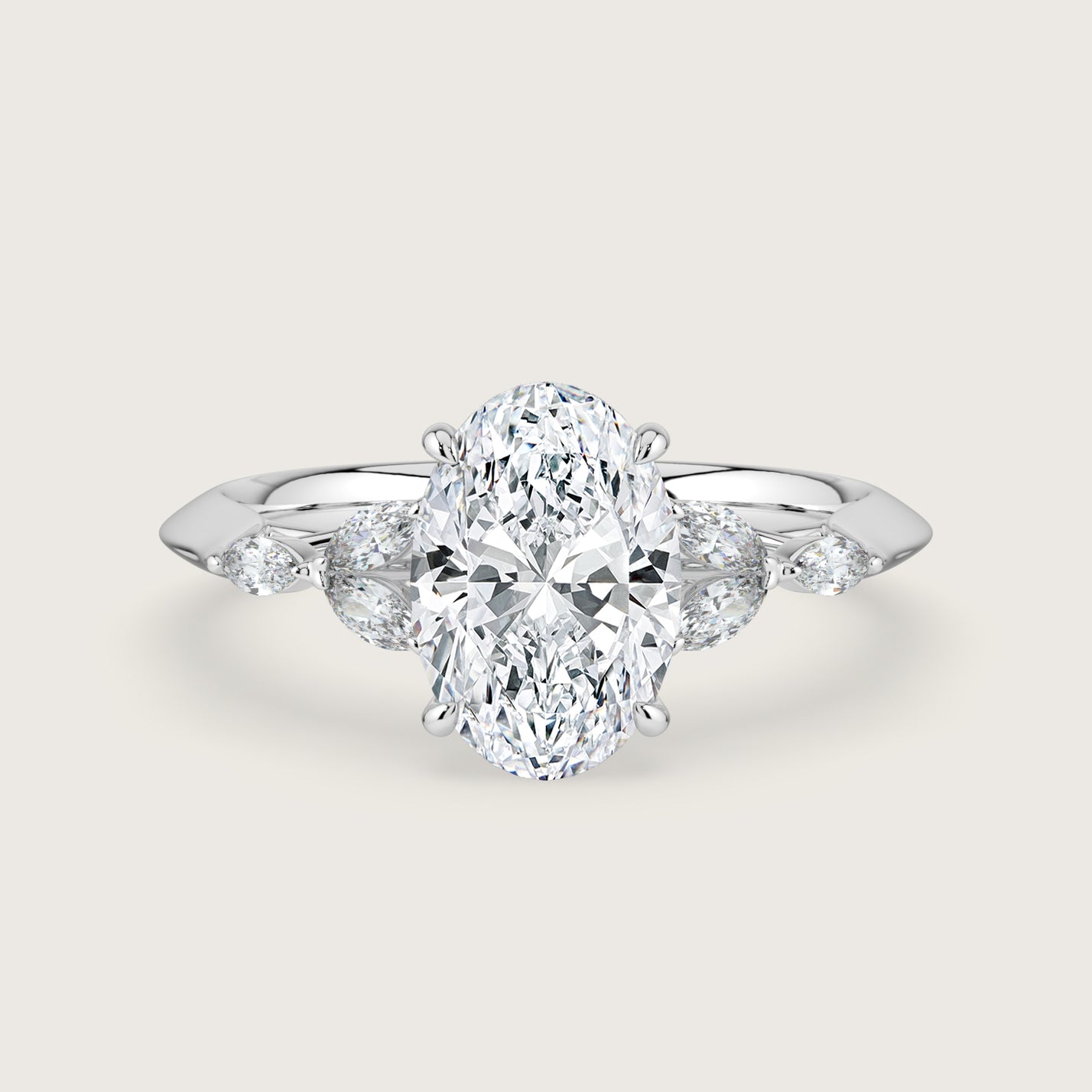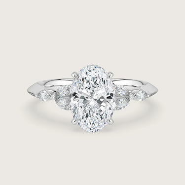 Blossom, Oval Cut Diamond Ring with Marquise Diamond Accents