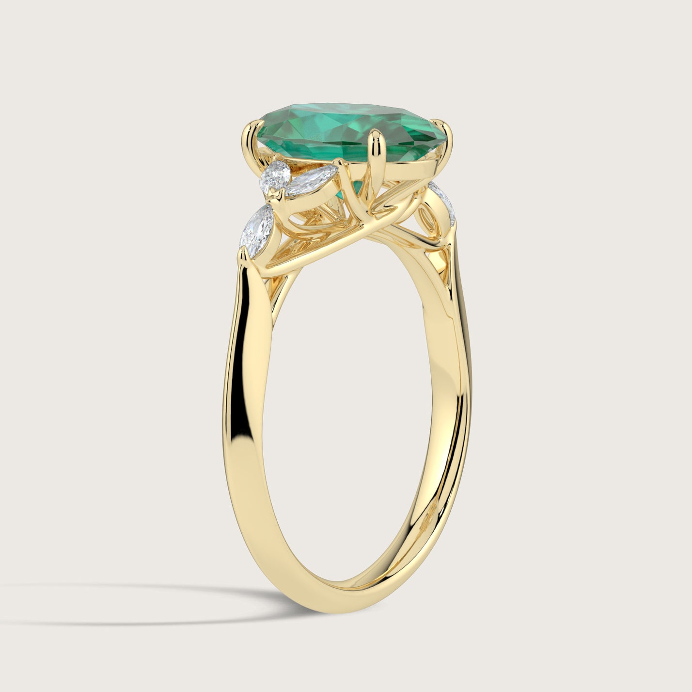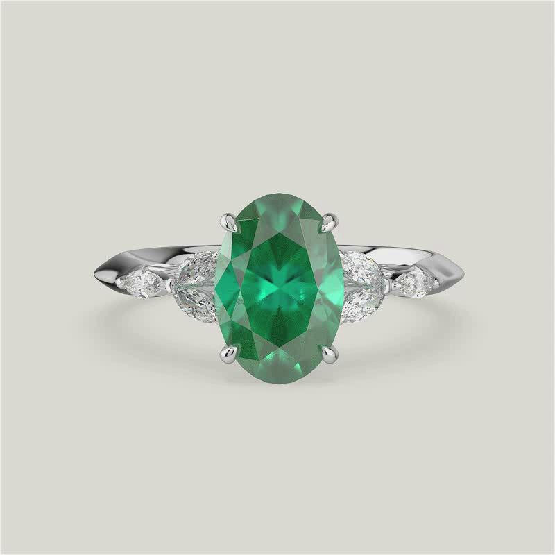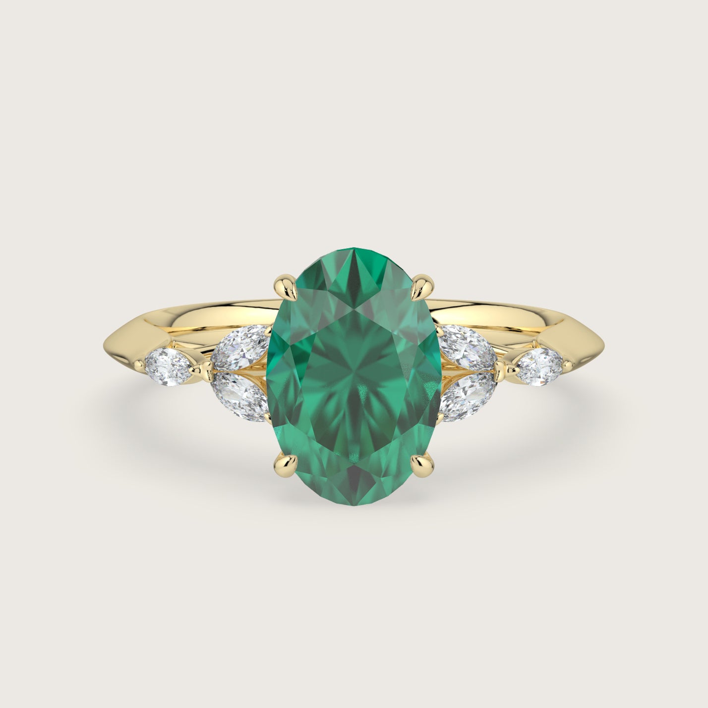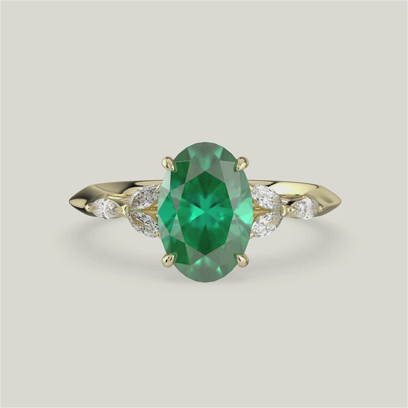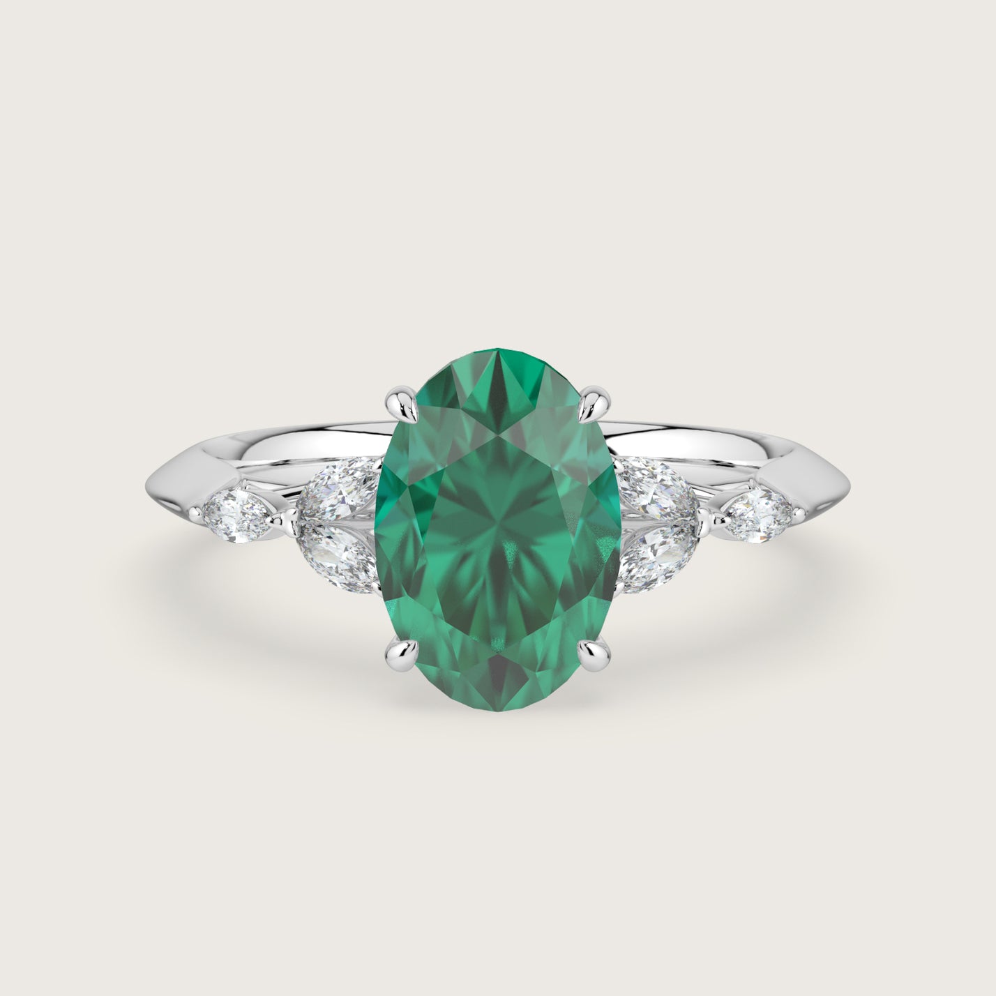Blossom, Oval Cut Emerald Ring with Marquise Diamond Accents