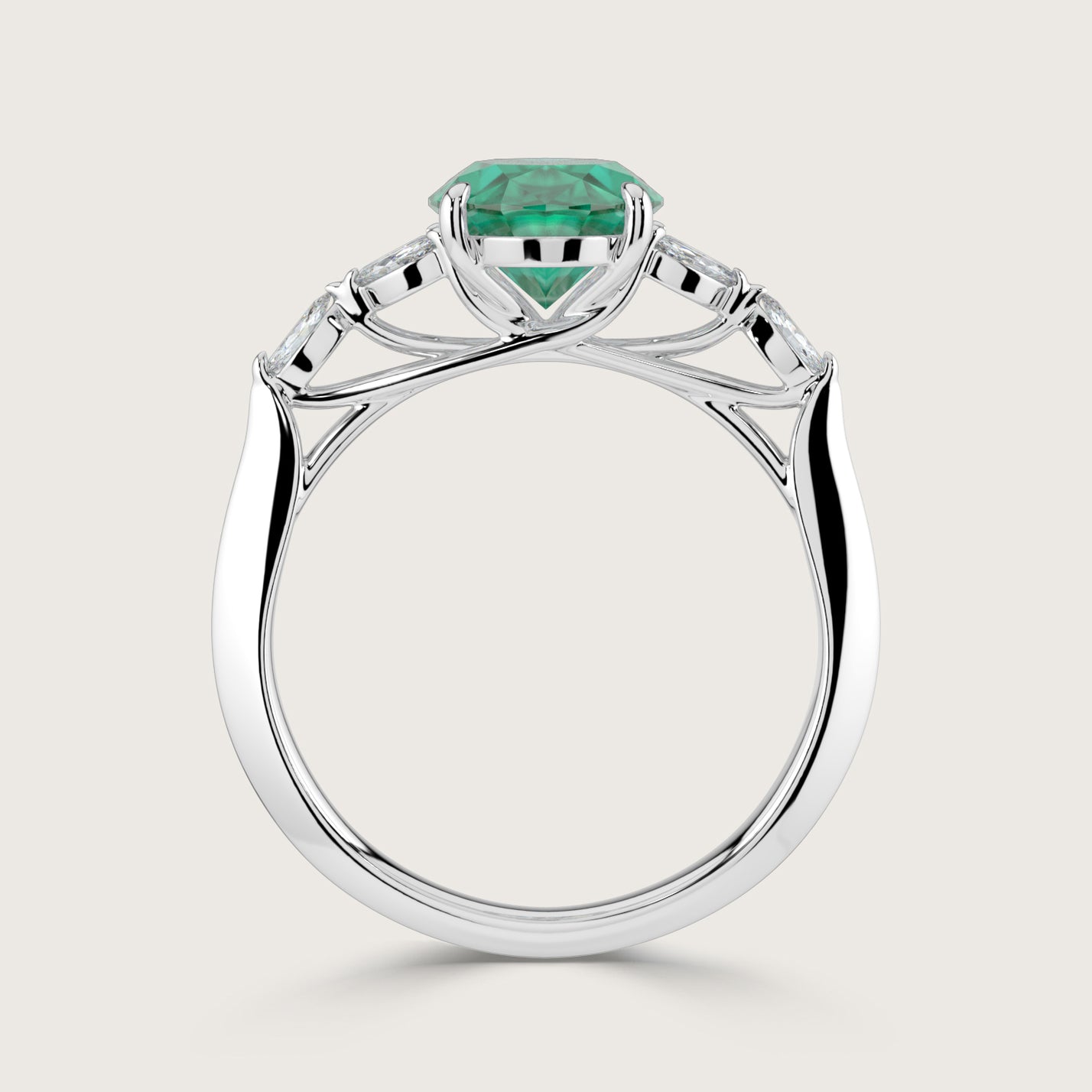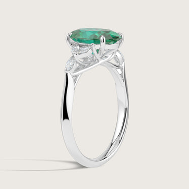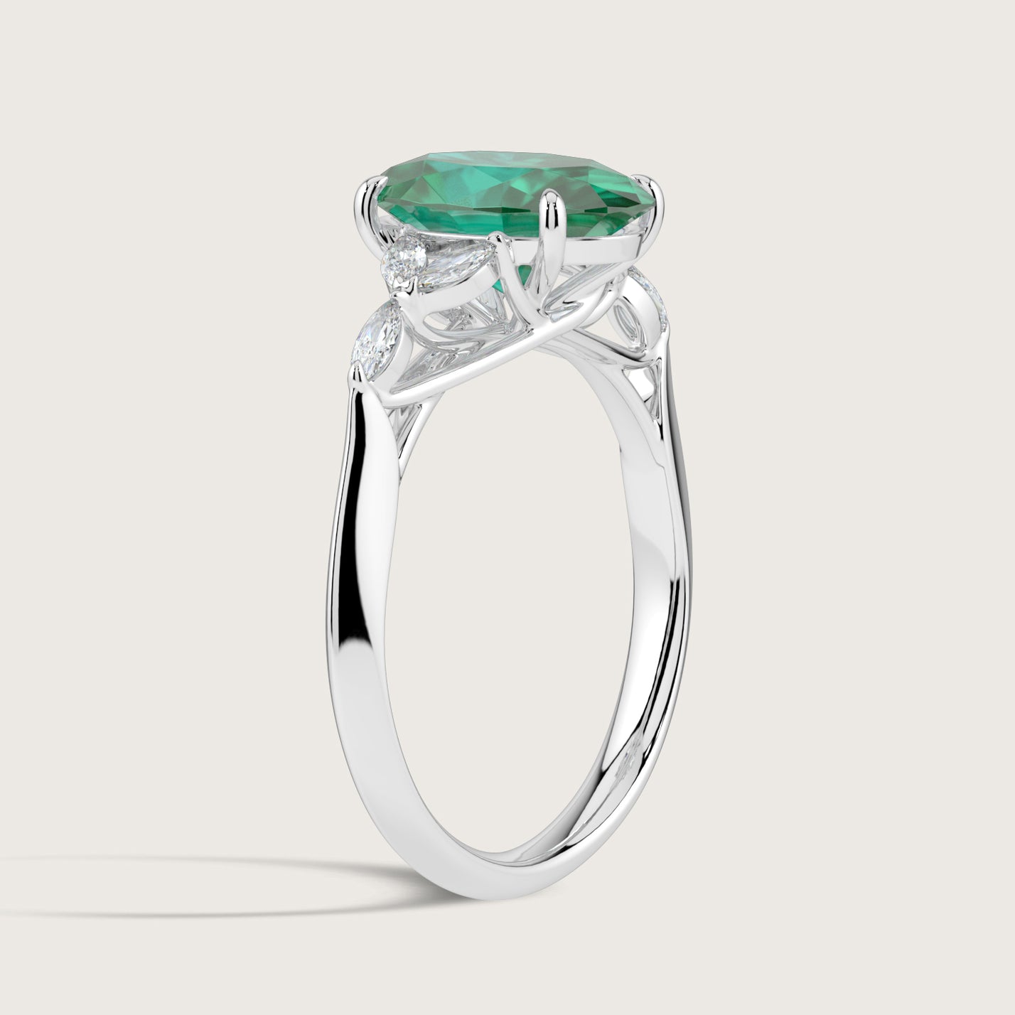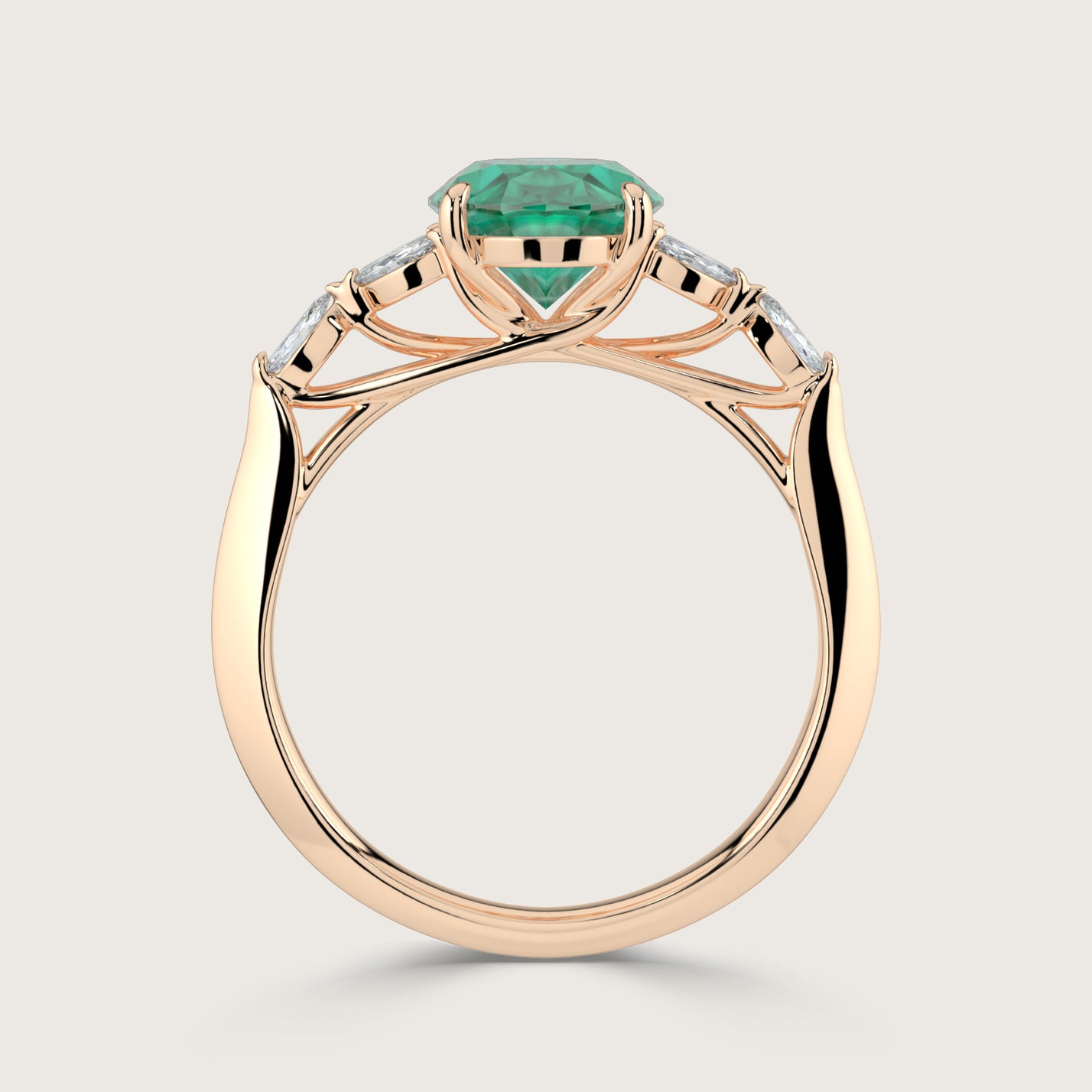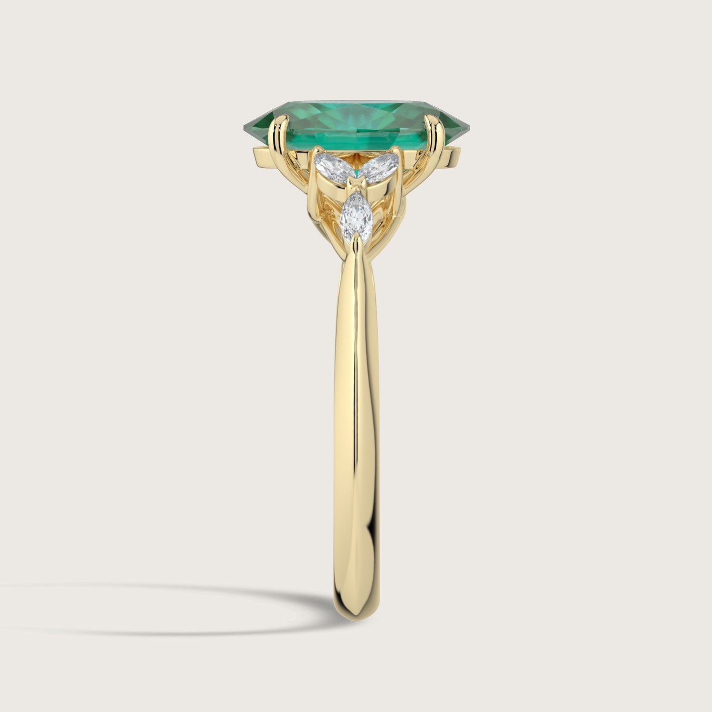 Blossom, Oval Cut Emerald Ring with Marquise Diamond Accents