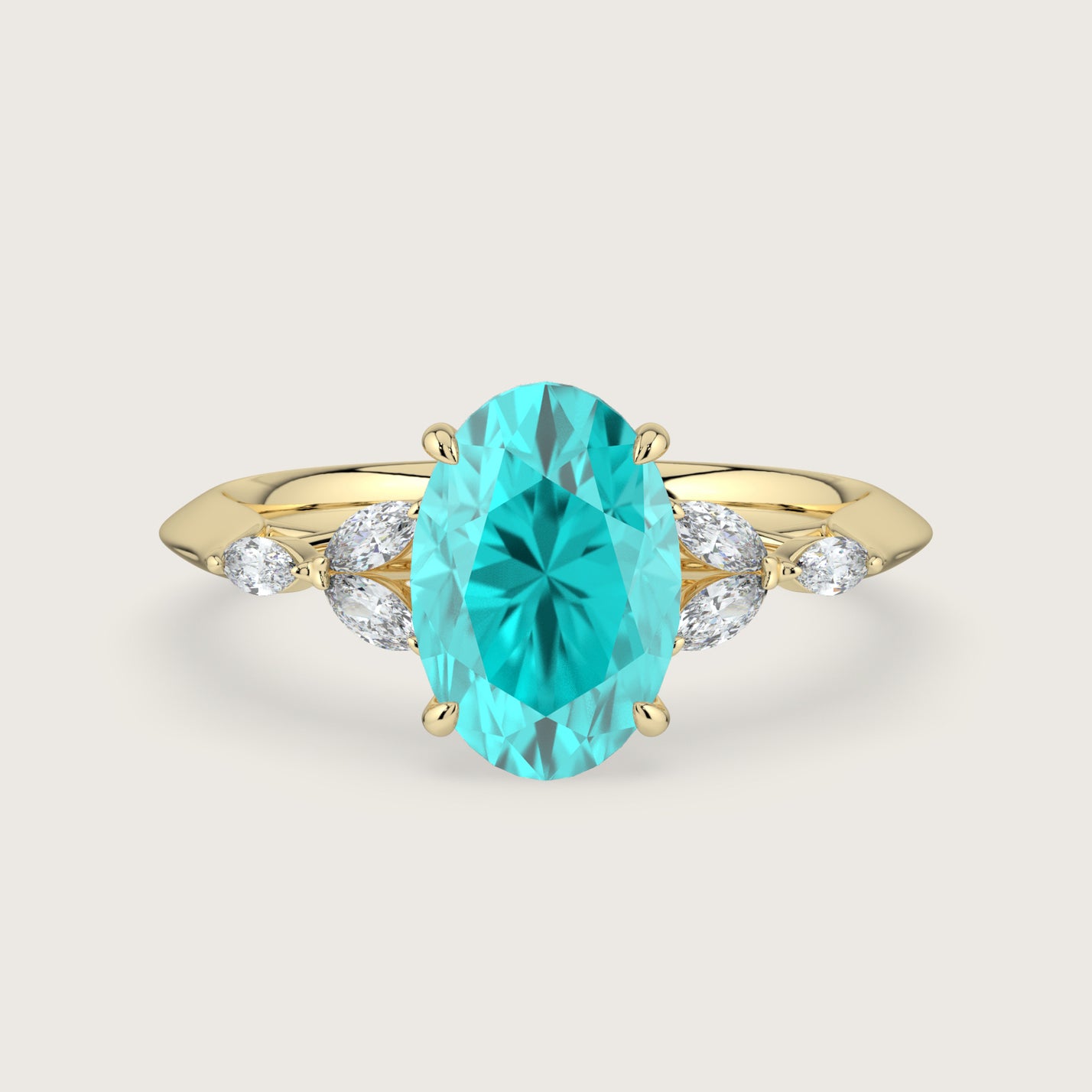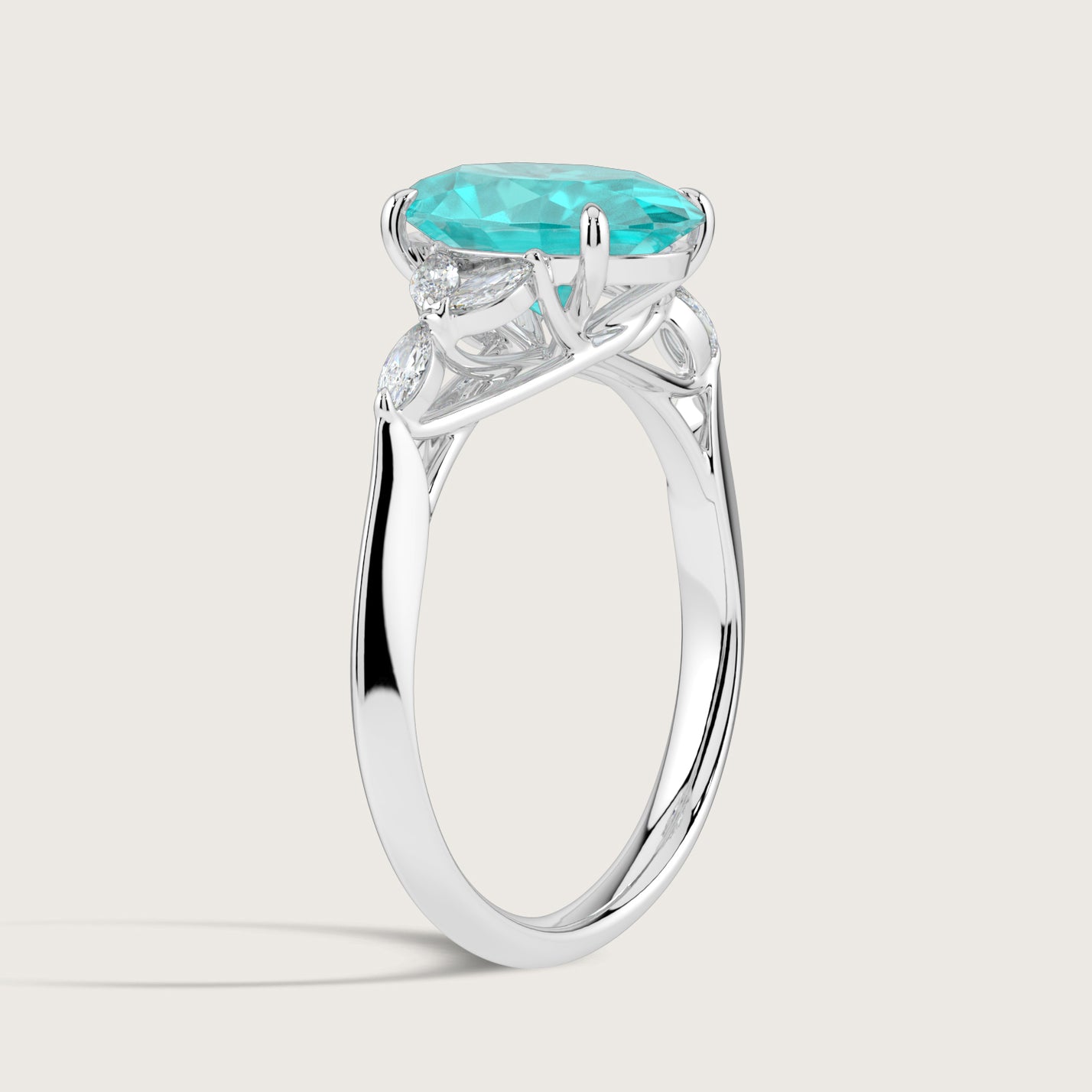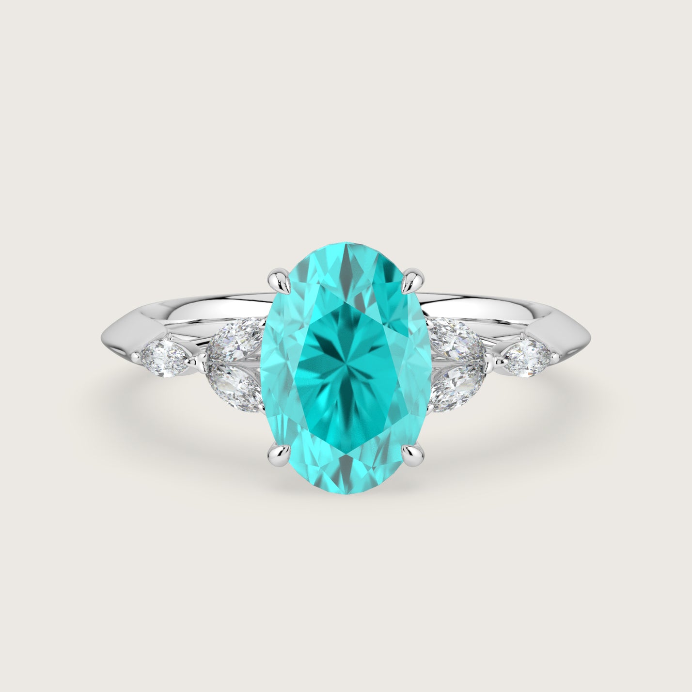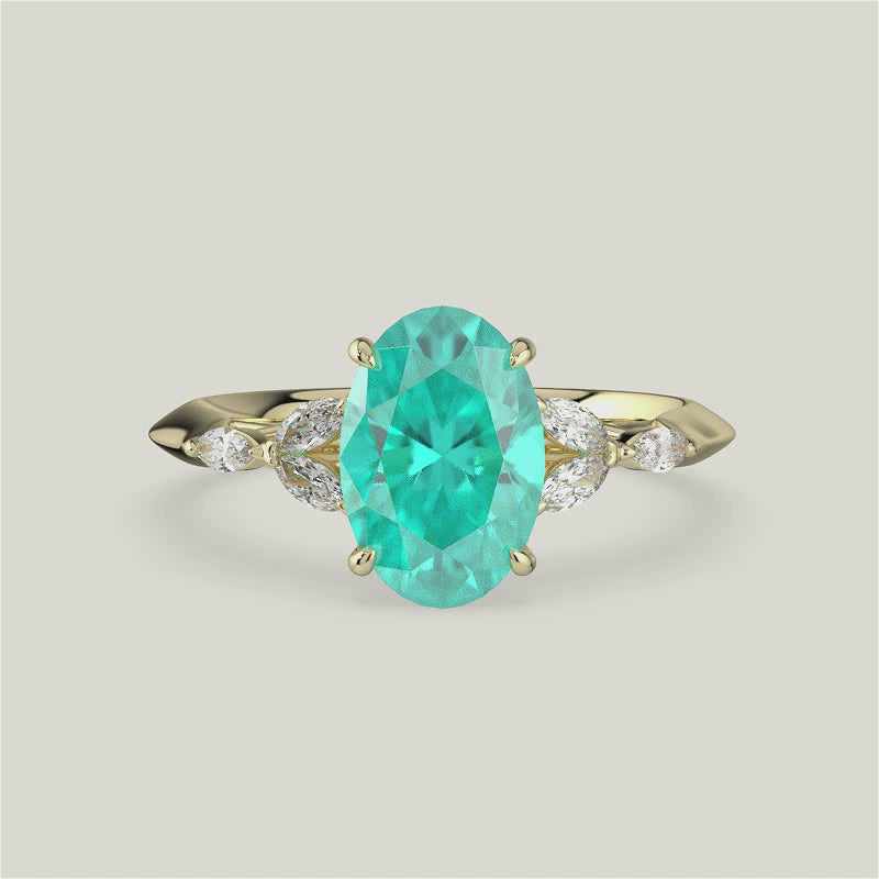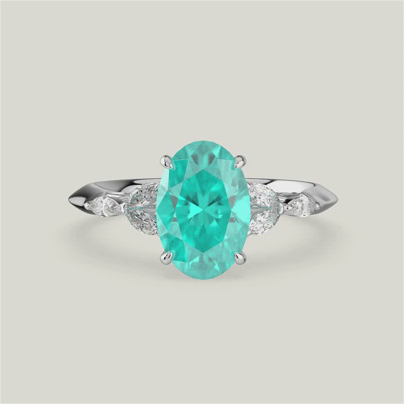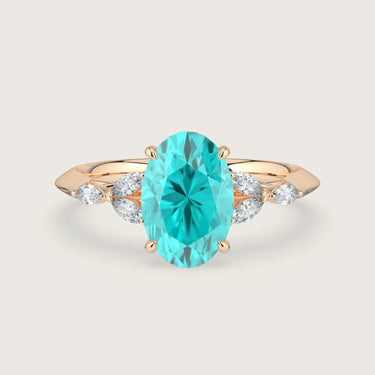 Blossom, Oval Cut Paraiba Ring with Marquise Diamond Accents