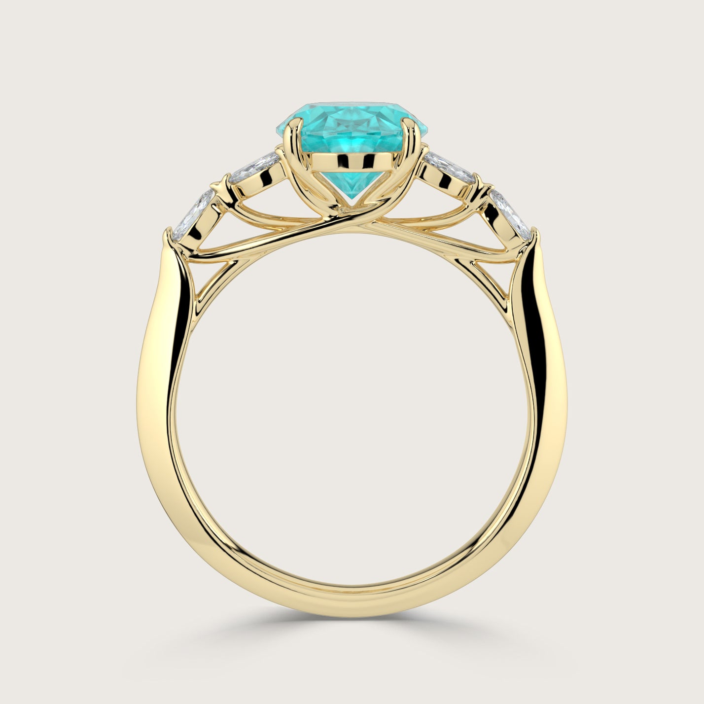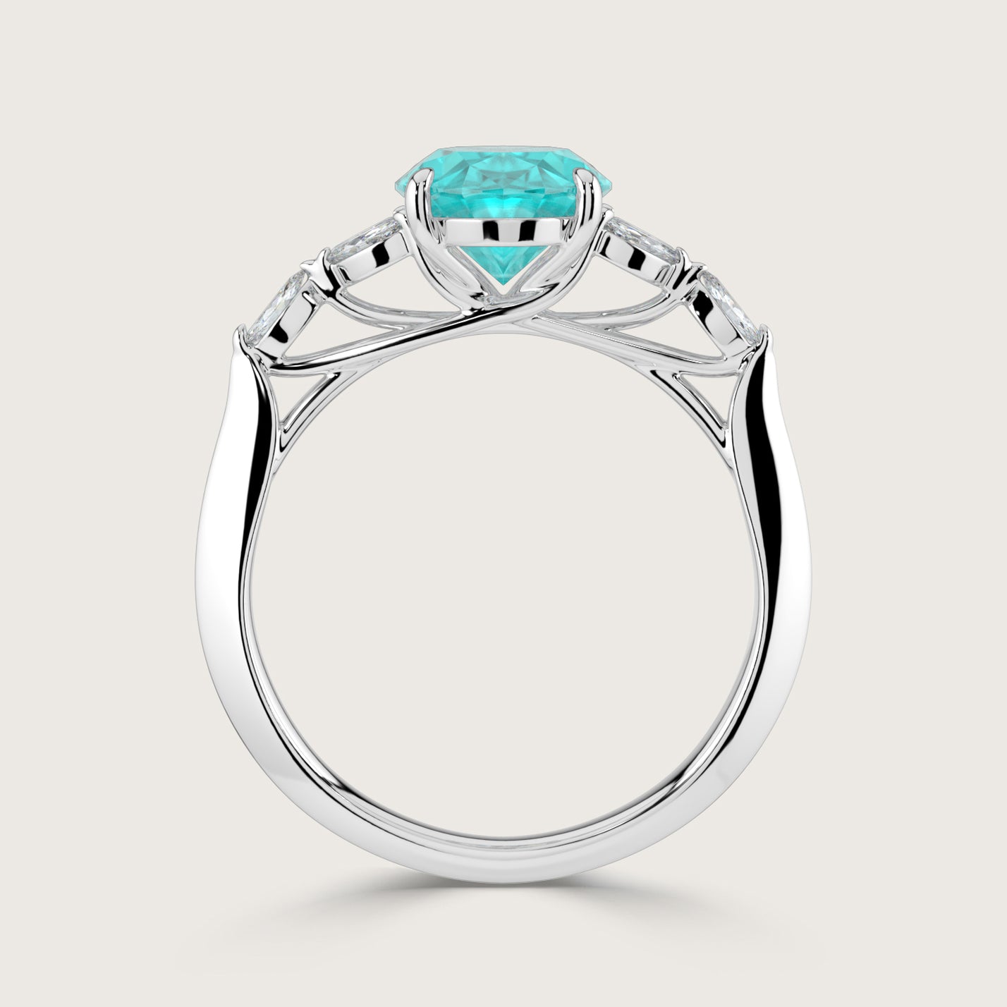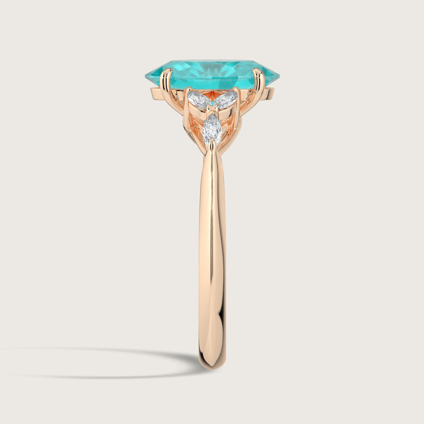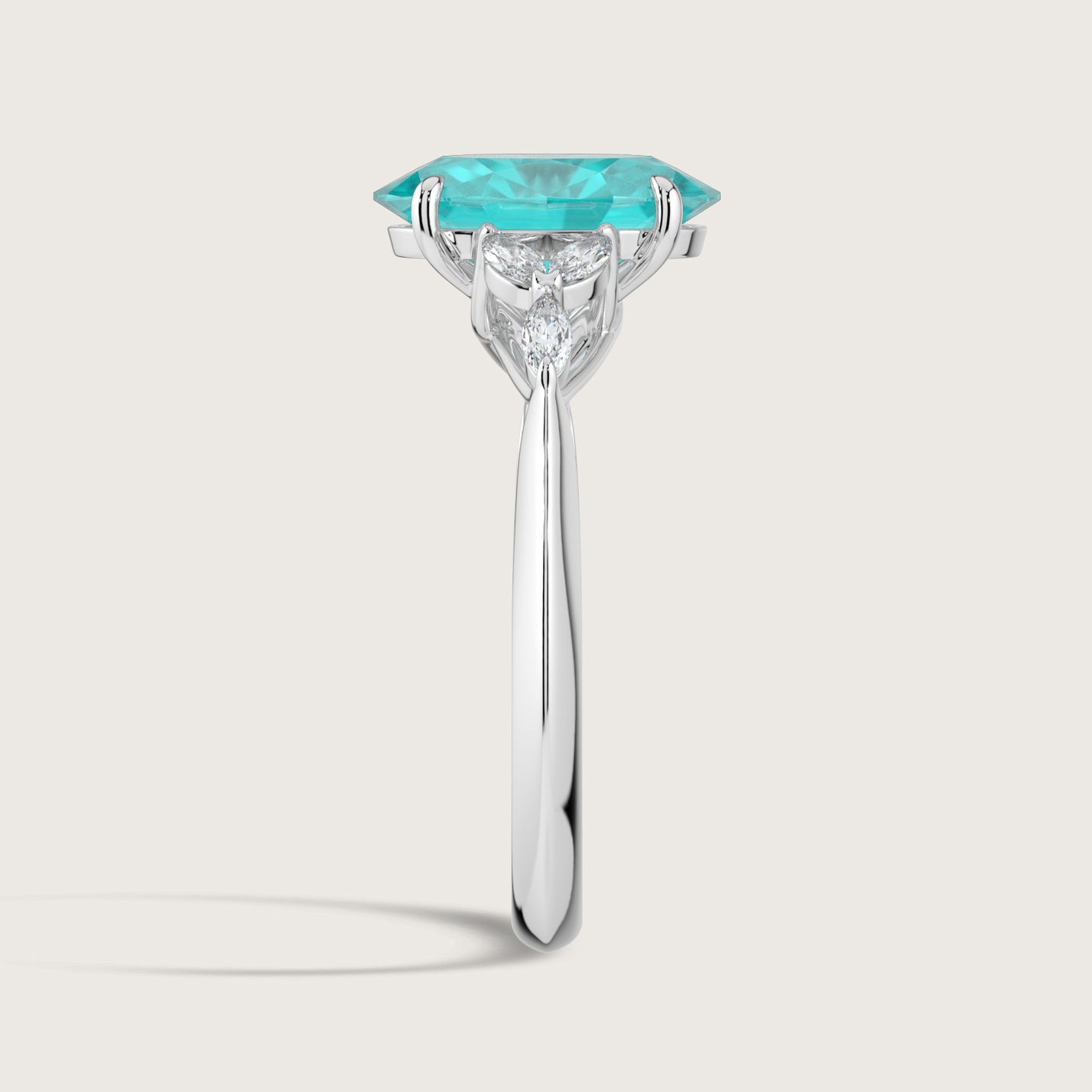 Blossom, Oval Cut Paraiba Ring with Marquise Diamond Accents