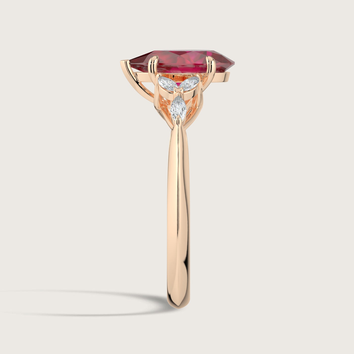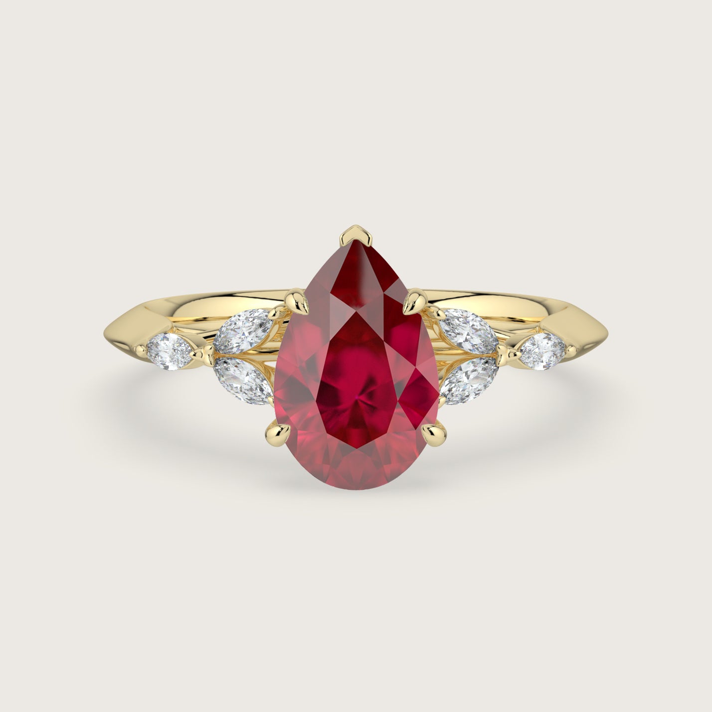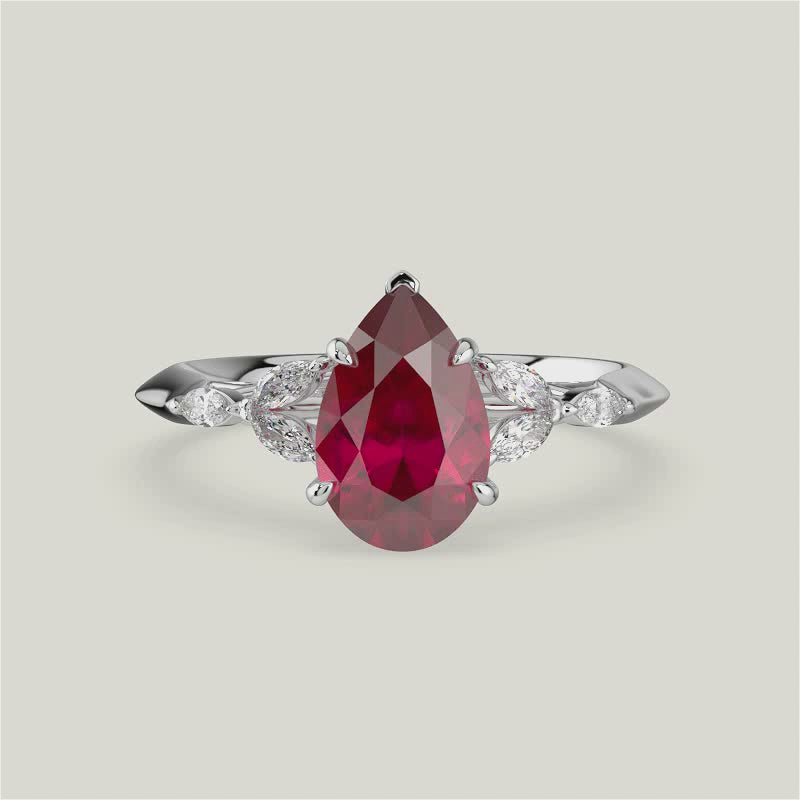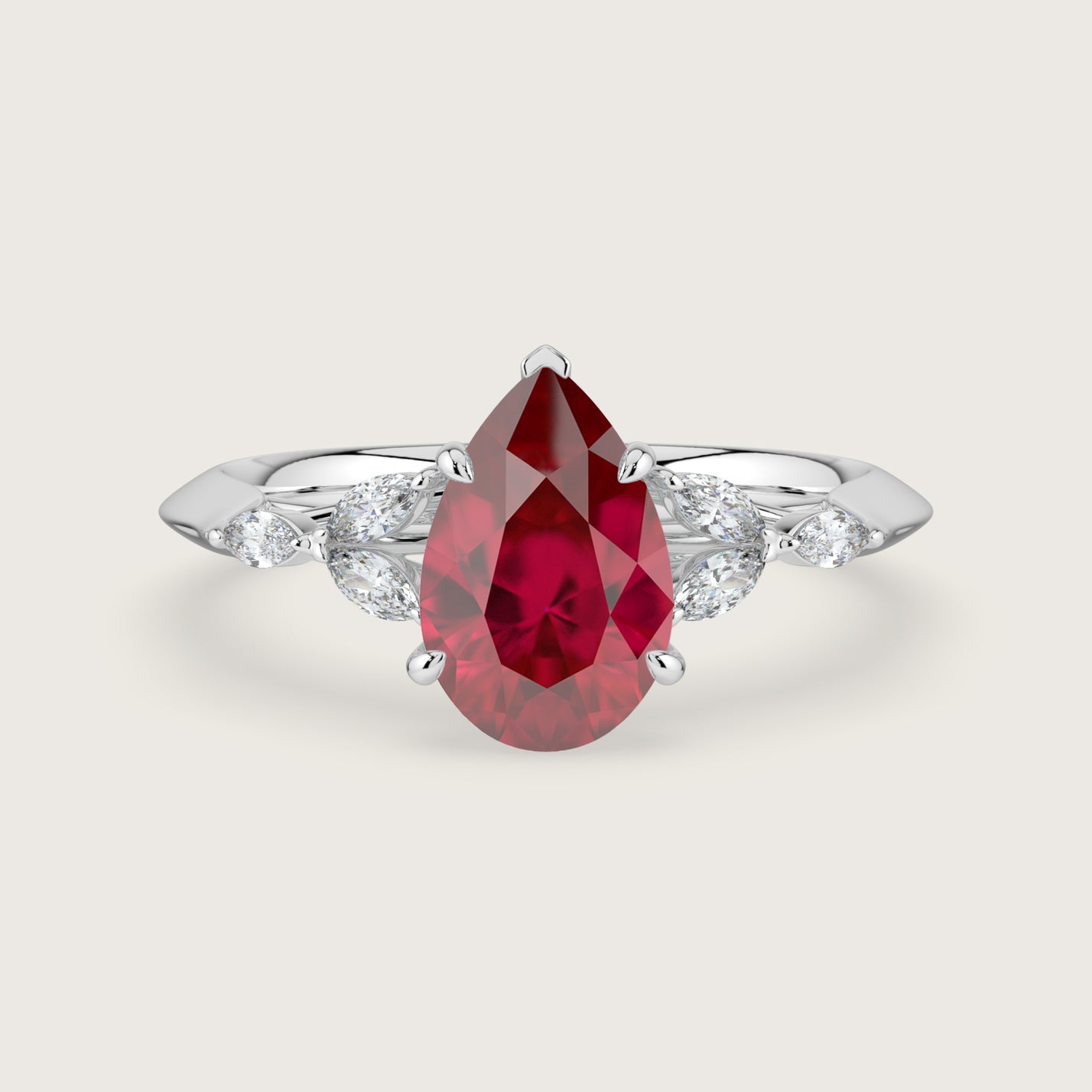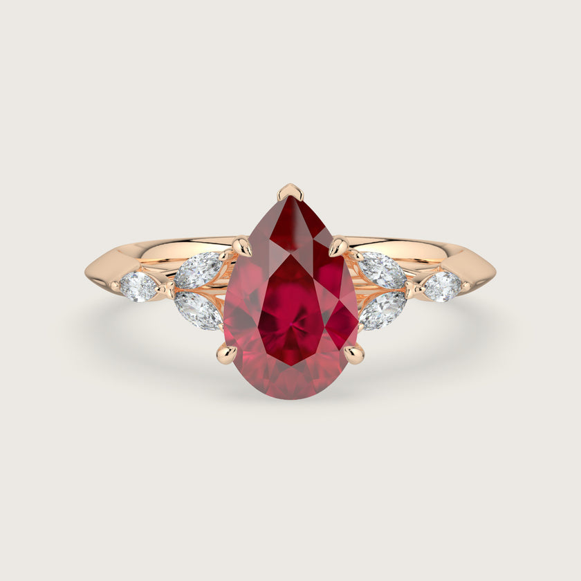 Blossom, Pear Cut Ruby Ring with Marquise Diamond Accents